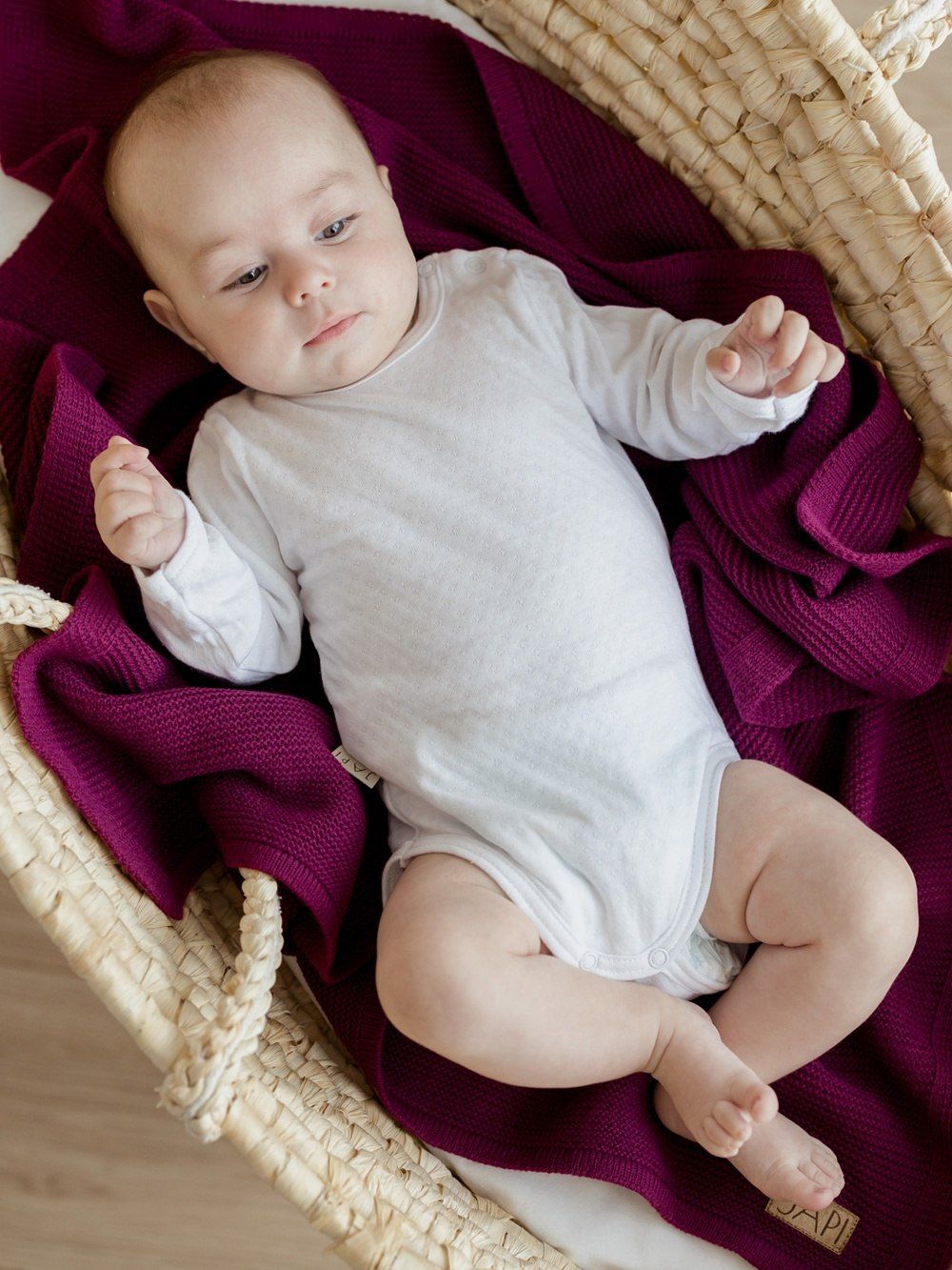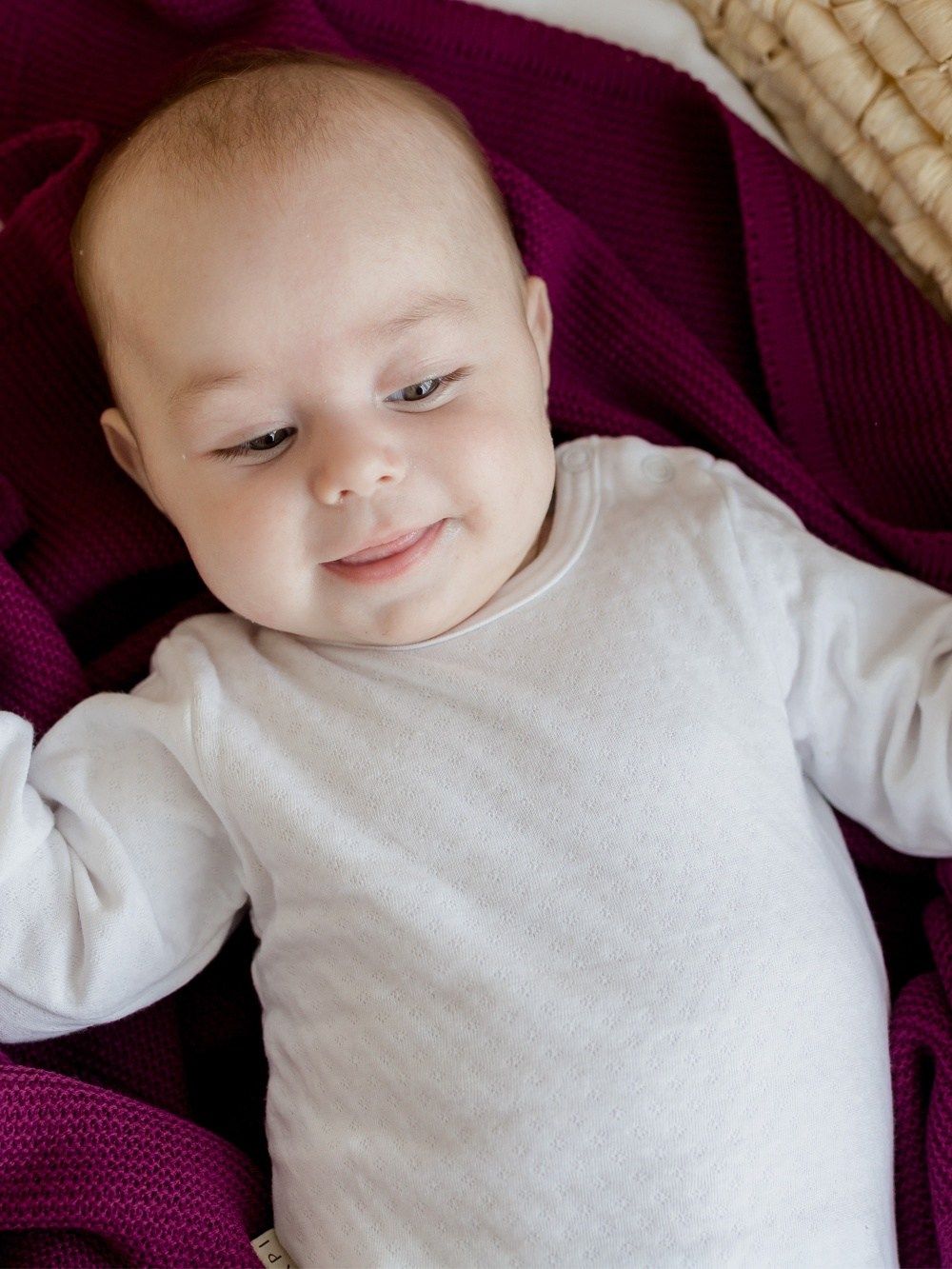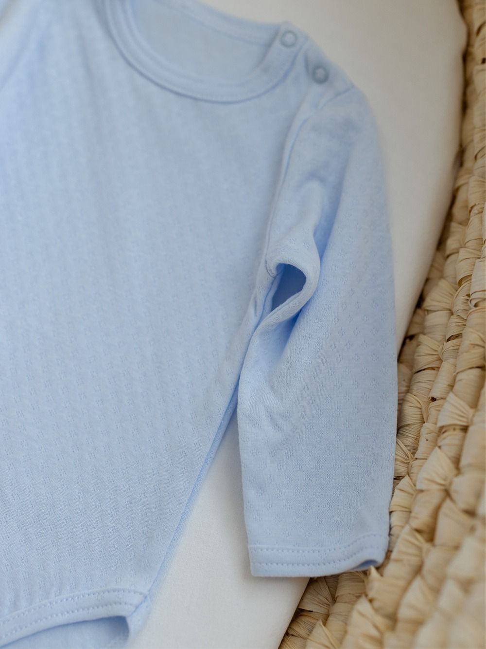 Omiljeni komad za najmlađe u klasičnoj bijeloj ili nježno ružičastoj i plavoj boji. Materijal ima fini uzorak. Bodi ima obrub oko vrata, rukava i nogavica. Otvara se kopčanjem oko vrata.