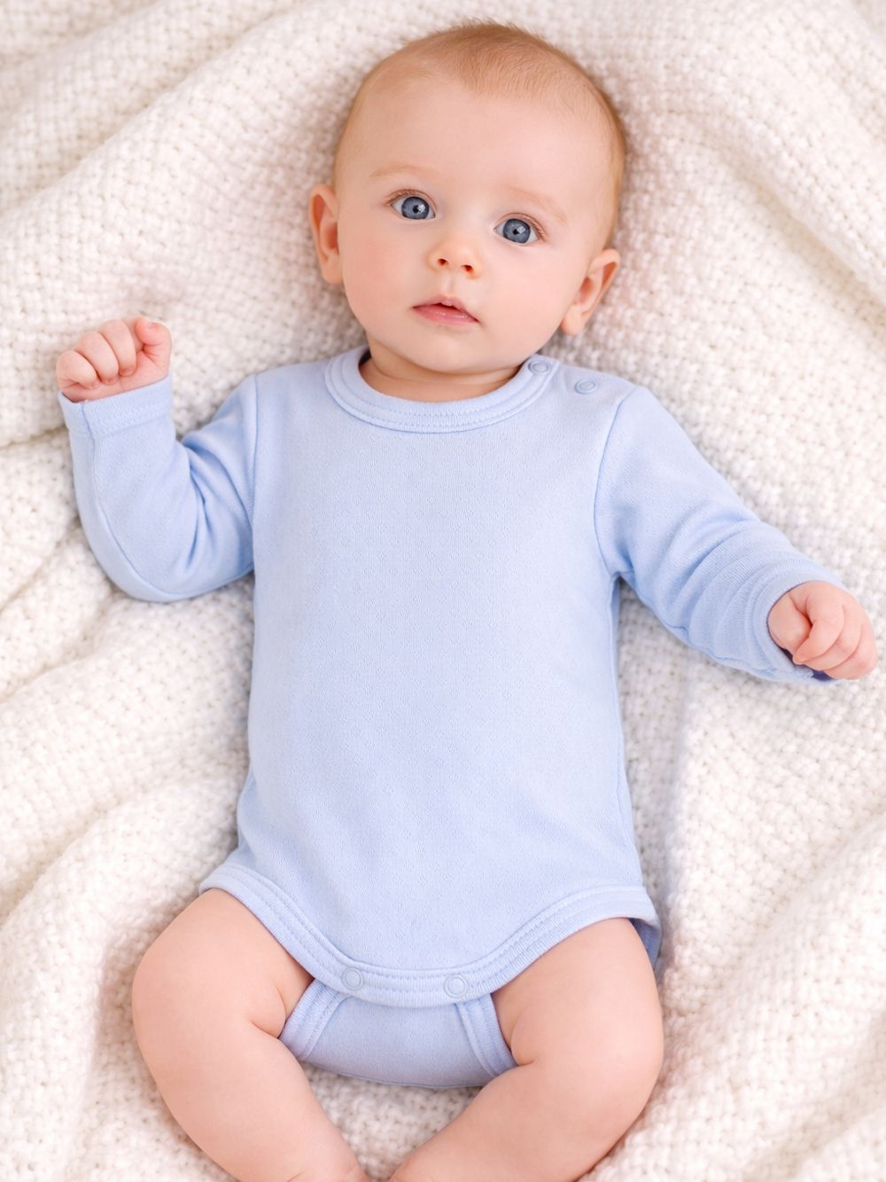 Praktičan dječji bodi dugih rukava od 100% pamuka.