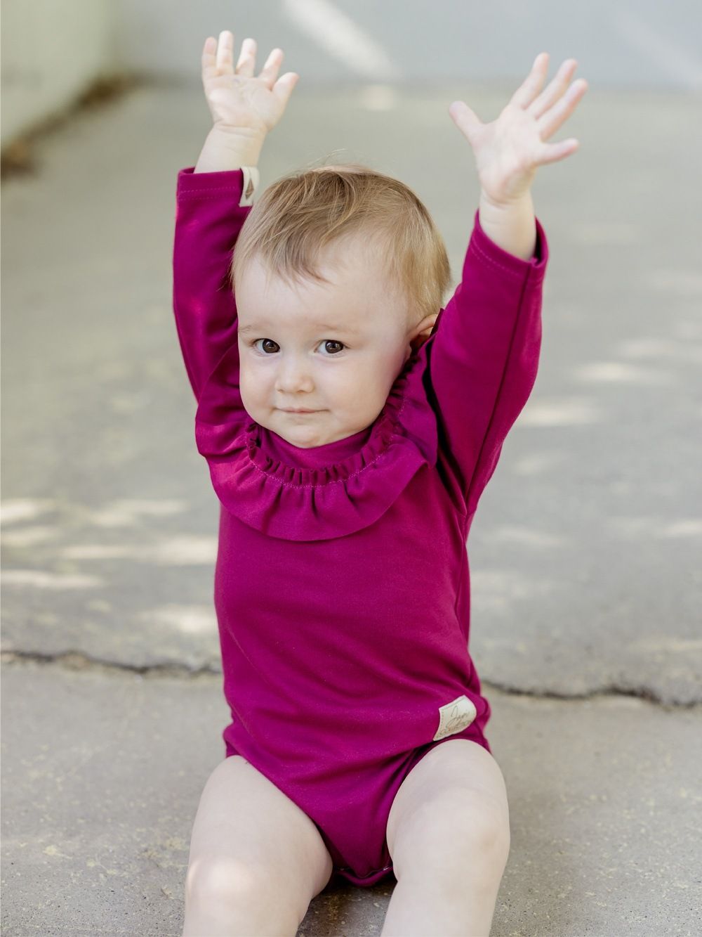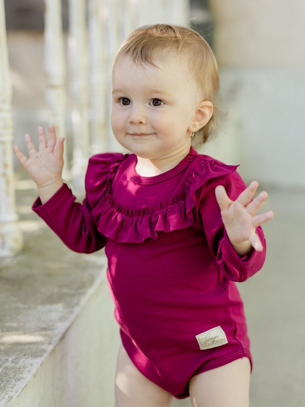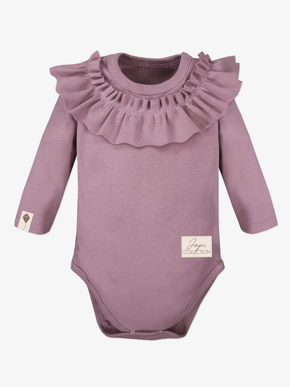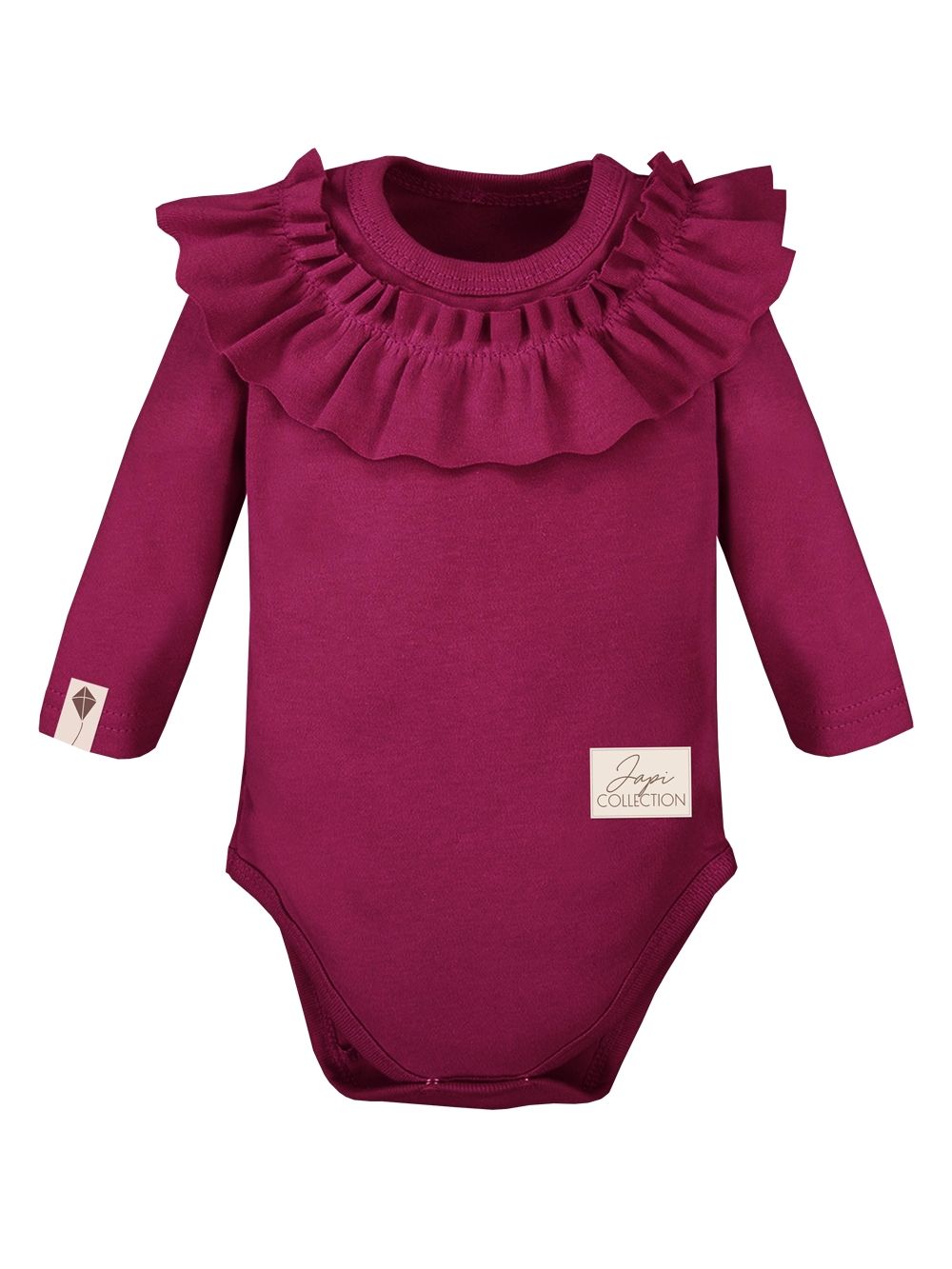 Dječji ženski bodi dugih rukava. Jednobojni pamučni materijal, udoban kroj i krasan mali volan oko vrata, koji čini bodi posebnim. Naći ćete ga u dvije ženske boje u veličinama od 56 do 104.