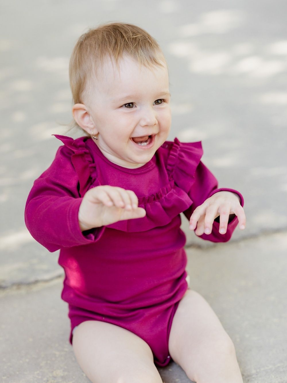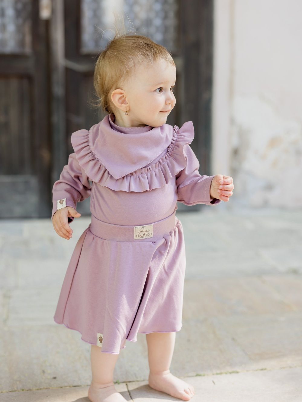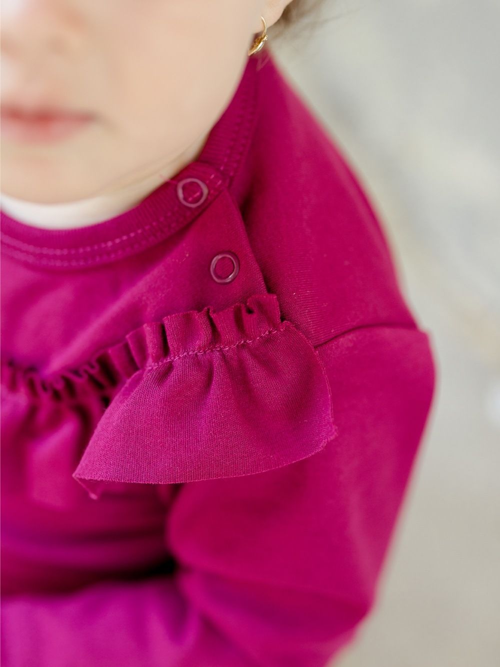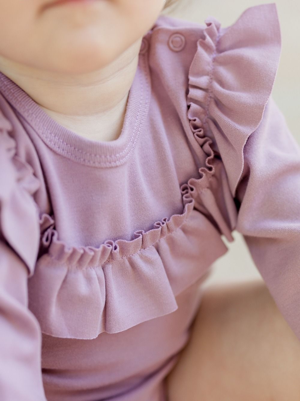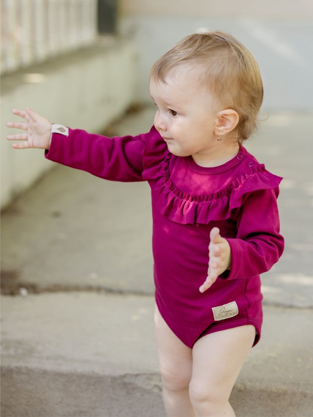 Dječji ženski bodi dugih rukava. Jednobojni pamučni materijal, udoban kroj i krasan mali volan oko vrata, koji čini bodi posebnim. Naći ćete ga u dvije ženske boje u veličinama od 56 do 104.