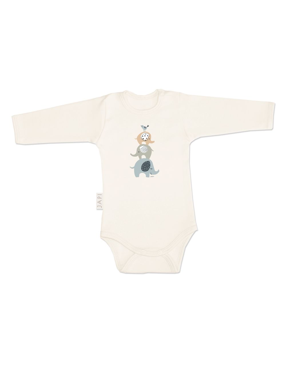 Ovaj bodi s dugim rukavima pruža cjelodnevnu udobnost zahvaljujući prozračnom pamučnom materijalu. Dugi rukavi štite od hladnoće, dok kopčanje na drukere olakšava oblačenje. Nježne boje i veseli motiv slonića čine ga savršenim izborom za vašu bebu.