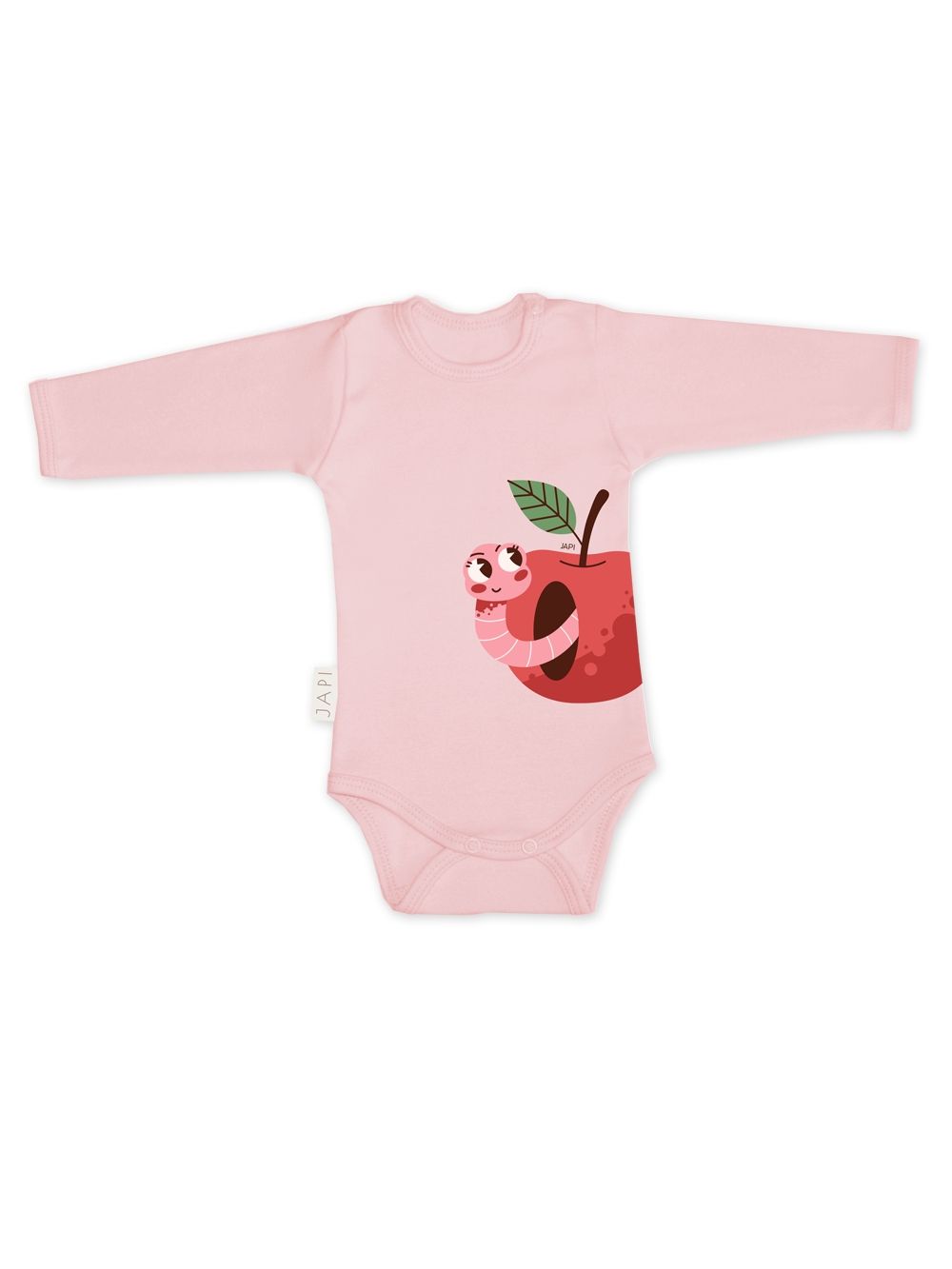 Slatki bodi s dugim rukavima WORM savršen je izbor za vašu bebu. Izrađen od mekog pamuka, nudi udobnost i nježnost za osjetljivu bebinu kožu. Zabavan print crva u jabuci dodaje šarm svakodnevnoj odjeći vaše bebe. Jednostavno kopčanje omogućuje laganu promjenu pelena. Dostupan u raznim bojama za svakodnevno nošenje.