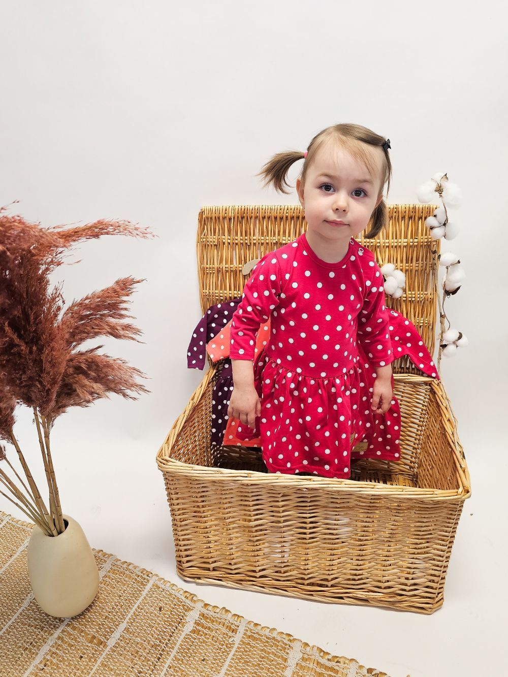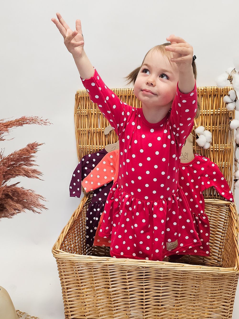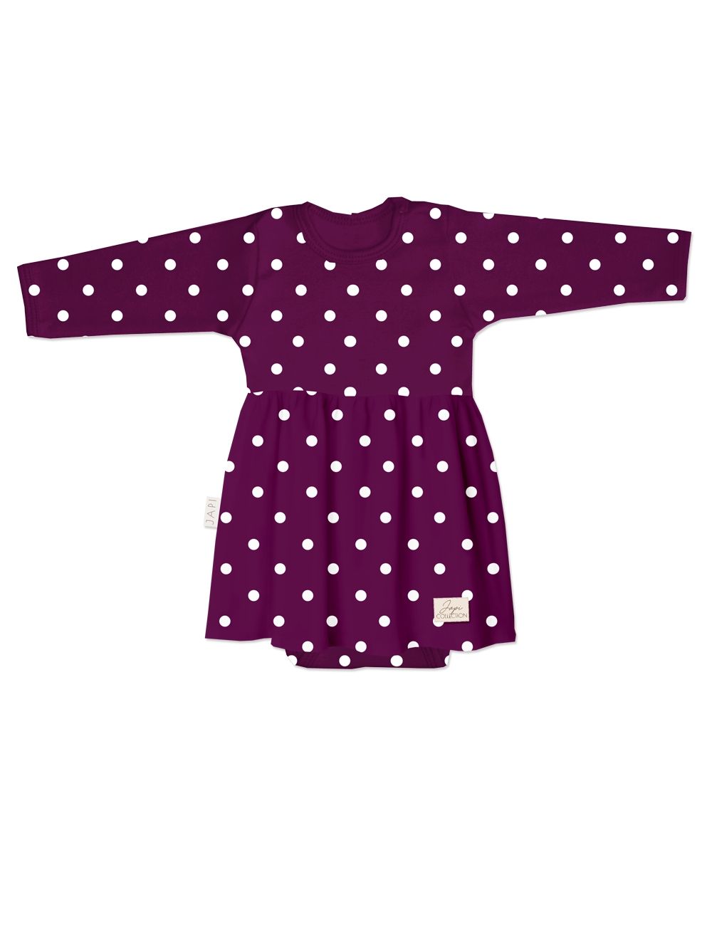 Ove elegantne haljine s tijelom su šik izbor za vašu malu princezu. Kombinacija klasične tamno ljubičaste boje i živahne bijele točkice nudi savršenu mješavinu elegancije i razigranosti. Dugi rukavi i ugodan kroj osiguravaju da će vaše dijete biti toplo i ugodno tijekom hladnih dana. Osim toga, nježan, ali izdržljiv materijal jamči dugovječnost čak i uz često nošenje i pranje.