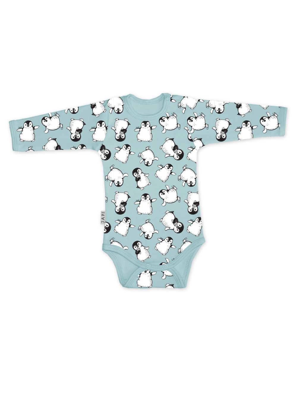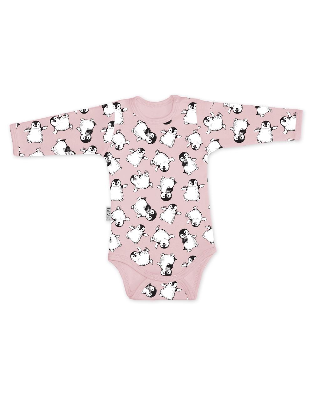 Ovaj bodi s dugim rukavima s veselim motivom pingvina savršen je izbor za vašu bebu. Izrađen je od ugodnog i mekanog materijala koji je nježan prema bebinoj koži i pruža udobnost tijekom cijelog dana. Dizajn je moderan i razigran, idealan za svakodnevno nošenje, ali i za posebne prilike. PINGUINE bodi ima jednostavno zatvaranje između nogu, što olakšava presvlačenje. Ovaj komad dostupan je u nekoliko pastelnih boja, a svi su ukrašeni simpatičnim slikama pingvina. Savršeno za svakodnevno nošenje ili kao poklon.