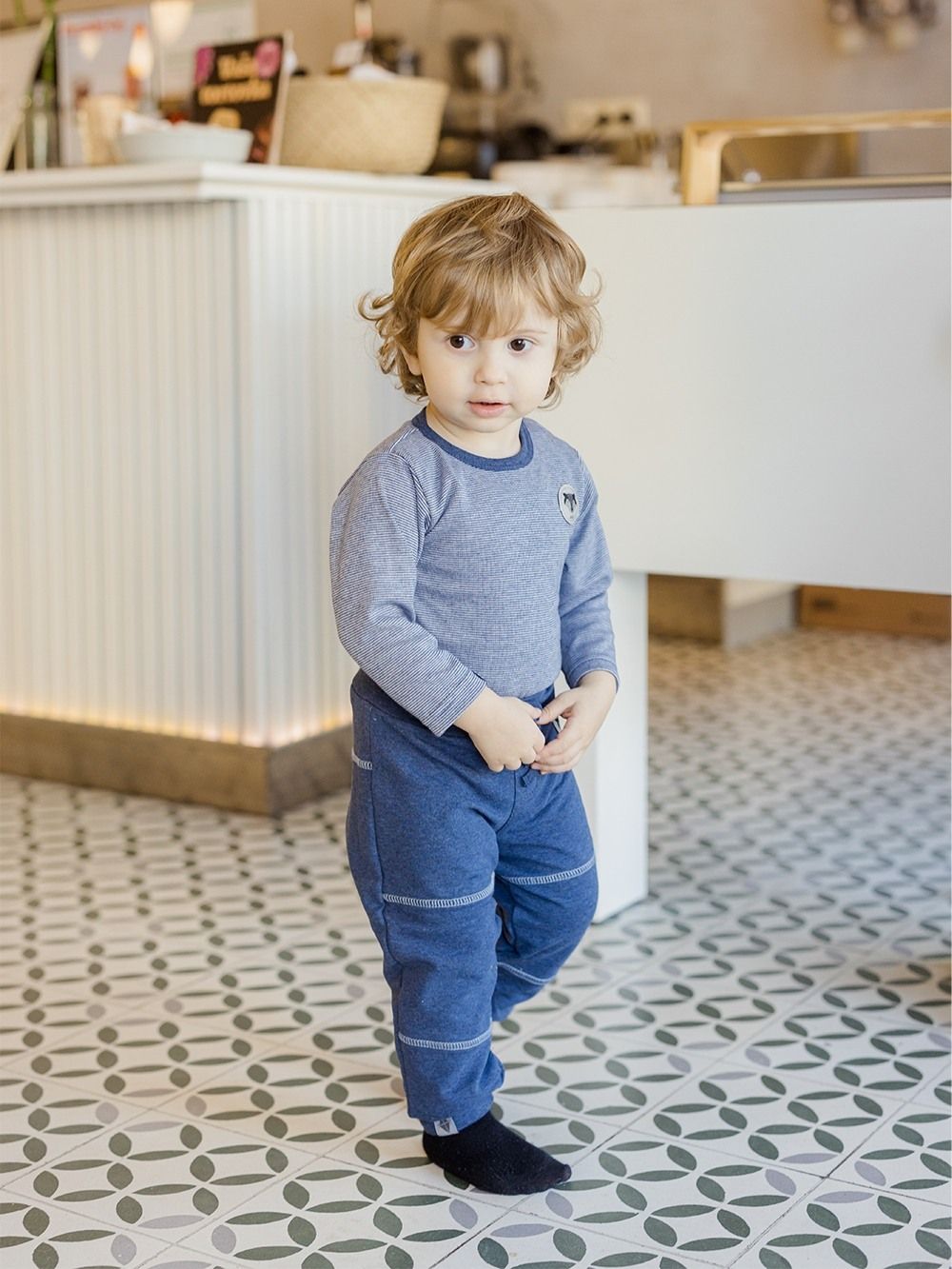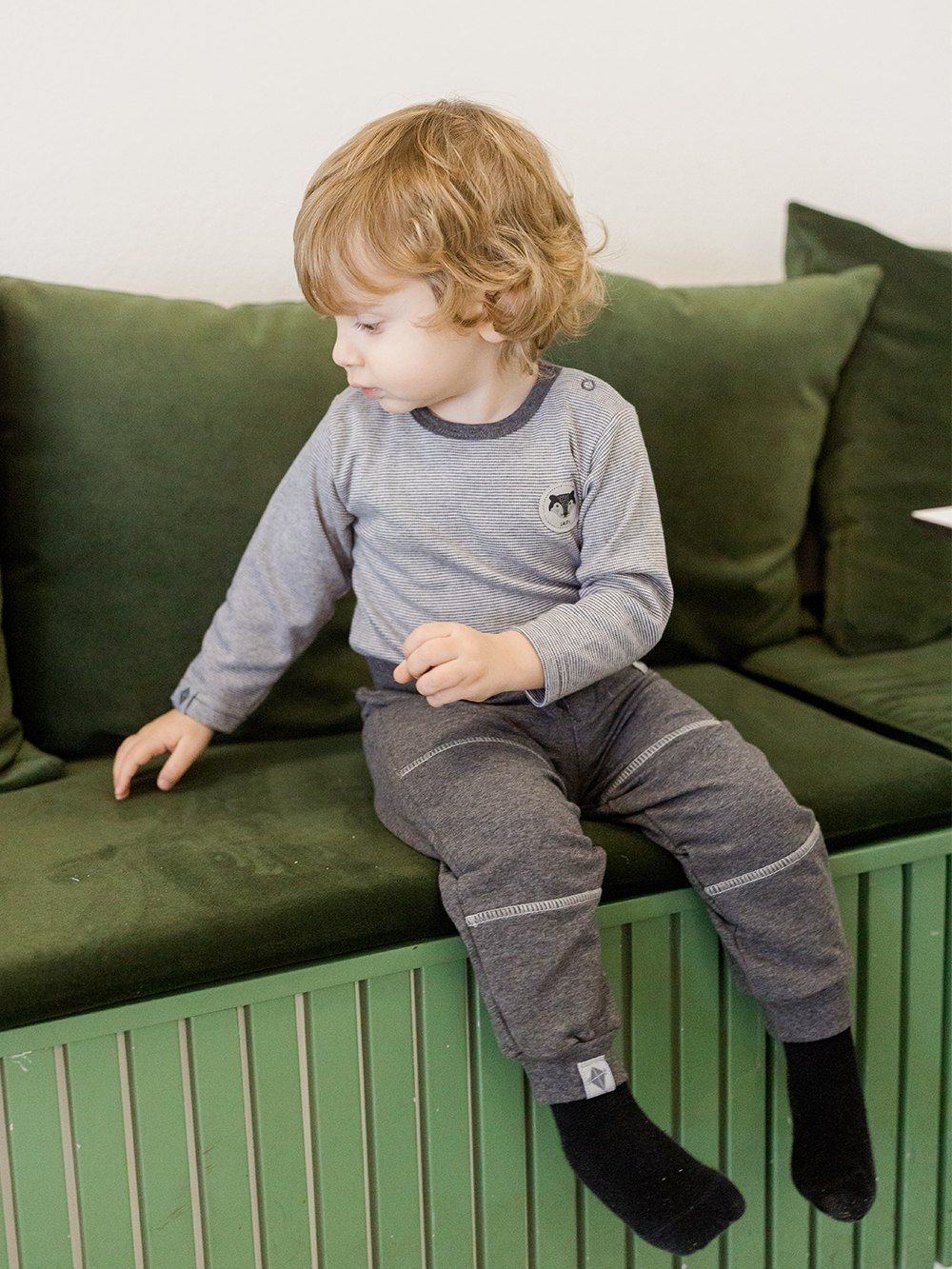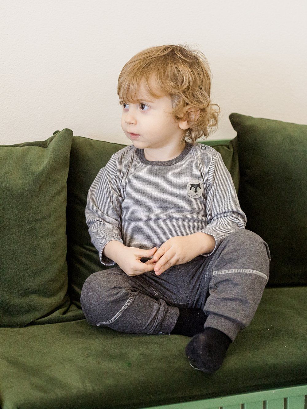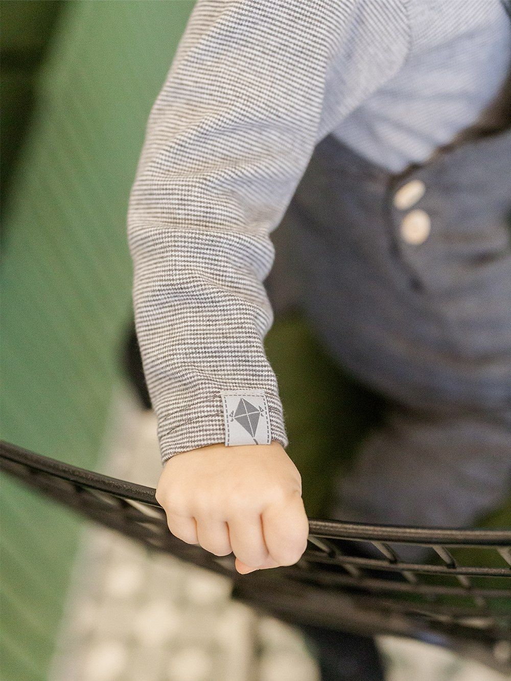Dječačke pamučne bodi Bodi dugih rukava za dječake u prekrasnom prugastom dizajnu. Materijal je fina pamučna trikotaža. Ugodno na dodir. Jednobojni rubovi oko vrata i nogu. Rasklapanje za metalne patentne zatvarače, certificirani materijali. Mala aplikacija s vukom na desnoj strani. Praktičan, ugodan i lijep komad za dječake.