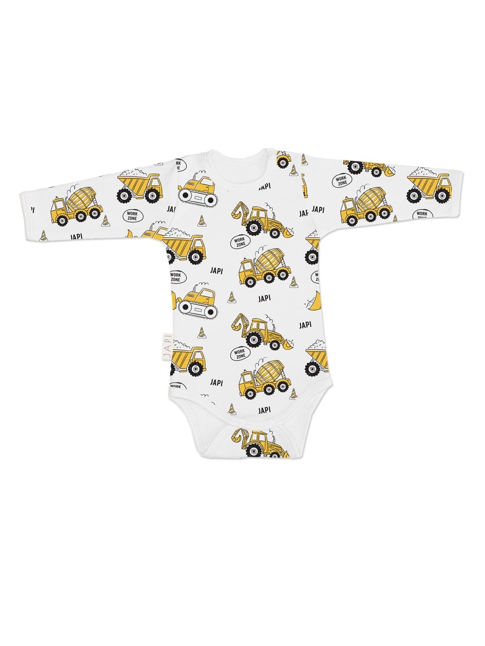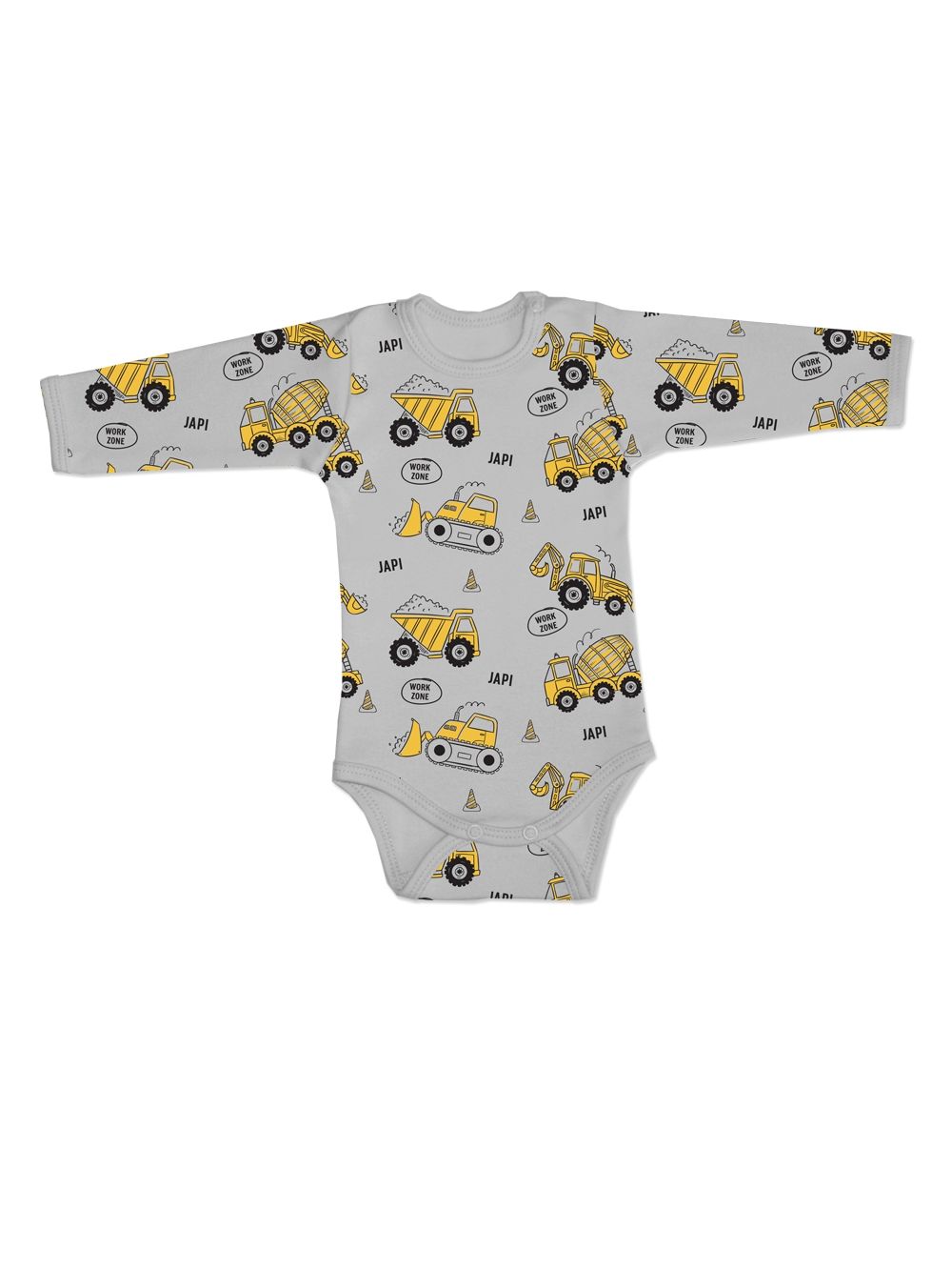 Bodije iz ove kolekcije sašili smo od 100% pamučne tkanine sa cijelim printom radnih automobila. Možete pronaći u plavoj, bijeloj i sivoj boji. Naši dječji bodi imaju čvrsti ovratnik koji se zatvara na kopču. Bodovi se lakše navlače i ne padaju s djetetovih ramena. Otvor između noge je sa metalnim kopčama, što olakšava bebinu promjenu pelena. Dječji bodi ima kvalitetne rubove te ne grebu i ne gnječu bebu.