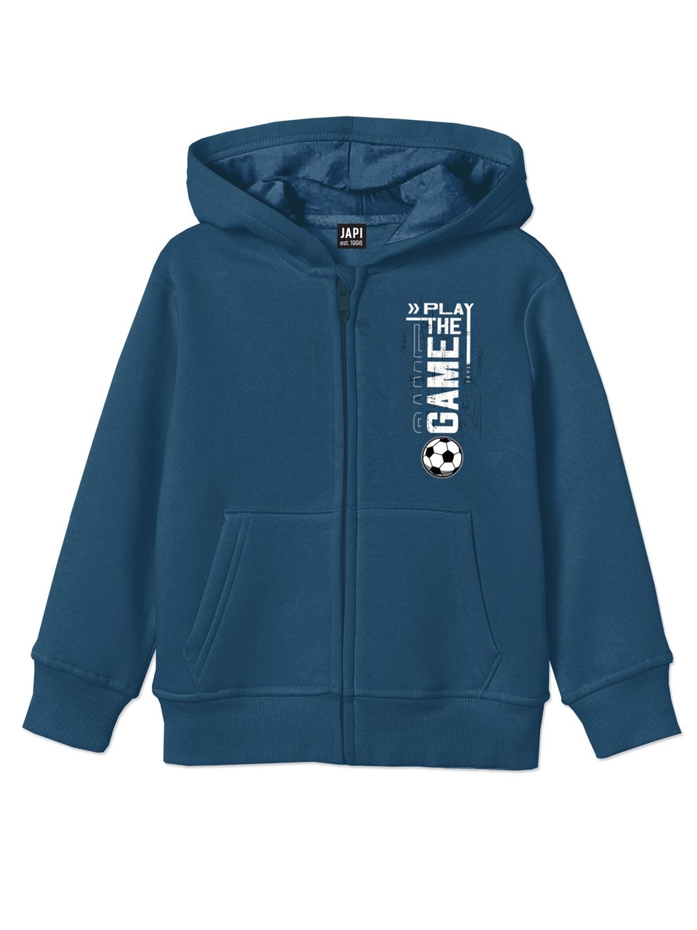 Deblja dječja majica s kapuljačom iz kolekcije GAME savršen je komad za hladnije dane. Izrađena od kvalitetnog pamuka s toplom unutarnjom podstavom, pruža maksimalnu toplinu i udobnost. Praktičan kroj s kapuljačom, rebrastim manžetama i džepom „klokanicom“ osigurava udobnost pri svakodnevnom nošenju. Sportski print daje majici moderan izgled koji će se svidjeti svakom malom ljubitelju igara. Ova topla dječja majica idealna je za slobodno vrijeme, šetnje ili školu. Izdržljiva izrada i kvalitetni šavovi jamče dug vijek trajanja čak i uz često pranje. Majica se odlično kombinira s trenirkama iz iste kolekcije. Pružite svom djetetu stil i toplinu u jednom komadu.