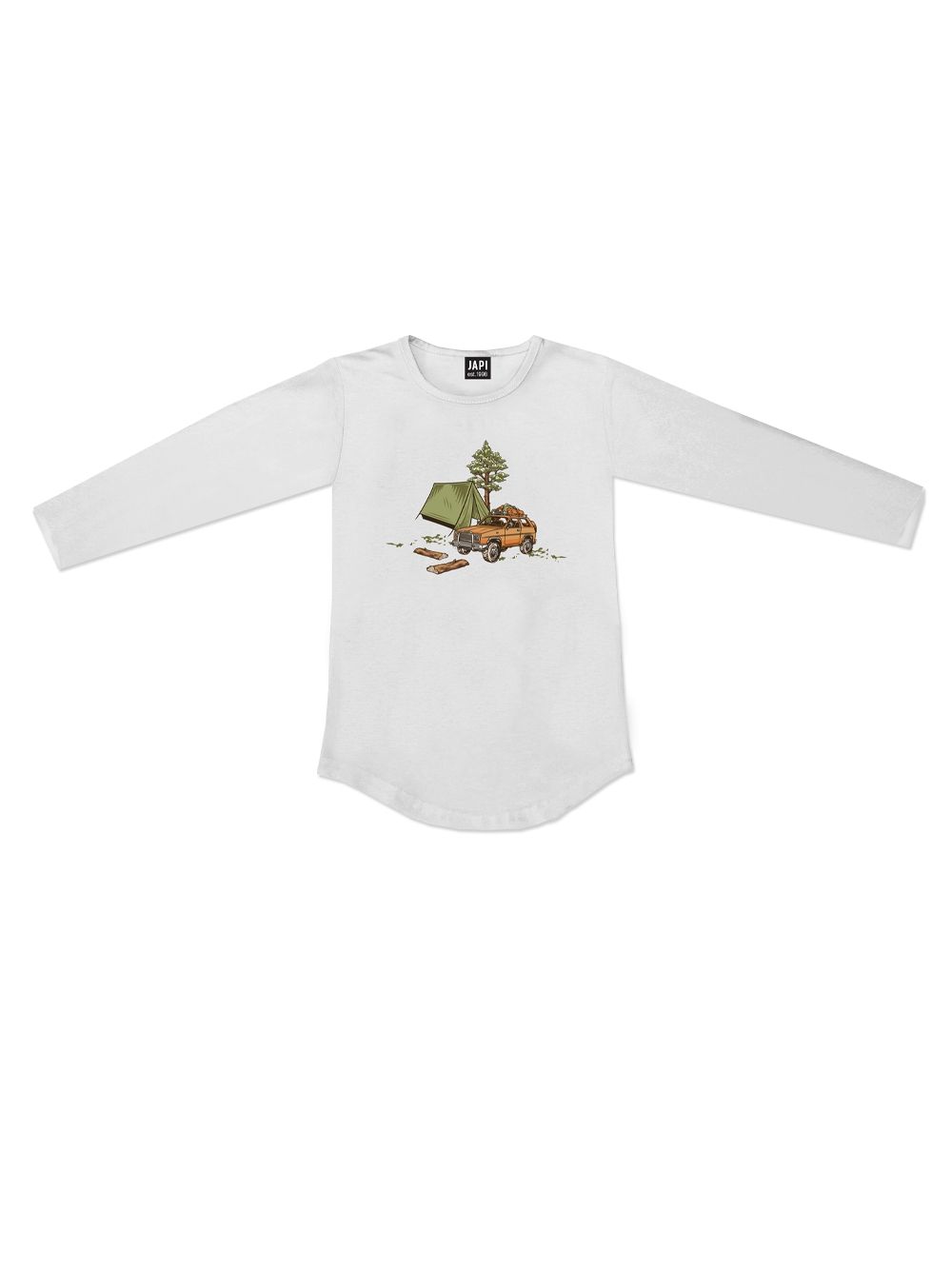 Ova dječačka majica dugih rukava iz kolekcije CAMP savršen je izbor za male avanturiste. Prednju stranu krasi originalni print kamp vozila i šatora, koji potiče dječju maštu. Produženi kroj sa zaobljenim rubom daje majici moderan izgled i osigurava udobnost pri kretanju. Majica je dostupna u dvije prirodne nijanse – bež i zelenoj, koje se lako kombiniraju s trenirkama ili trapericama.