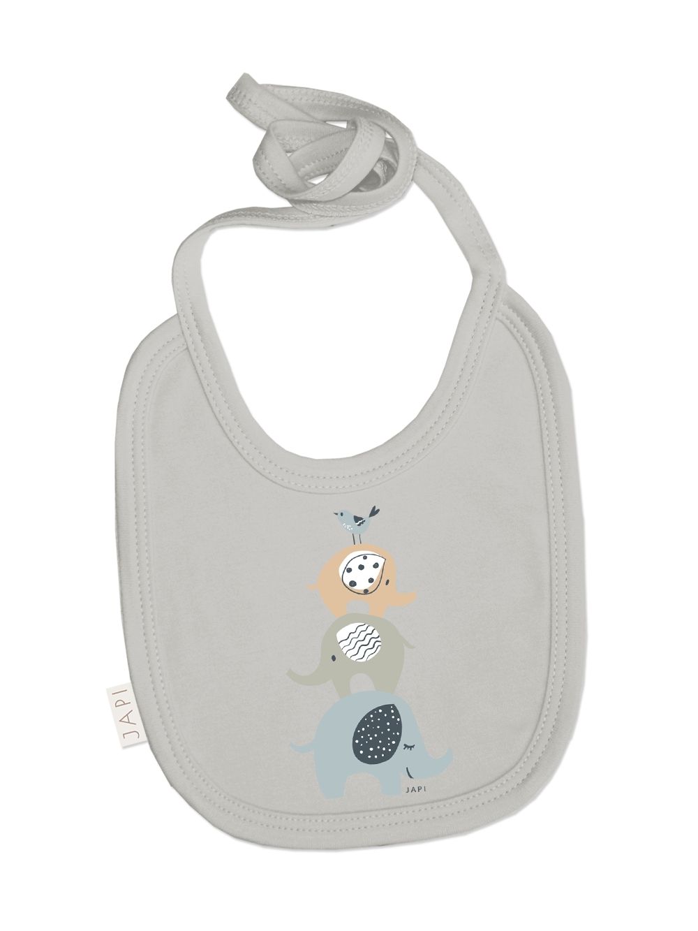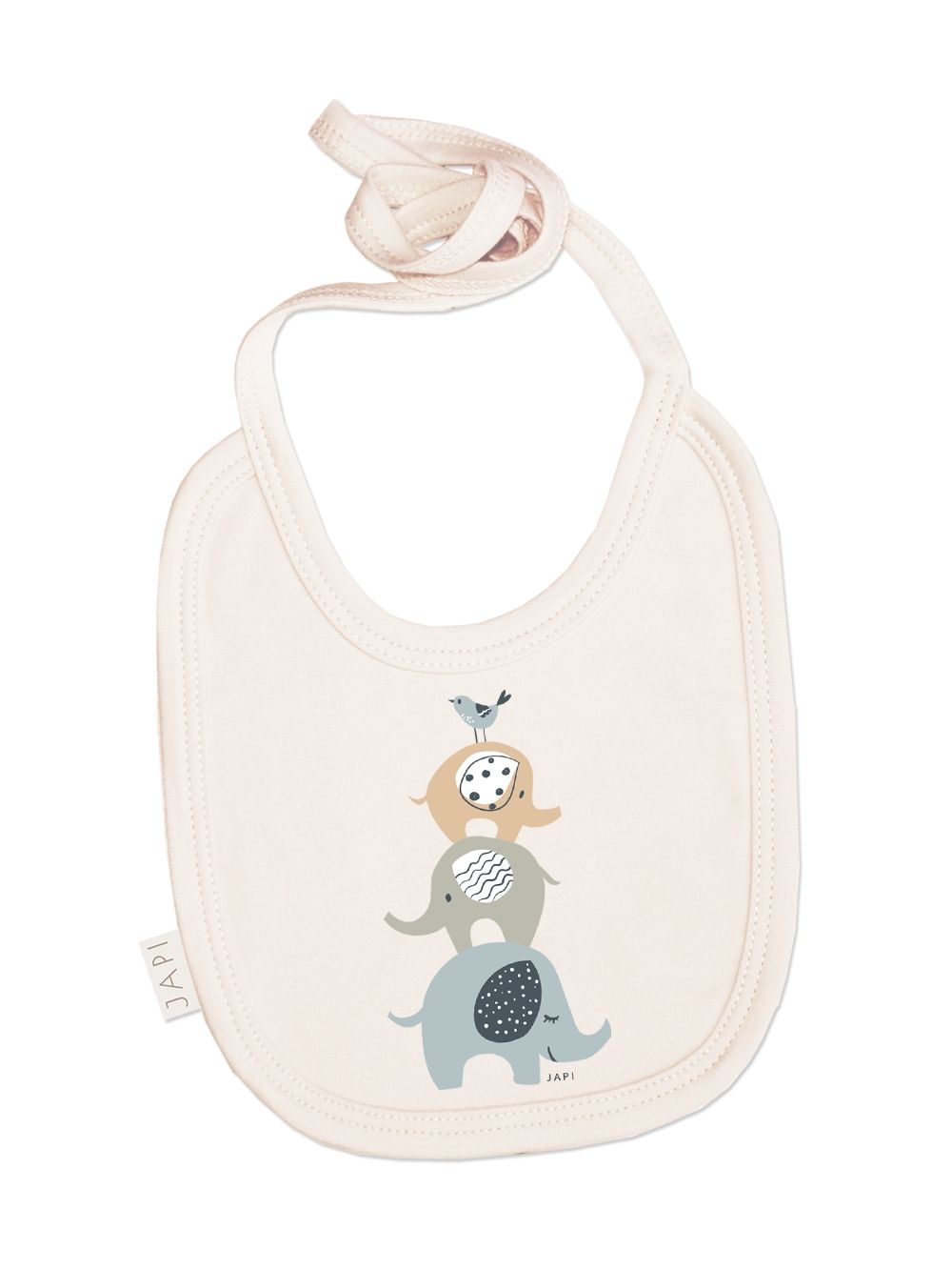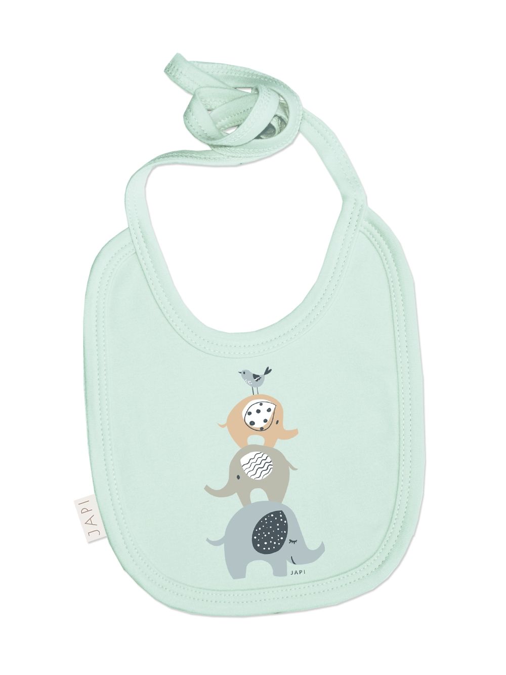 Ovaj pamučni podbradnjak je praktičan dodatak za svaku bebu. Upijajući materijal štiti odjeću od mrlja, a mekan pamuk nježan je prema koži. Veseli motiv slonića čini ga jedinstvenim.