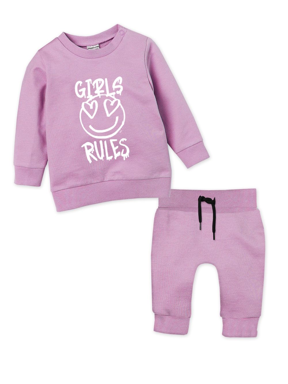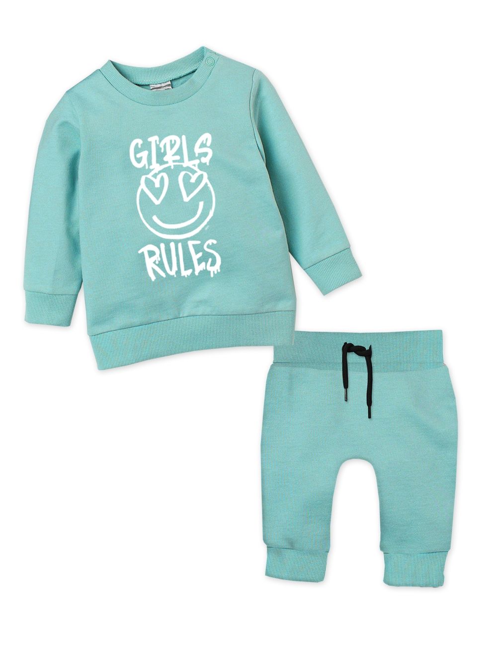 Dječji set iz kolekcije GIRLS nudi kompletan outfit za male djevojčice koje cijene udobnost i praktičnost. Set uključuje udobne hlače i hudicu s dugim rukavima, oboje izrađene od mekog i rastezljivog materijala koji omogućava slobodu kretanja. Elastični pojas i manžete osiguravaju da set dobro pristaje i da je udoban za nošenje tijekom cijelog dana. Pastelne boje i veseli dizajn s printom "Girls Rules" čine ovaj set idealnim izborom za svakodnevno nošenje.