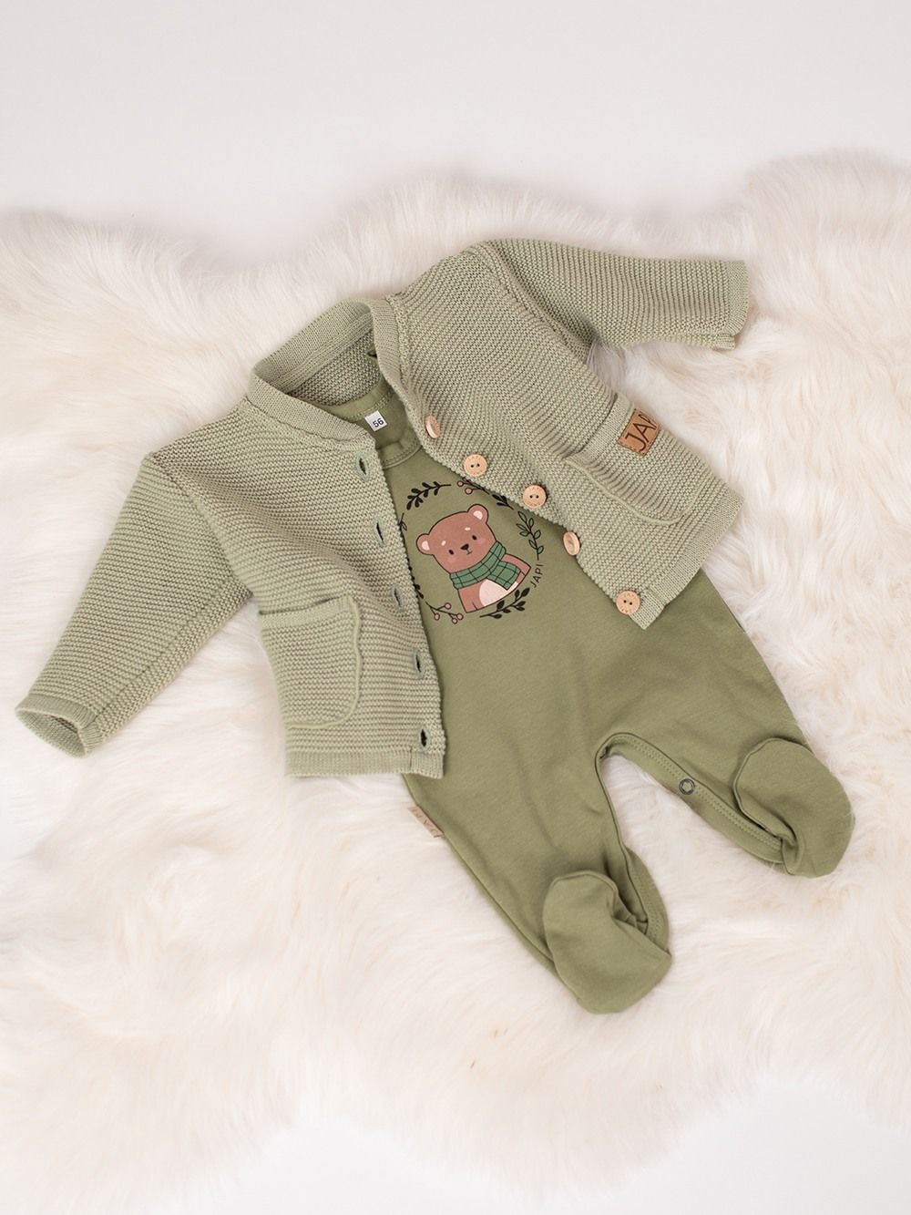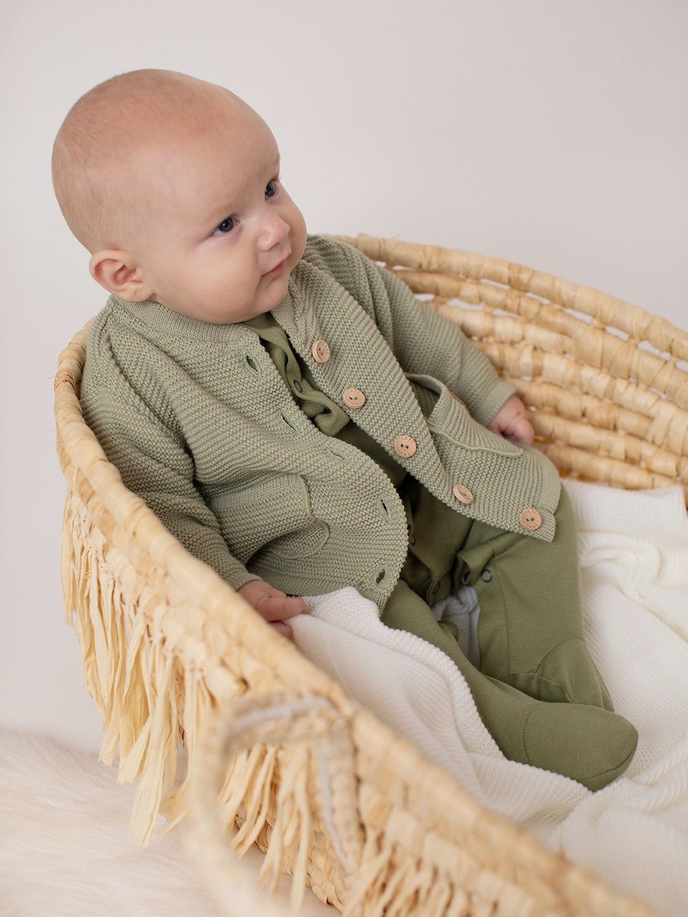 Dječji džemper SAFARI savršen je za hladnije dane, održavajući vašu bebu toplom i ugodnom. Izrađen od mekog, kvalitetnog pletenog materijala, nježan je prema koži i ugodan na dodir. Džemper ima praktične gumbne zatvarače koji olakšavaju oblačenje i svlačenje. Ovaj model dolazi u nježnim, neutralnim bojama koje se lako kombiniraju s ostalim komadima iz SAFARI kolekcije