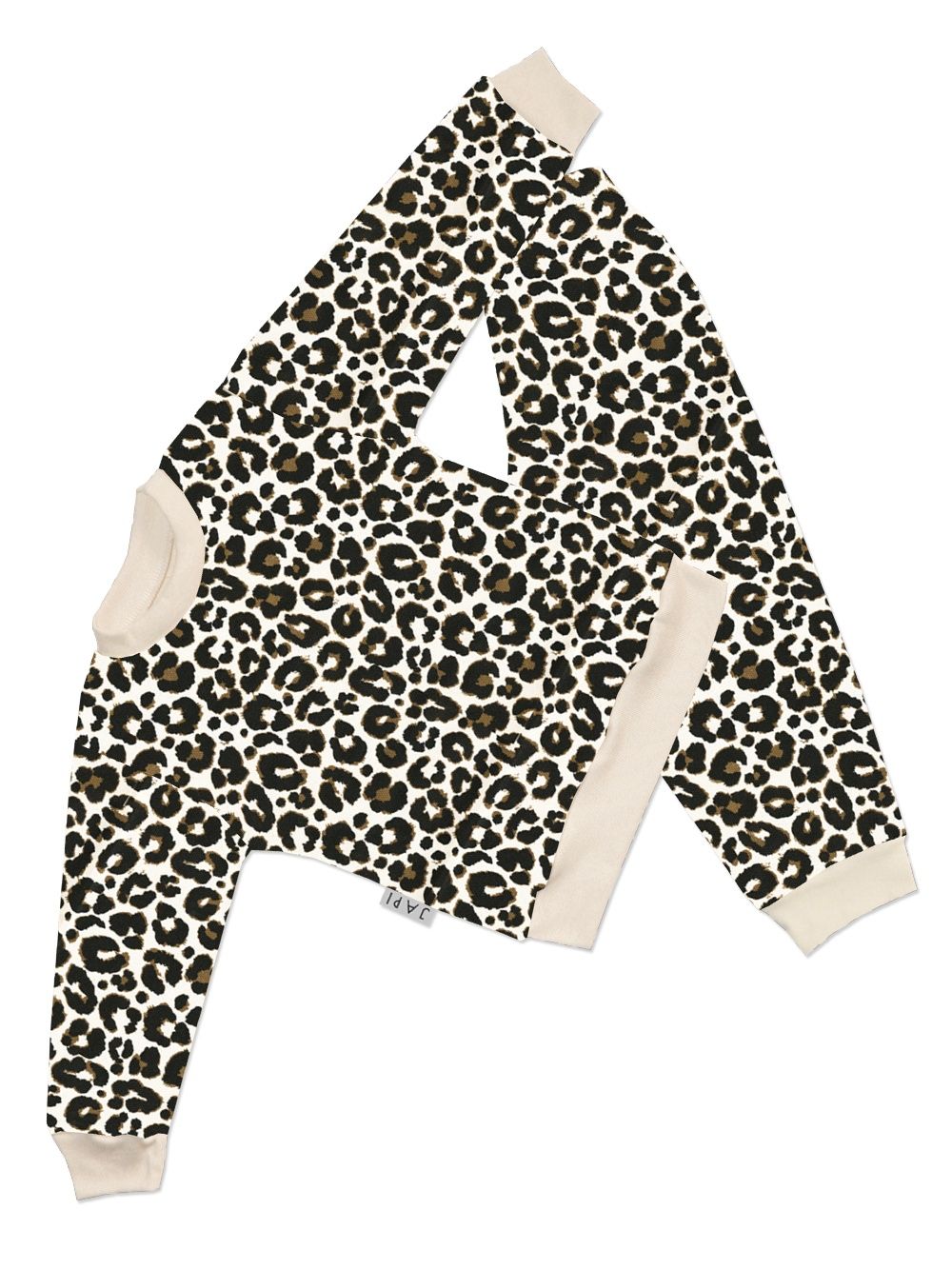 Stilska dječja pidžama s leopard uzorkom savršen je izbor za male ljubiteljice životinjskih motiva. Izrađena je od mekog i ugodnog materijala koji pruža udobnost tijekom cijele noći. Gornji dio ima duge rukave i ravan kroj, dok su hlače završene elastičnim manžetama za bolje pristajanje. Elastični pojas osigurava udobno nošenje bez ograničenja u kretanju. Izraženi uzorak po cijeloj površini daje pidžami poseban i razigran izgled. Idealna za spavanje i opuštanje kod kuće.