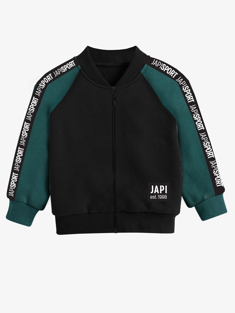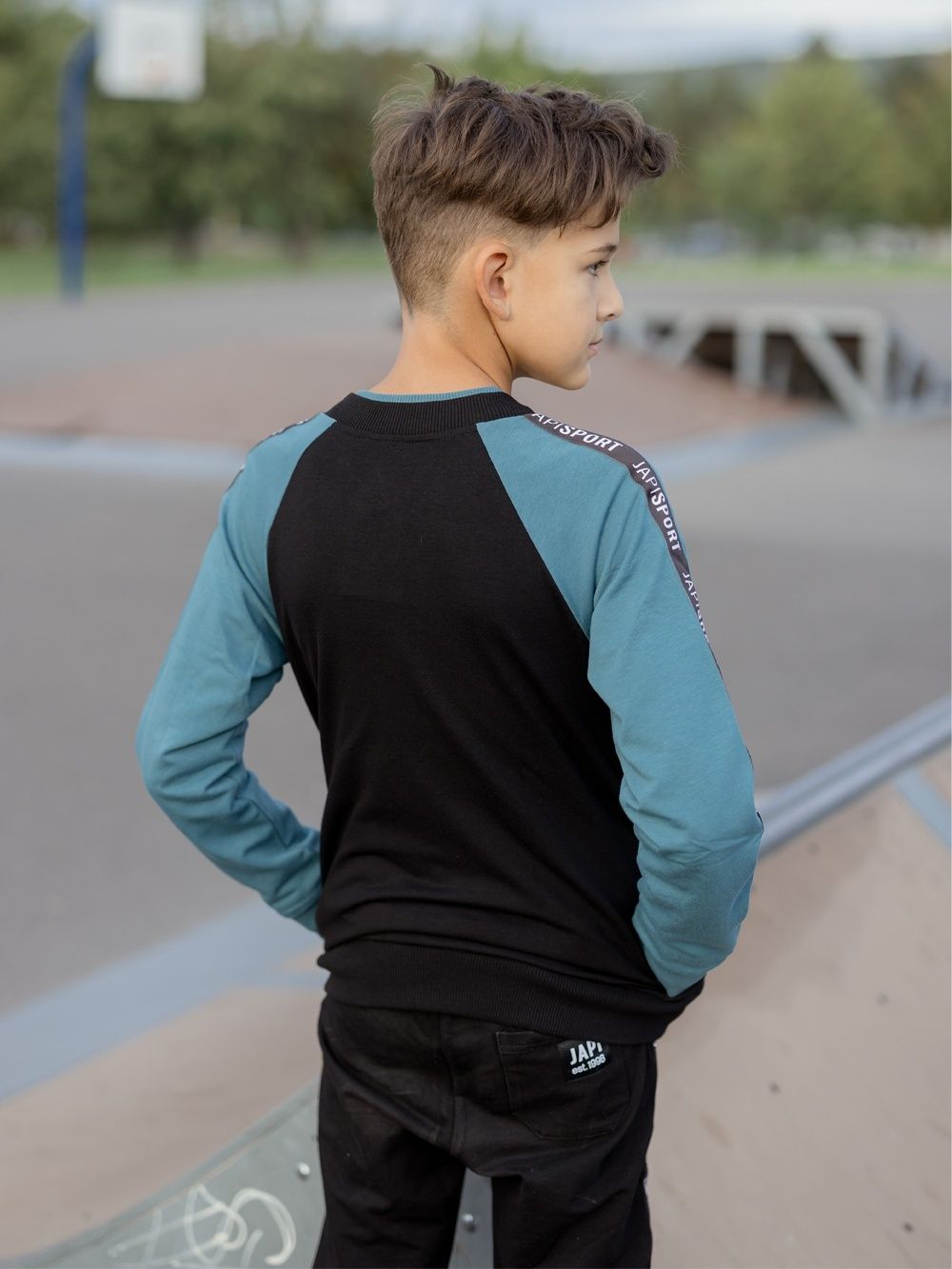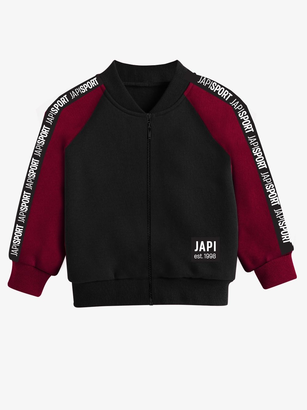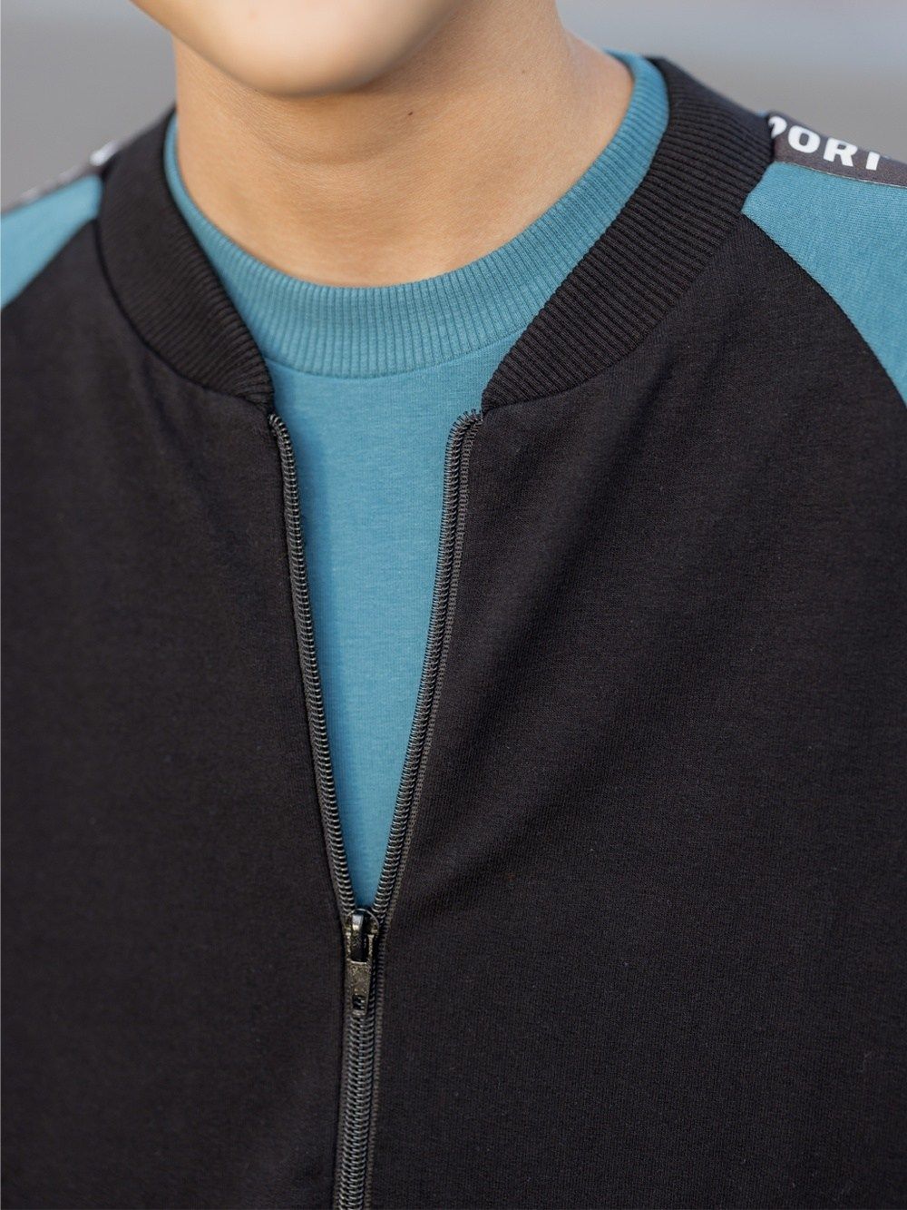 Muška crna majica tipa spitfire sa zakopčavanjem na patent, dopunjena rukavima bordo ili zelene boje. Rukavi su šiveni u raglan stilu, što majici daje moderan izgled. Na rukavima su trake sa stilskom prišivkom.