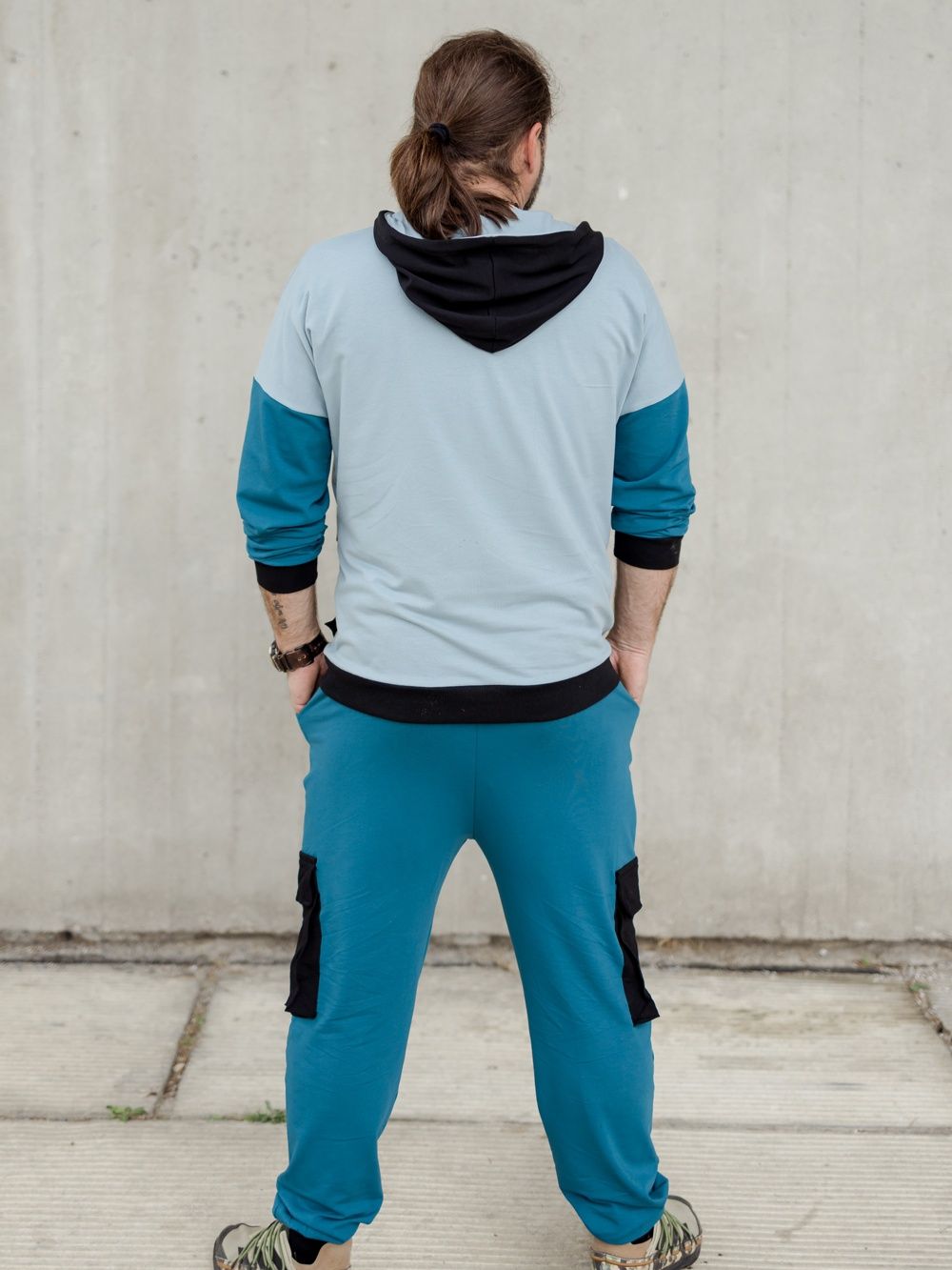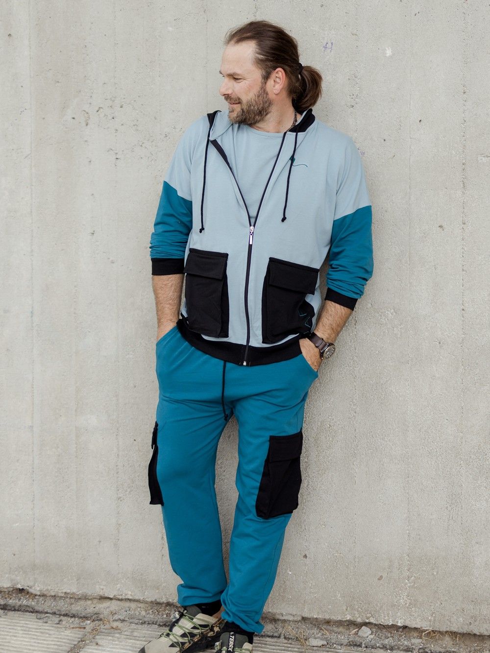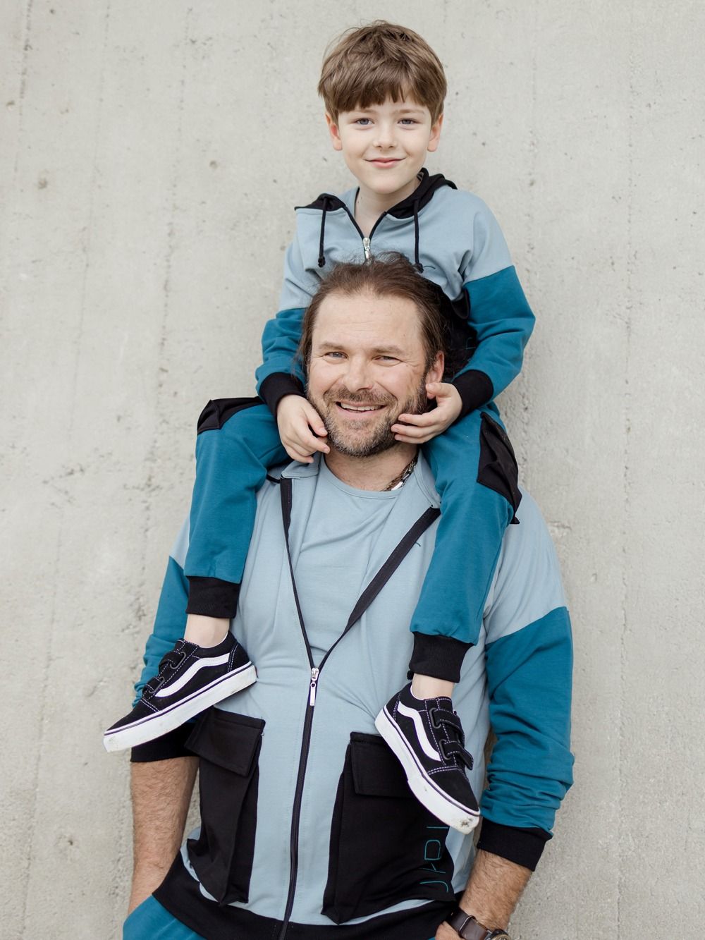 Moderna muška majica s kapuljačom. Majica s kapuljačom i patentom te velikim džepovima kontrastne boje s preklopima. Ugodan i slobodan kroj, koji muškarci vole. Sportski kroj dopunjava cijelu kolekciju a majicu s kapuljačom možete uskladiti s muškim kratkim hlačama, trenerkom ili donjom majicom. Dostupna i u dječjim veličinama, te se otac može uskladiti sa sinom, ili stariji brat s mlađim.