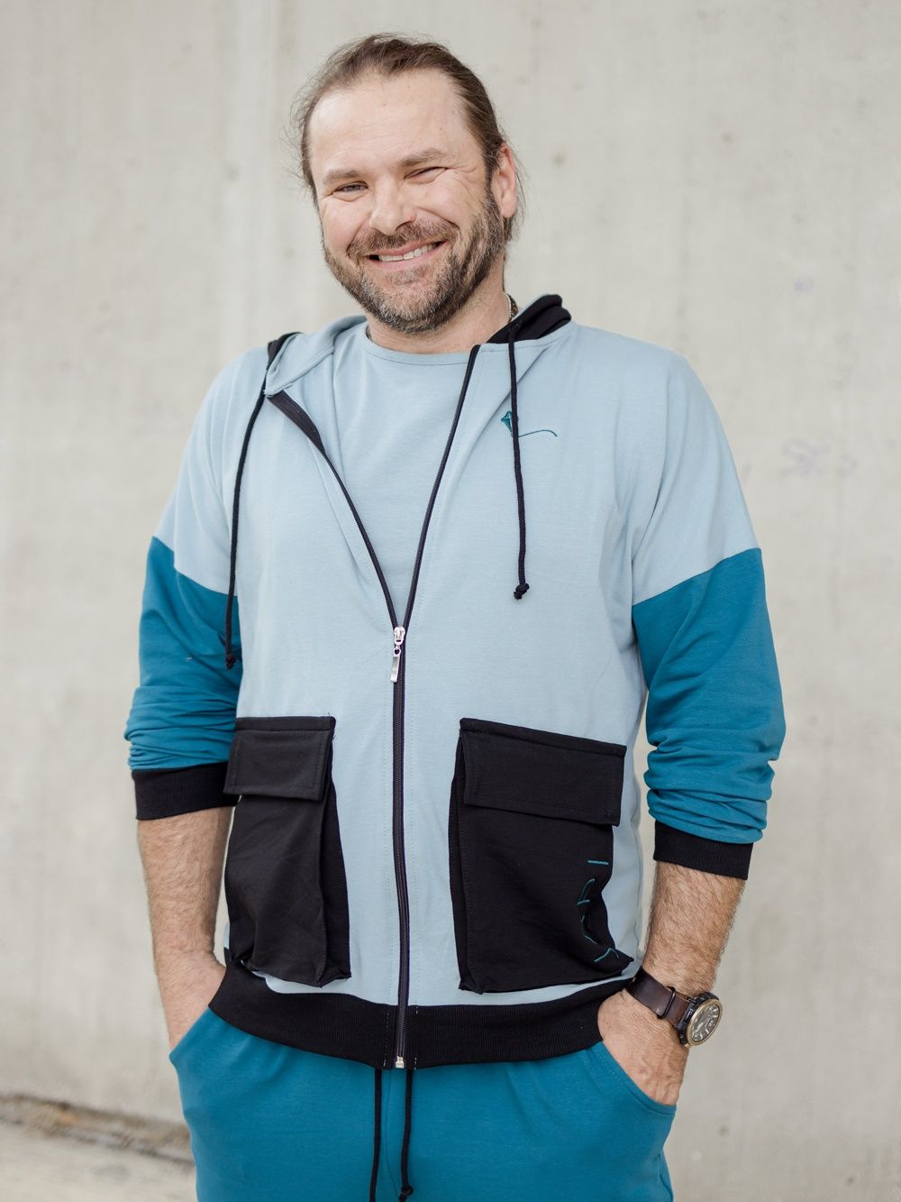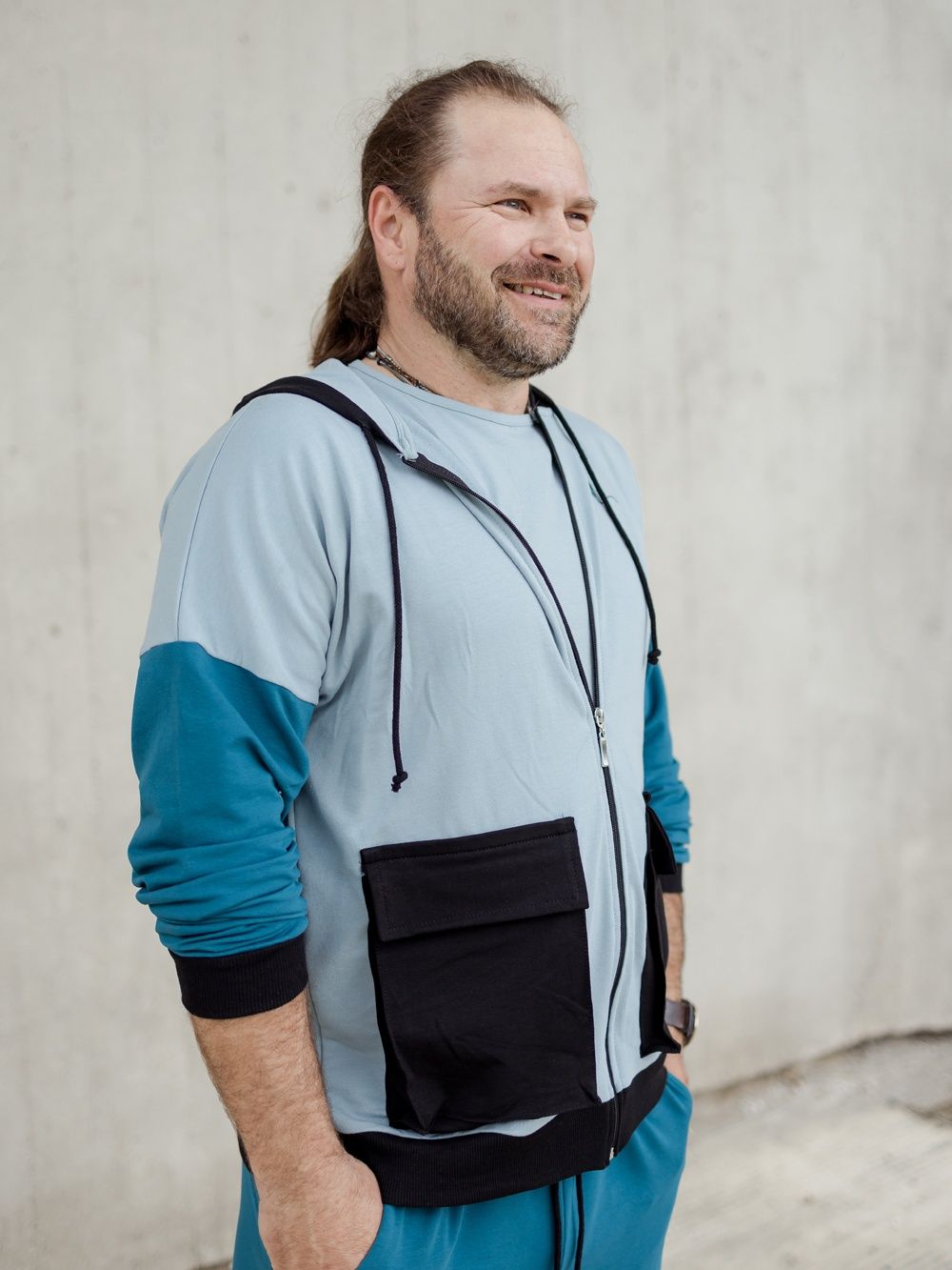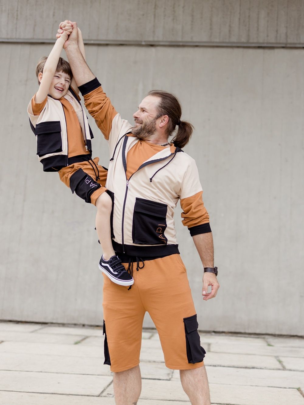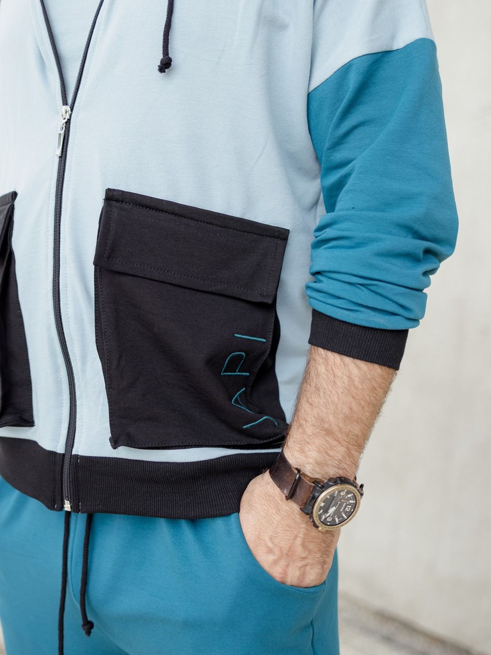 Moderna muška majica s kapuljačom. Majica s kapuljačom i patentom te velikim džepovima kontrastne boje s preklopima. Ugodan i slobodan kroj, koji muškarci vole. Sportski kroj dopunjava cijelu kolekciju a majicu s kapuljačom možete uskladiti s muškim kratkim hlačama, trenerkom ili donjom majicom. Dostupna i u dječjim veličinama, te se otac može uskladiti sa sinom, ili stariji brat s mlađim.