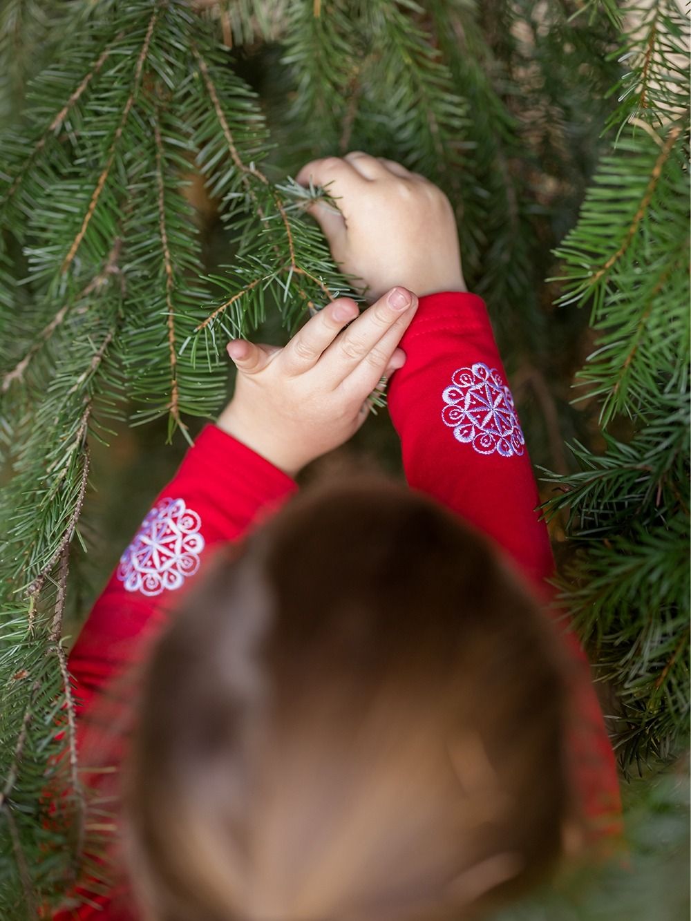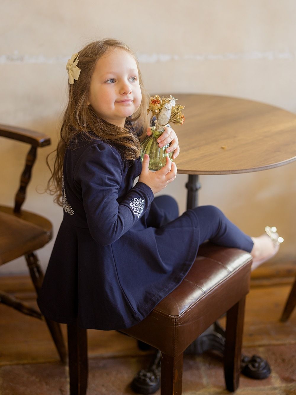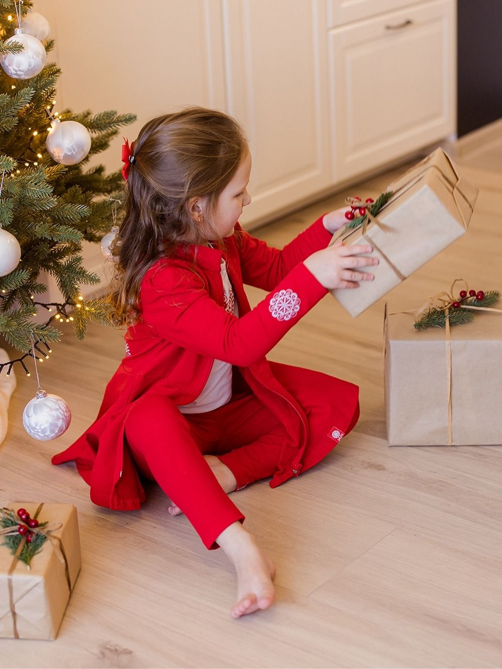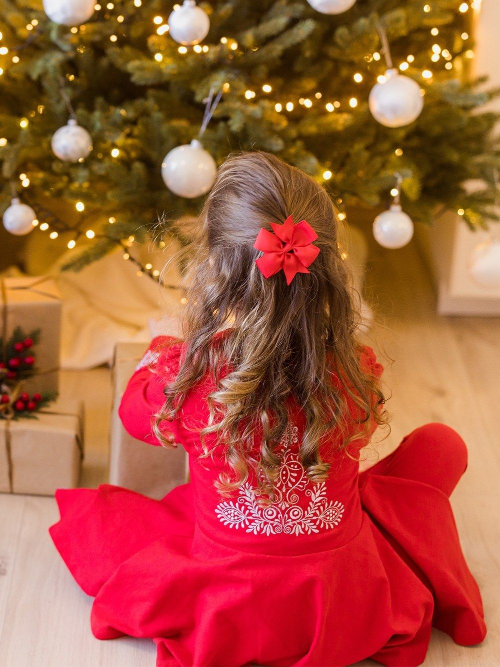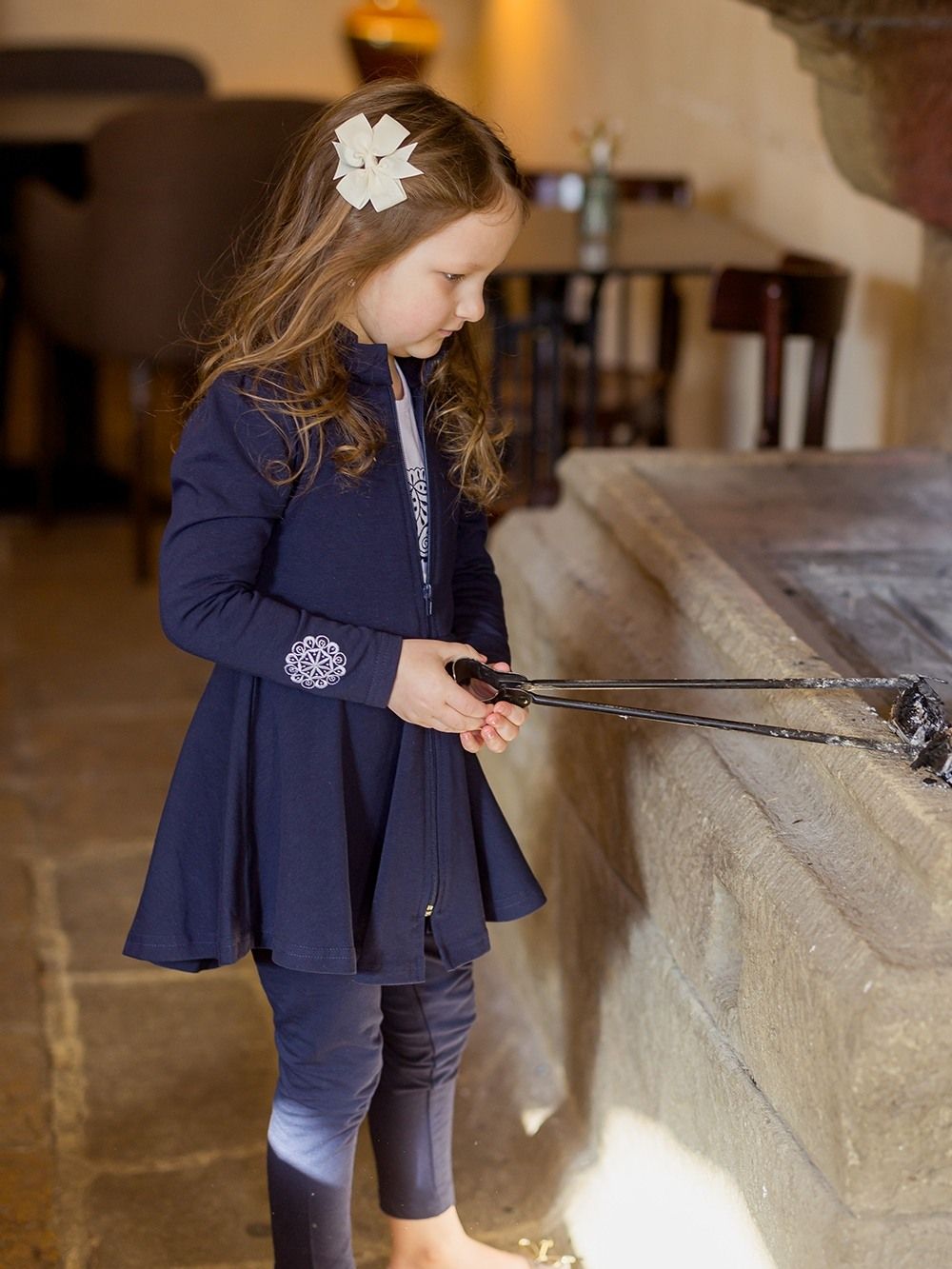 Lijepa djevojačka dukserica skupljenih rukava, produženog kroja i stojećeg ovratnika. Komad koji je prikladni za svečano fotografiranje ili božićno vrijeme. Dopunjena je obrađenim vezom. Ima perunski cvijet i komad Čataj veza. Vez je na oba rukava i na leđima.