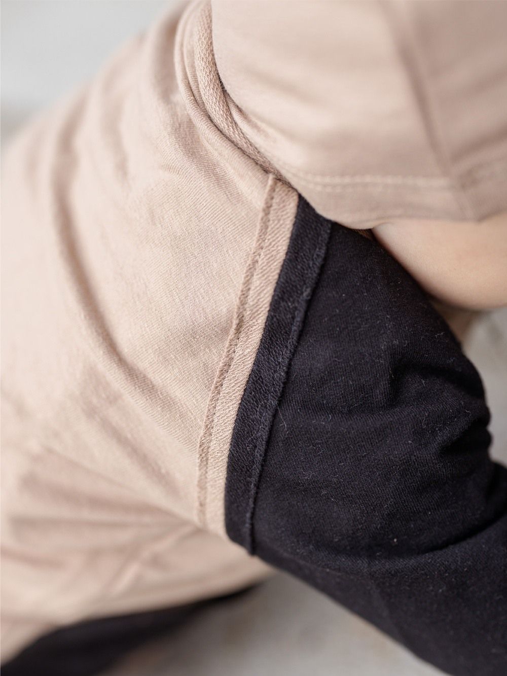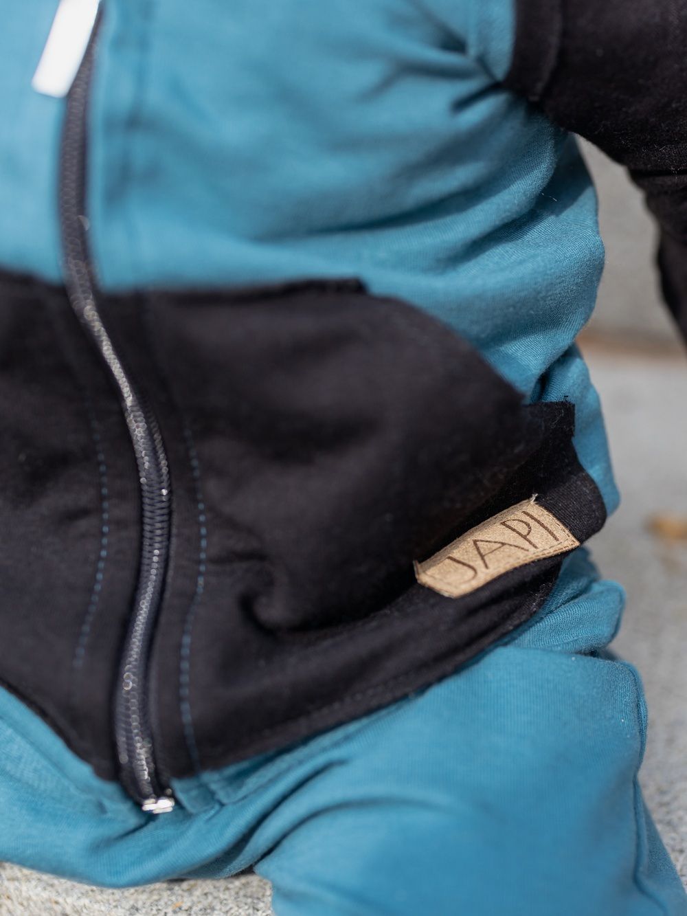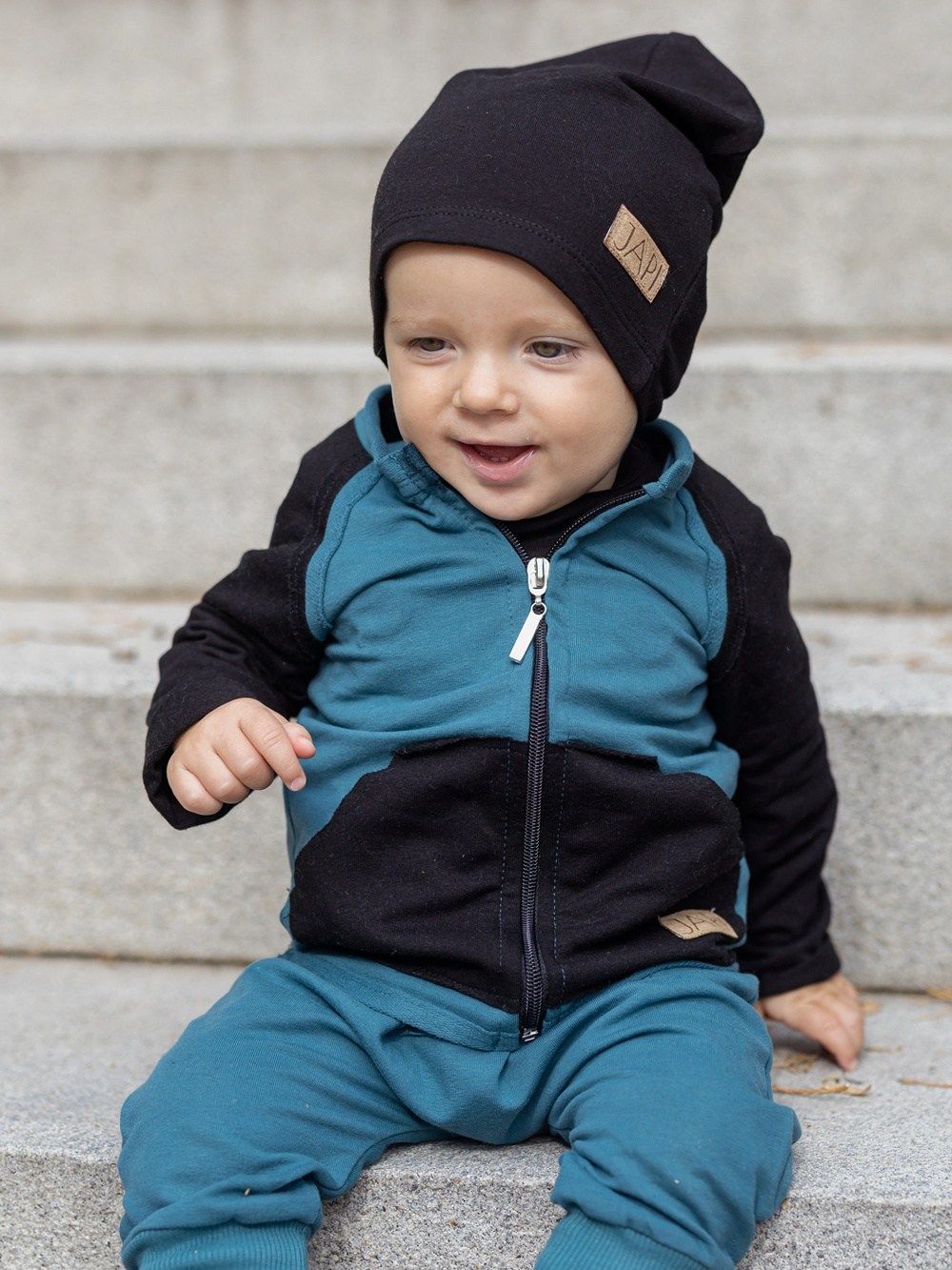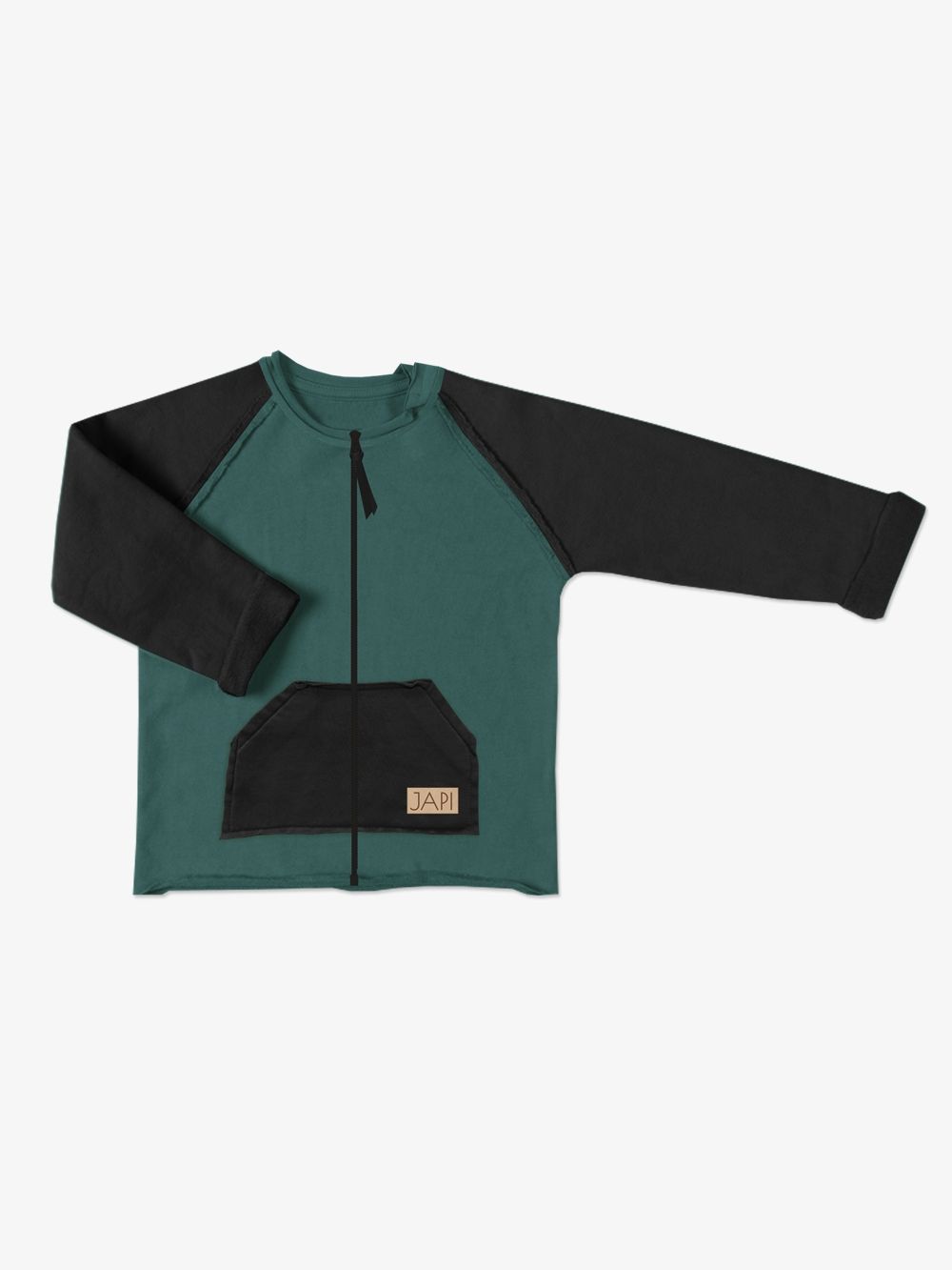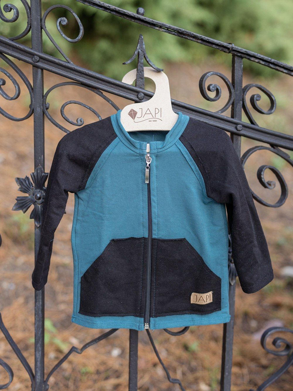 Majica s kapuljačom se raskopčava na patent, ima velike kontrastne prednje džepove. Kontrastni raglan rukavi su vrlo moderni te djeluju sportski. Kombinirajte s sportskim hlačama te ćete imati lijepo usklađen outfit za mladog gospodina.