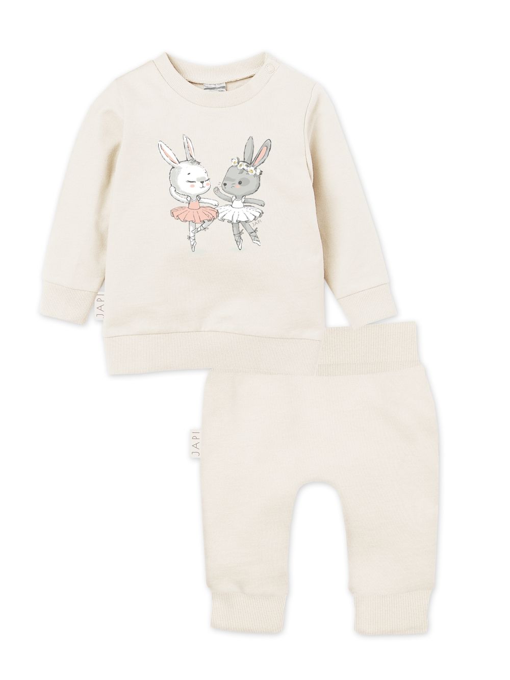 Stilski dječji komplet iz kolekcije BALLERINA sastoji se od džempera i hlača, idealan za svakodnevno nošenje. Izrađen od mekanog pamuka, pruža udobnost tijekom cijelog dana. Komplet je ukrašen slatkim motivom baletanke, koji ovom komadu daje jedinstven i razigran izgled.