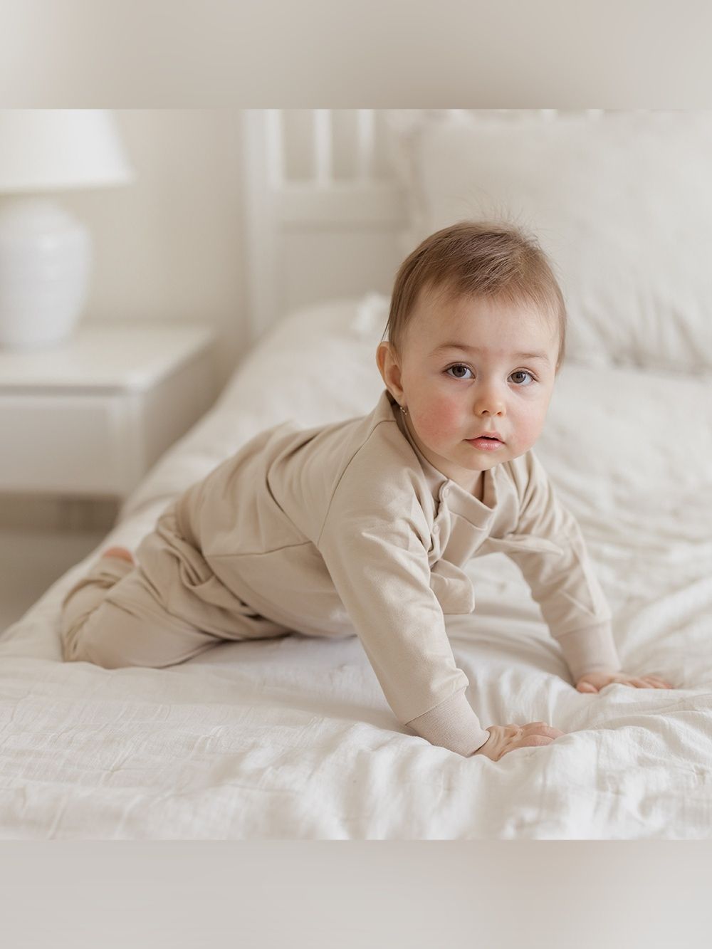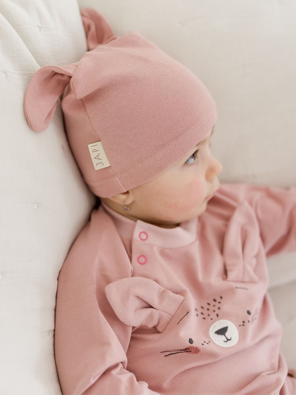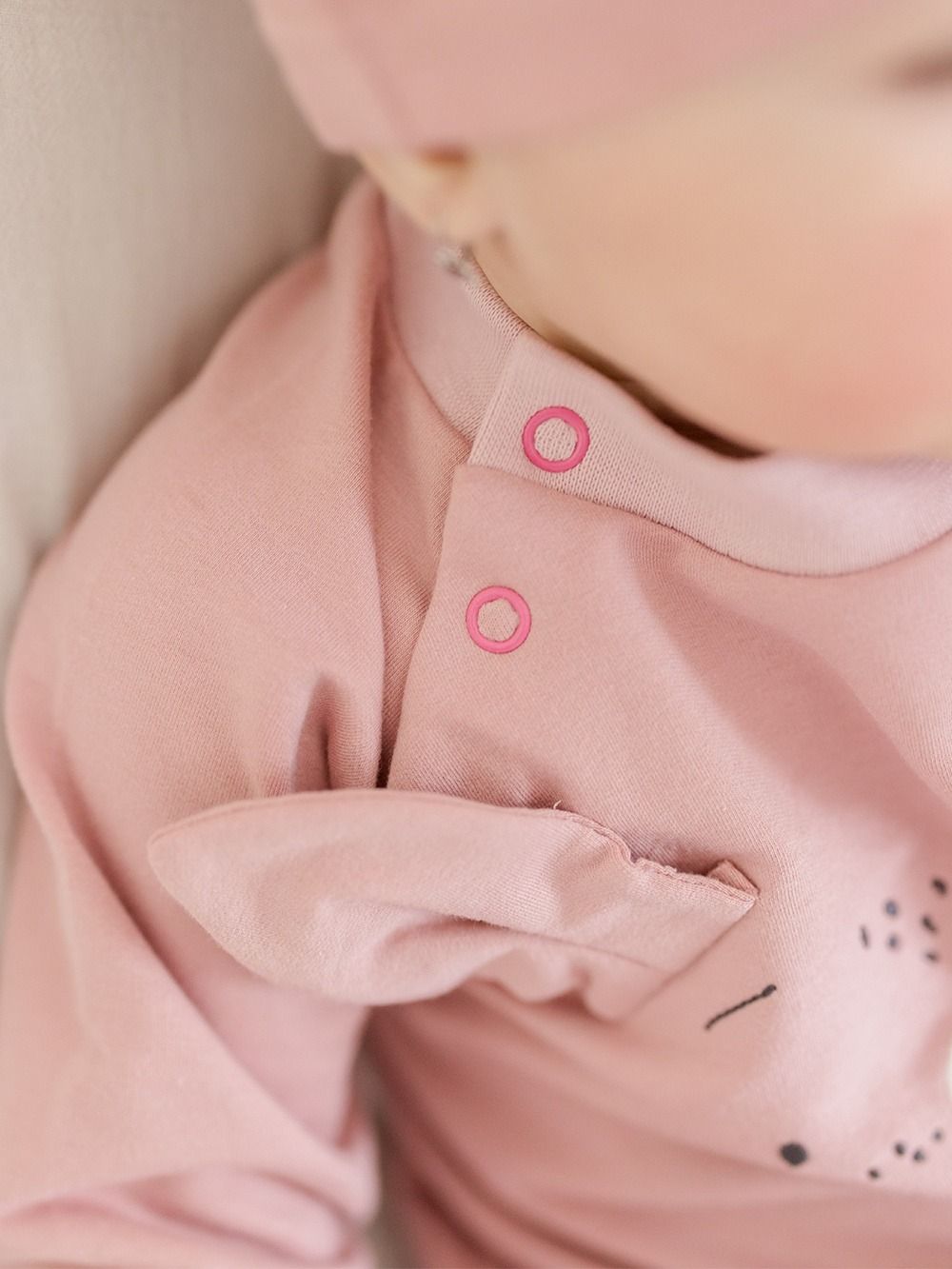 Komadići imaju udobne patente koji sprječavaju prodiranje hladnoće u bebino tijelo i migoljenje. Možete ga pronaći u dvije boje – bež i roza.
