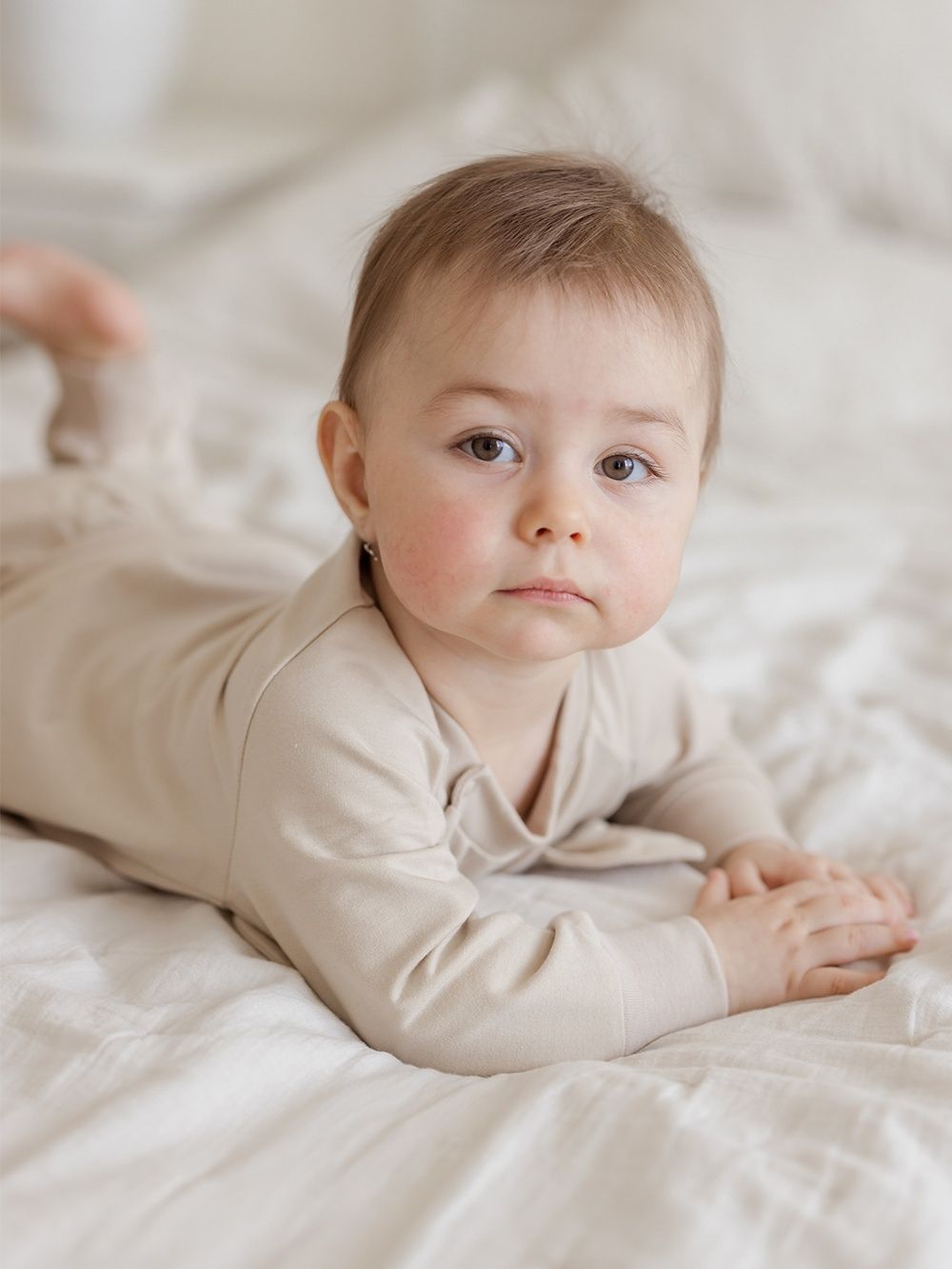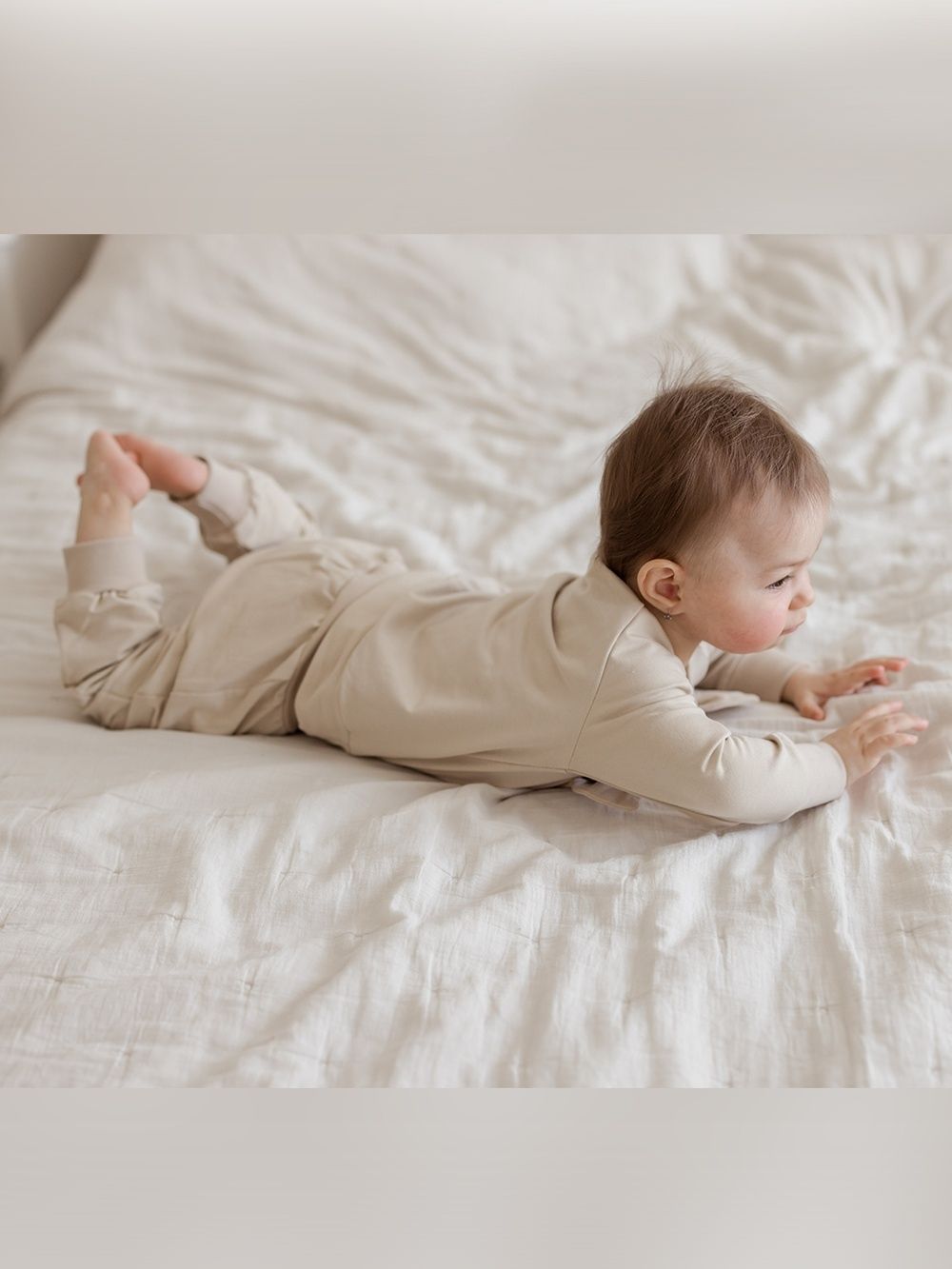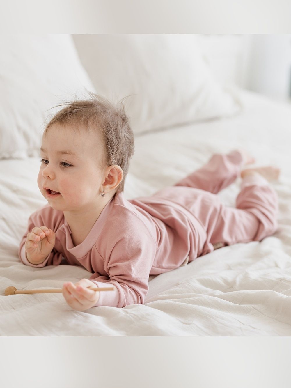 Komadići imaju udobne patente koji sprječavaju prodiranje hladnoće u bebino tijelo i migoljenje. Možete ga pronaći u dvije boje – bež i roza.