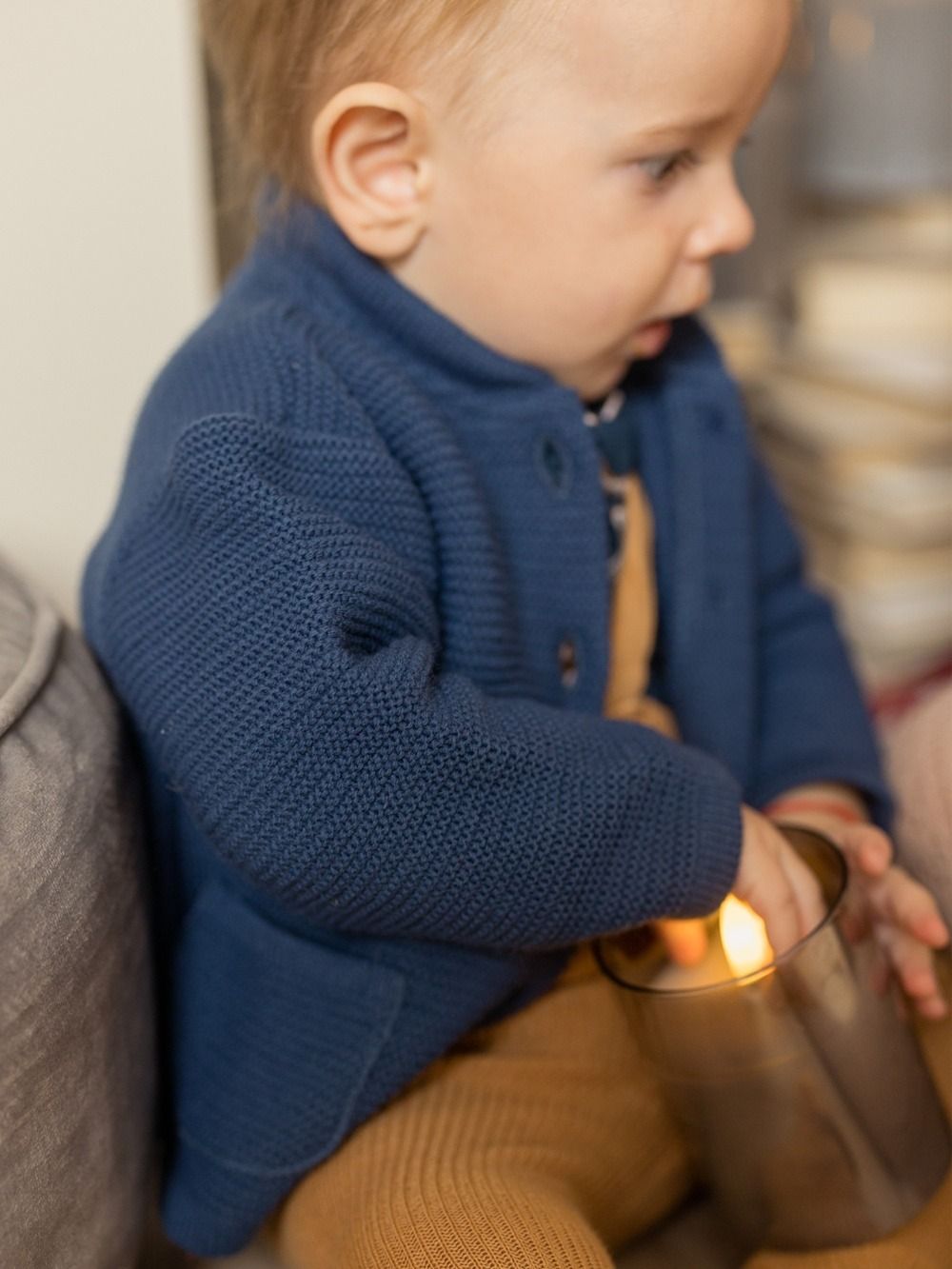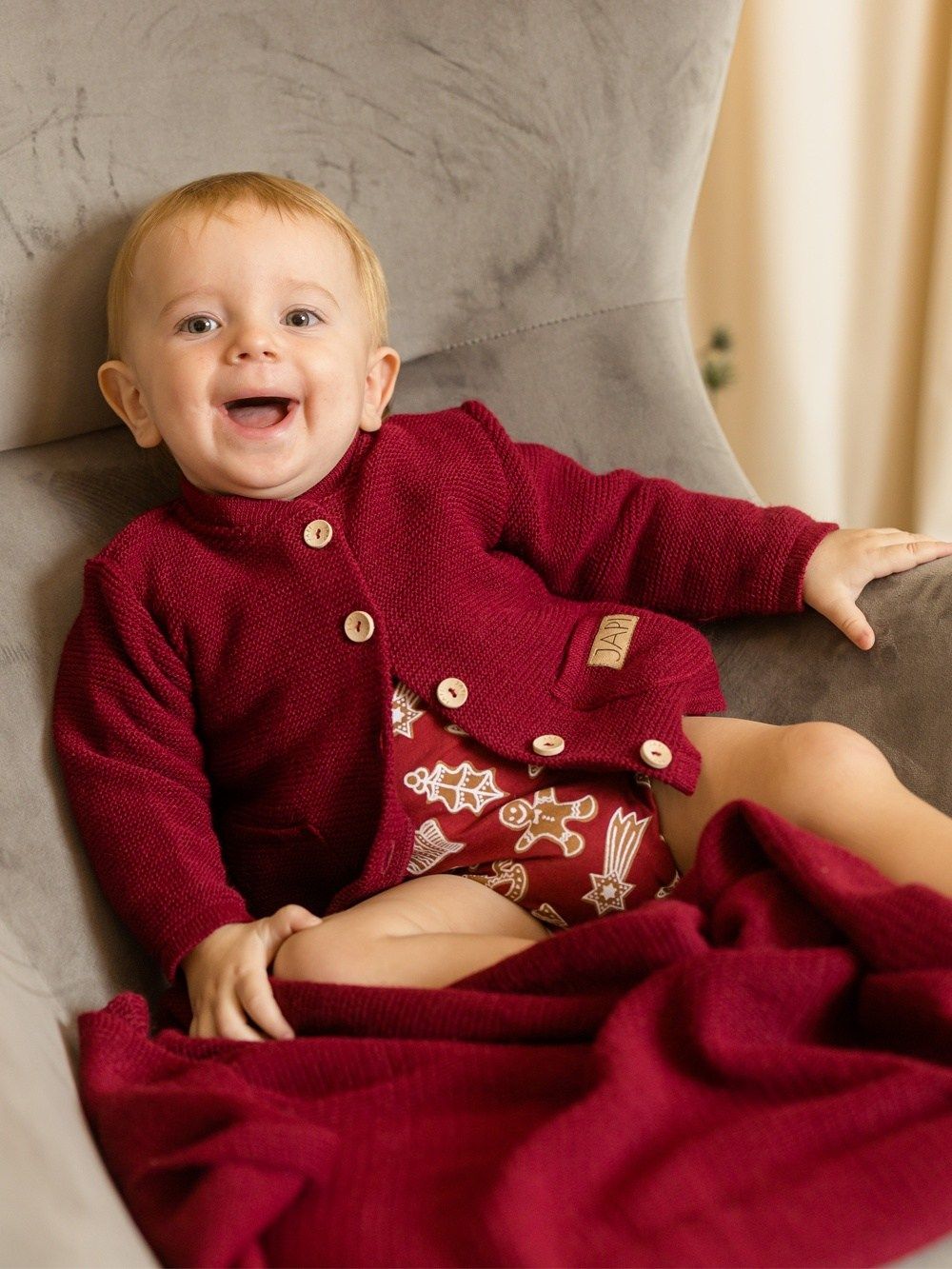 Ovaj džemper je koristan za proljeće i jesen i kao gornji sloj odjeće. Zimi ispod kaputa, bunde ili prsluka. Džemperić je u ovoj kolekciji dostupan u modroj i bordo boji. Ima zakopčavanje na drvene gumbove te je pogodan u kombinaciji s odjećom iz iste kolekcije. Džemperić ima stilske prednje džepove za razne dječje sitnice.