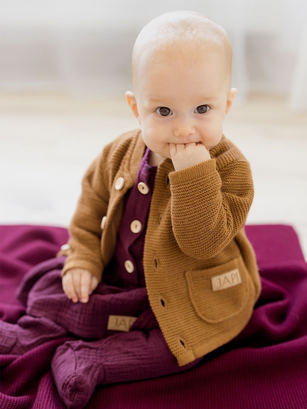 Džemper za bebe PURE kolekciju u boji i stilu nadopunjuje džemper za bebe. Prekrasne zemljane boje, drveni gumbi, udoban dizajn i praktični džepovi čine ga pratiteljem u hladnijim danima. Pogodan je za ležernu odjeću i kao dio svečanog „outfita“ mališana. Neka otkrivaju svijet i po hladnijem vremenu. Za veću djecu dostupni su veći dječji brojevi.