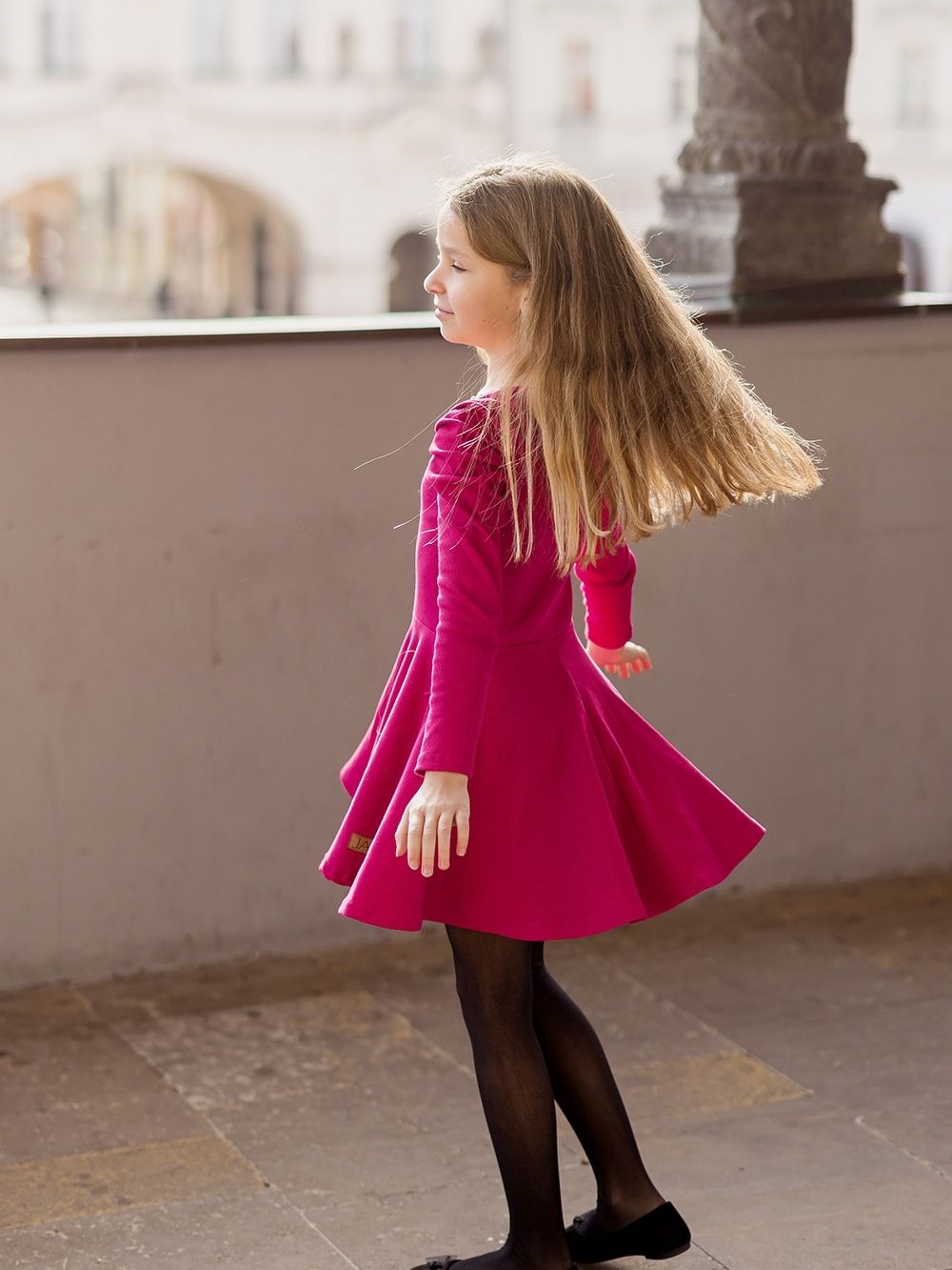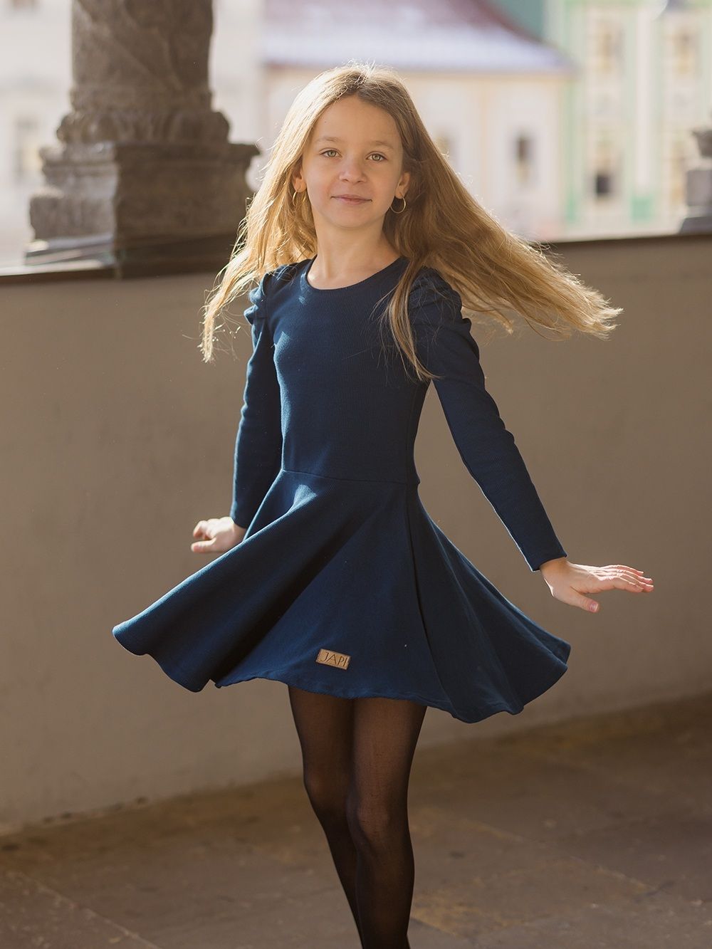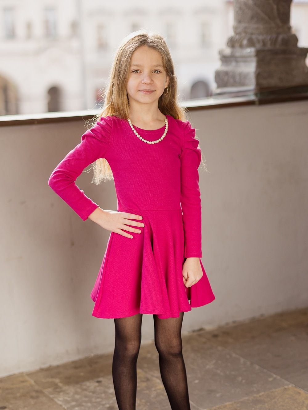 Djevojačka haljina sa dugim rukavima Lijepe haljine za djevojke plisiranih rukava. Rebasti materijal i udoban kroj. Zgodne u školu i na nastup, obiteljsku proslavu i fotografiranje. Ako imate kod kuće mladu damu, koja voli haljinu, ova joj ne smije nedostajati. Pogodno za zimu i za prijelazna razdoblja. Nosite džemper, kožnu ili traper jaknu. Traktori ili tenisice. U njima će biti zvijezda. Naša velika manekenka nosi haljinu veličine 158. Visoka je 155 cm i obično nosi veličinu XS.