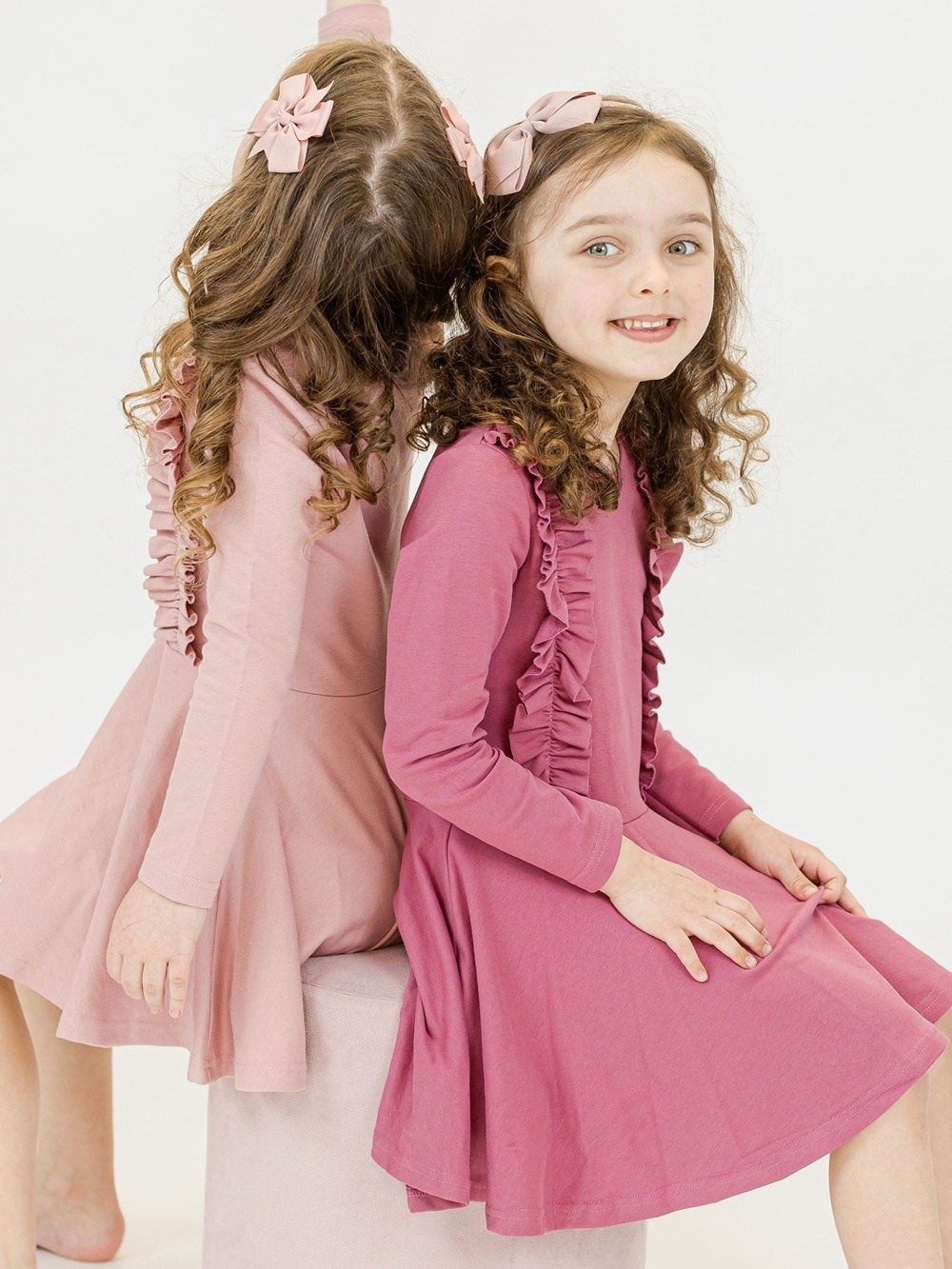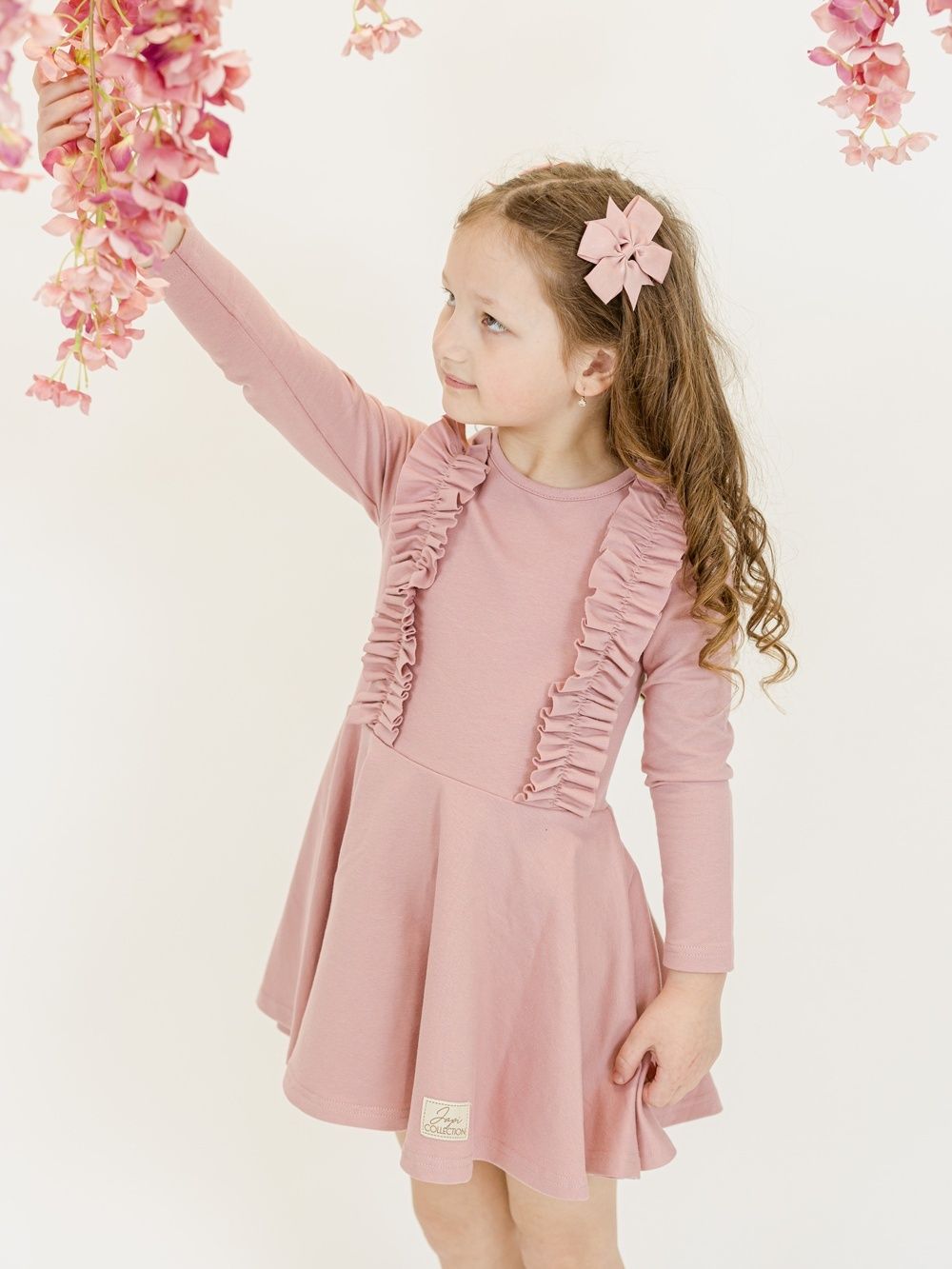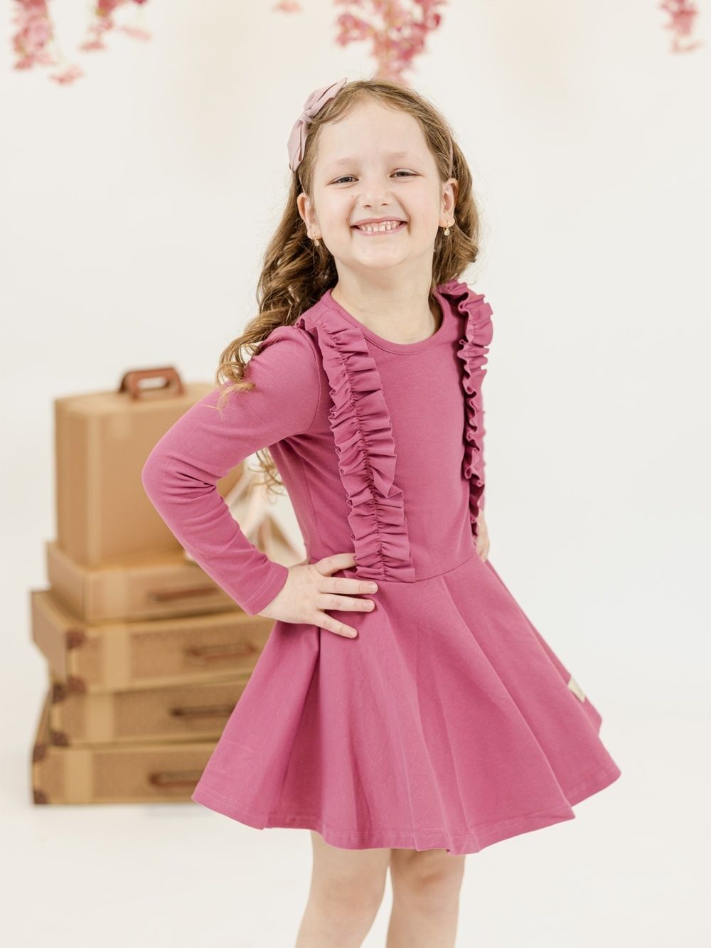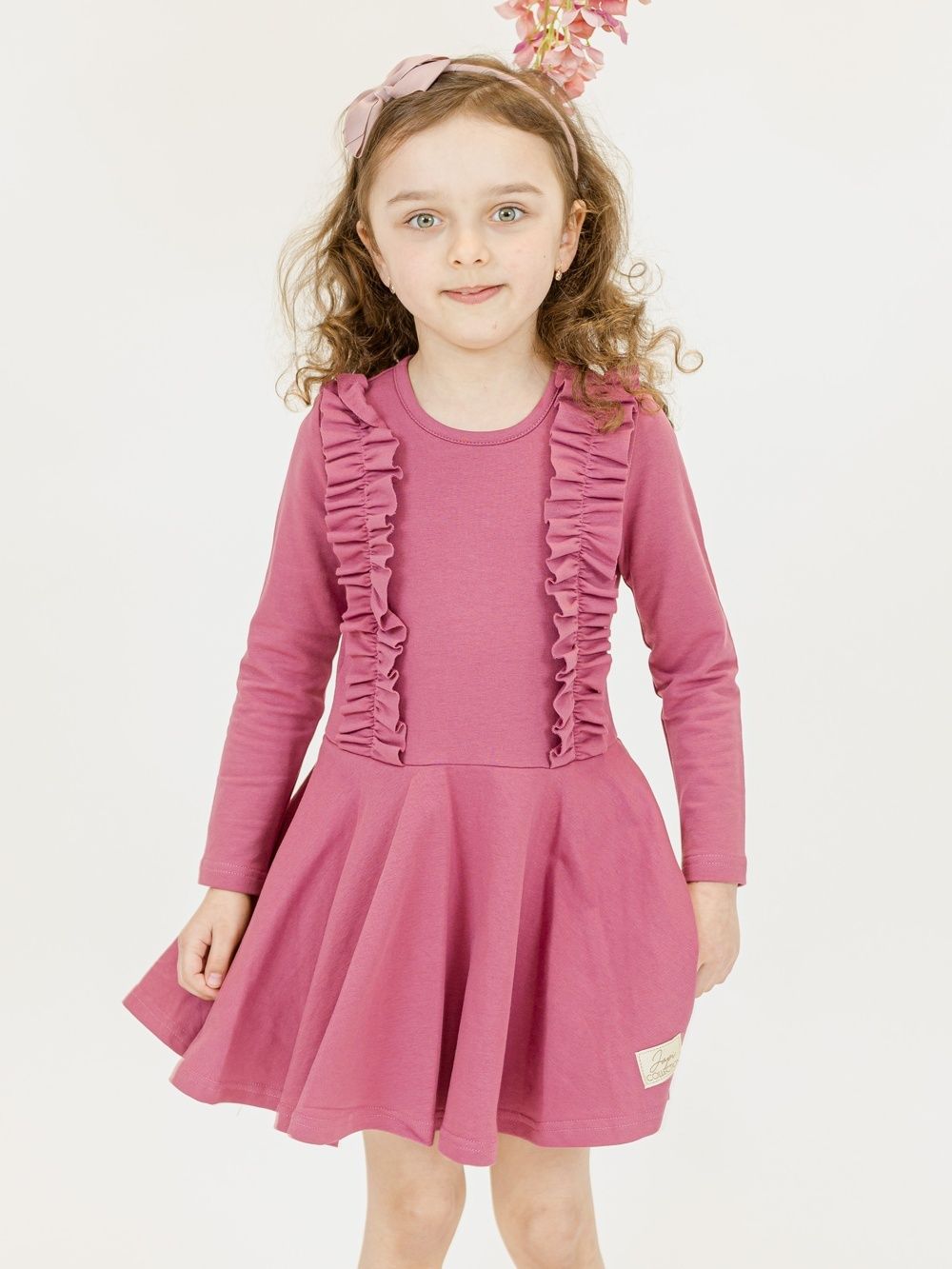 Haljina za djevojčice s dugim rukavima i modernim naborima.