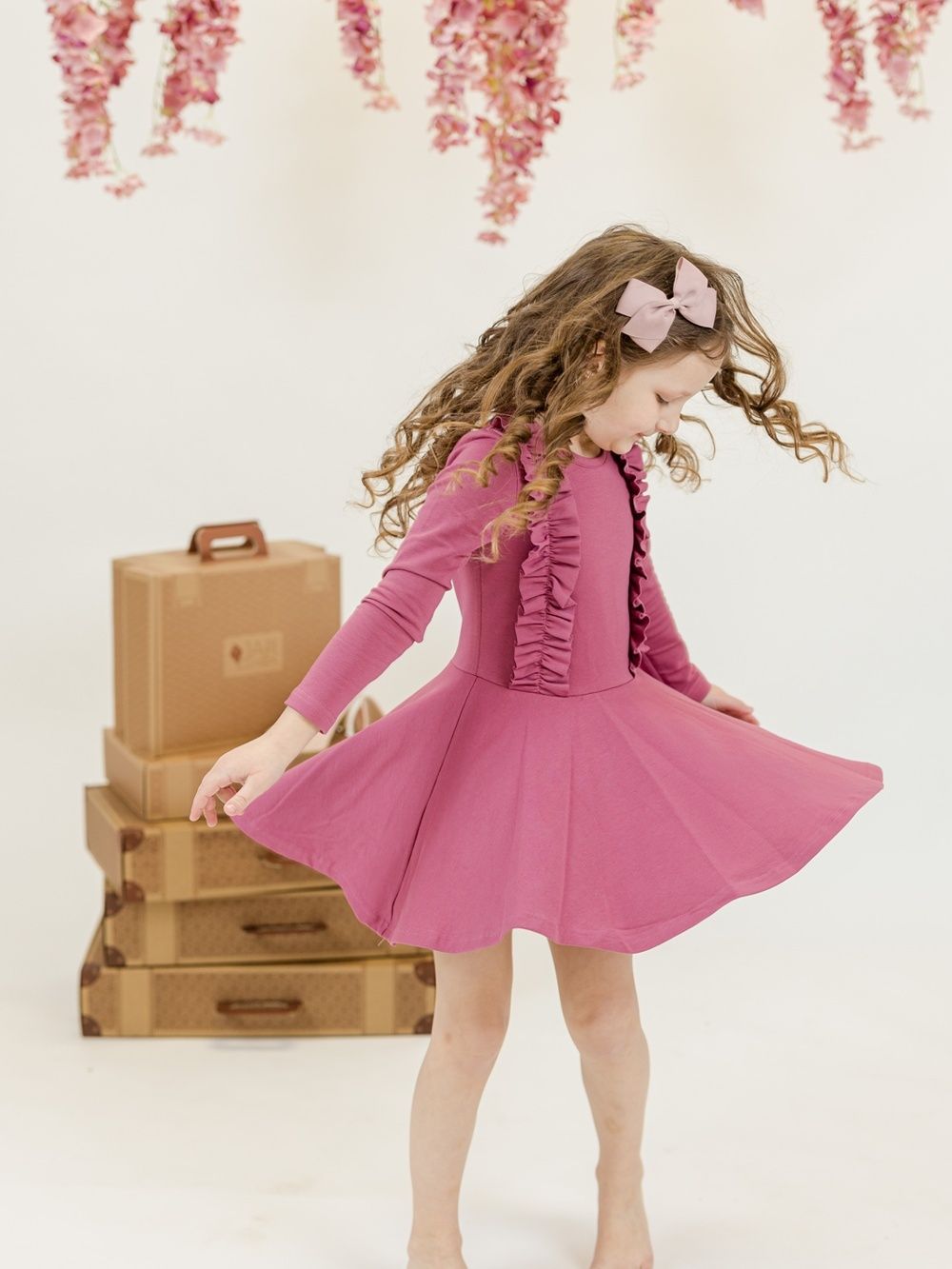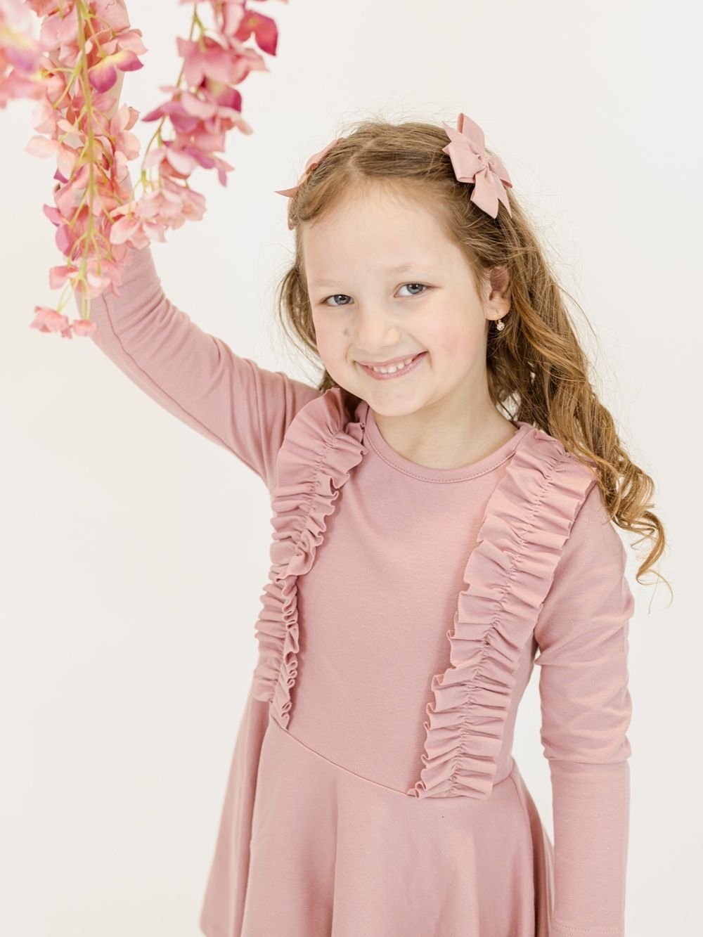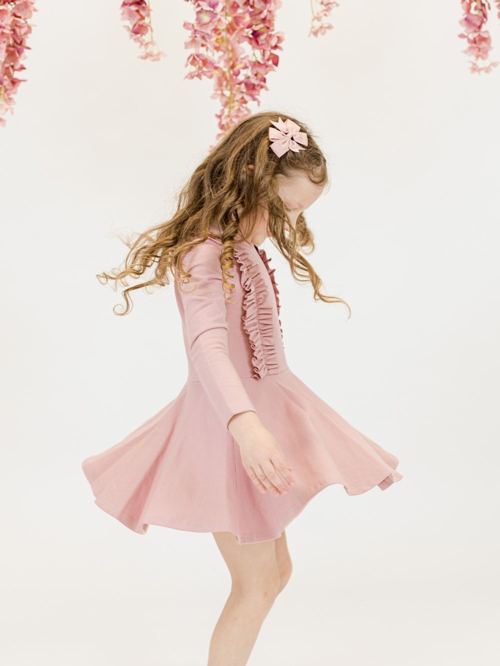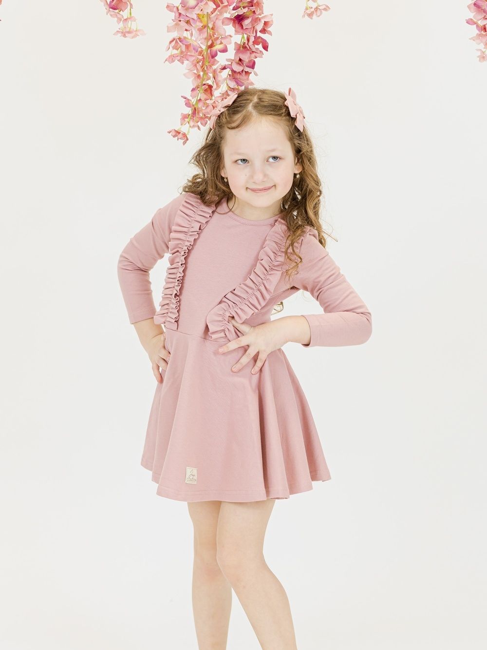 Haljina za djevojčice s dugim rukavima i modernim naborima.