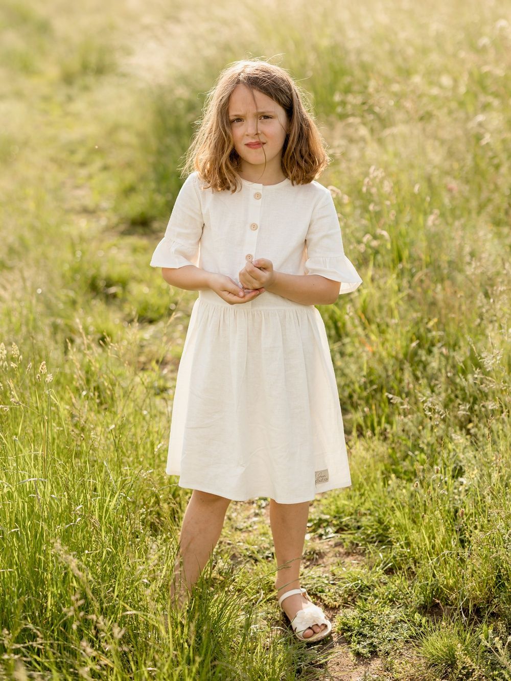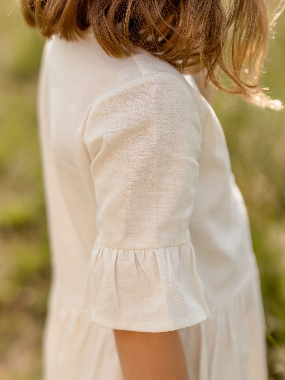 Haljinu smo izradili od mješavine lana i viskoze. 100% prirodan materijal, cijenit ćete njegova svojstva. Viskoza daje lanu lakoću i mekoću. Lan je prozračan i ugodan.