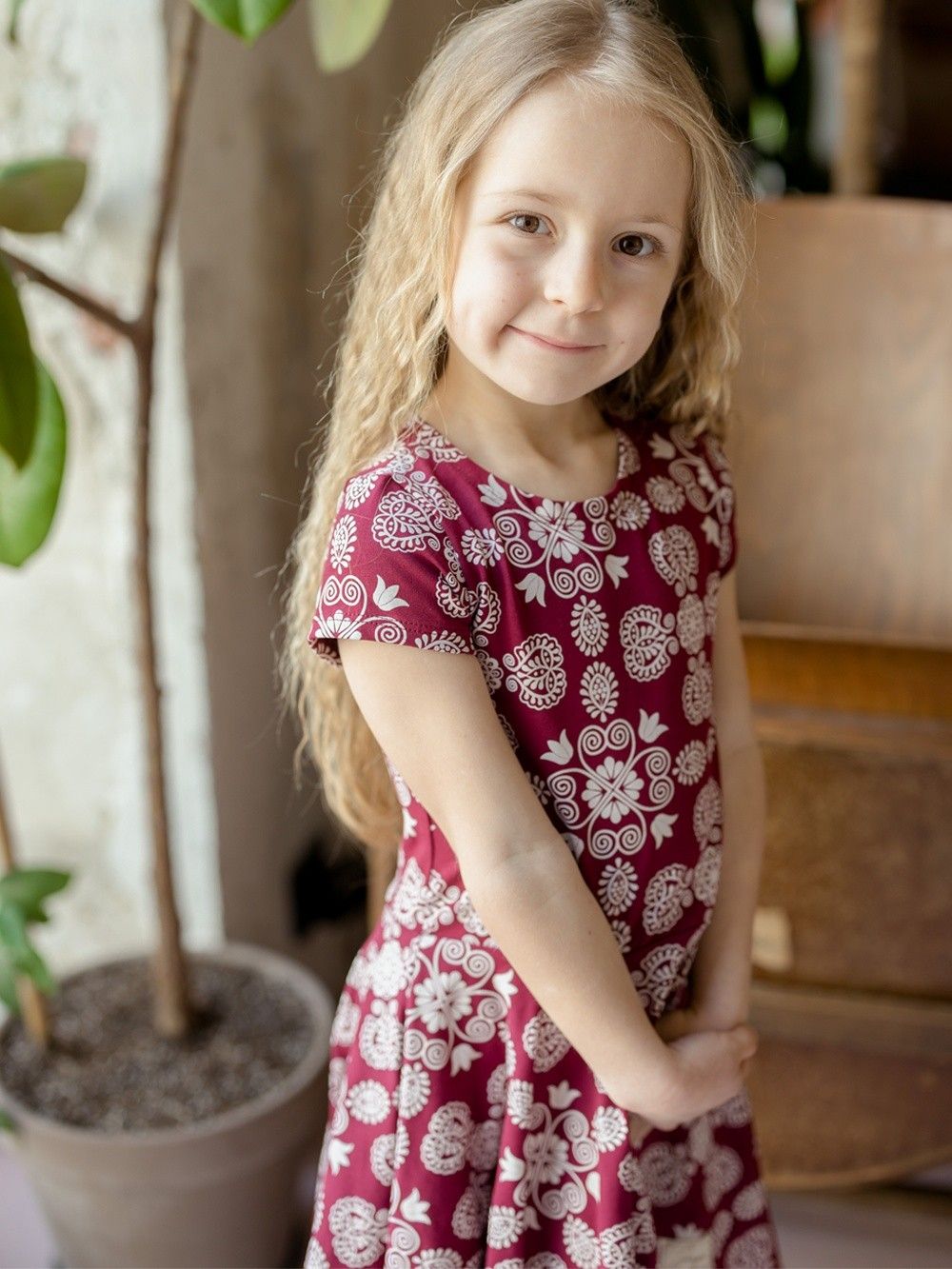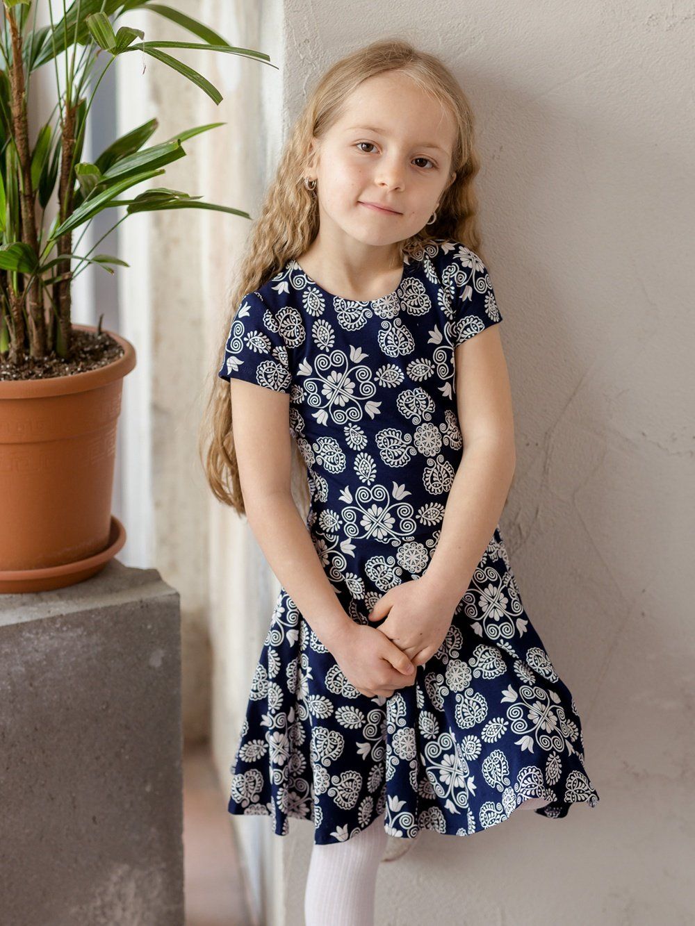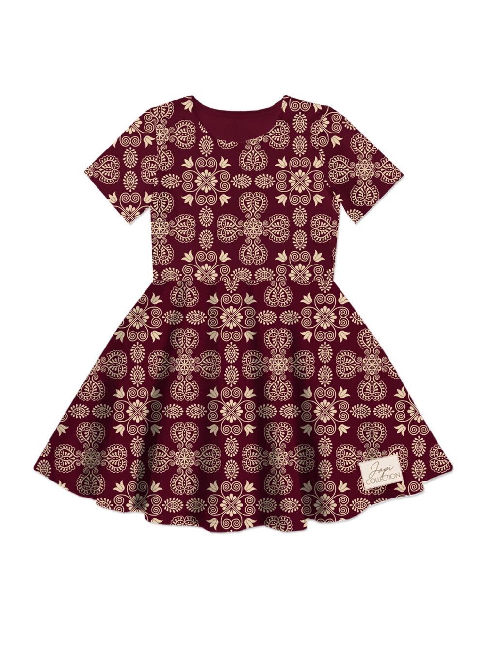 Udobna djevojačka haljina kratkih rukava sa narodnim uzorkom.