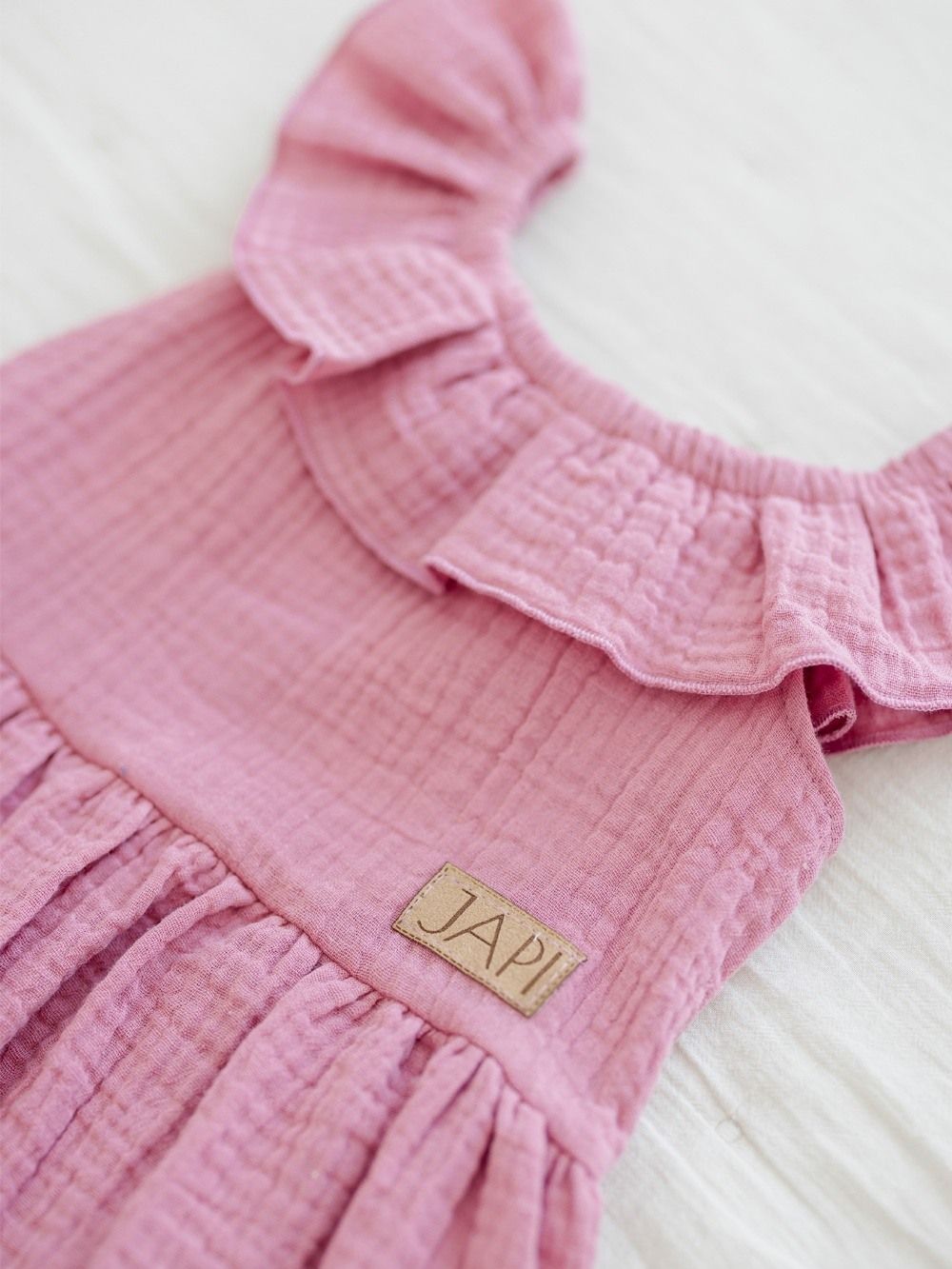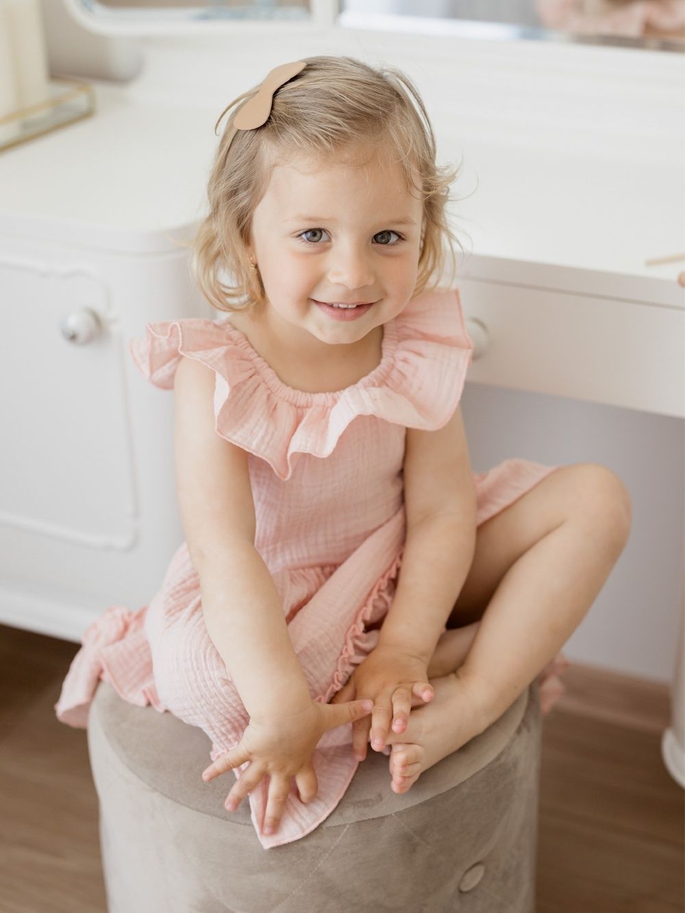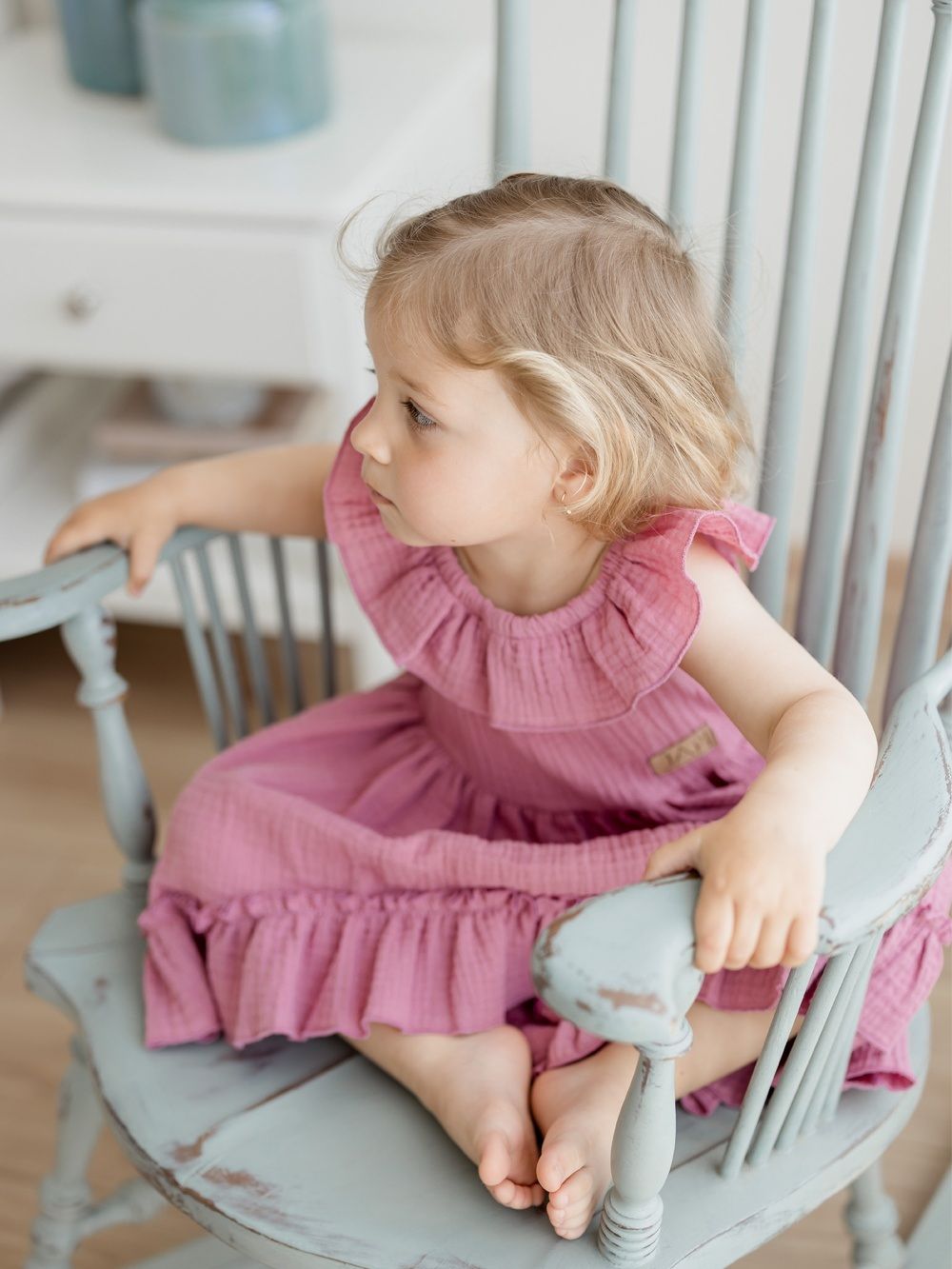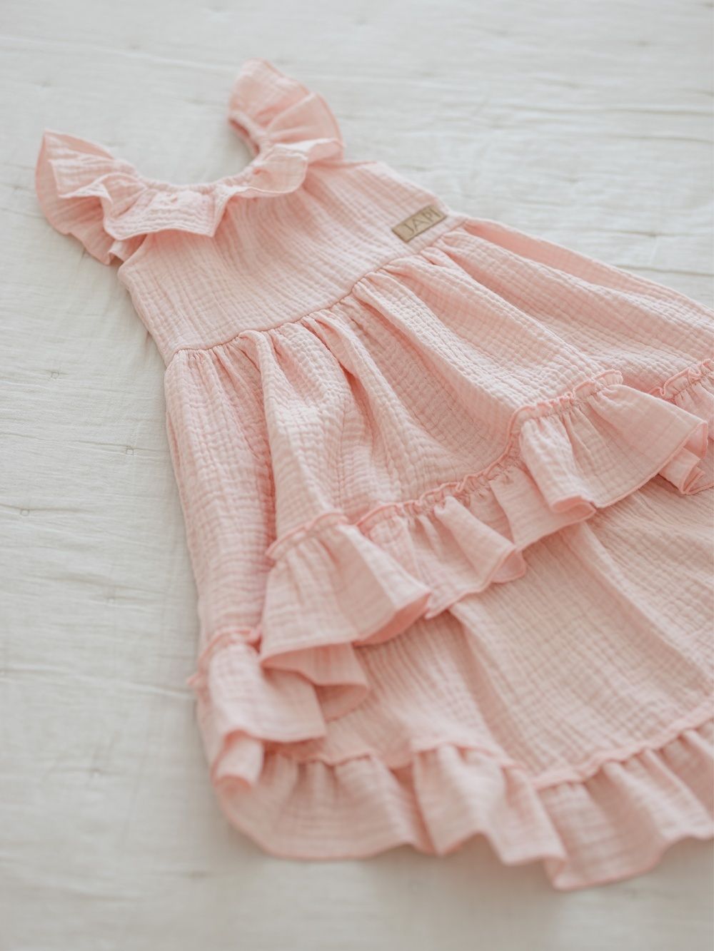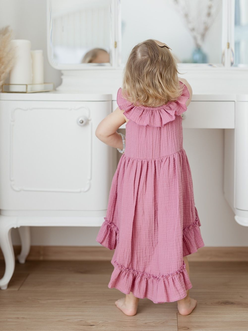 Lagani muslin je pogodan za ljeto a djevojčicama će na povjetarcu lijepo lepršati. Na izbor imate dvije krasne boje. Dostupna u veličinama od 92 do 140. Ova haljina je pogodna za bilo kakvu ljetnu proslavu ali i svadbu ili neku drugu obiteljsku proslavu. Djevojčice će jamačno u njima zajsati i na godišnjem odmoru, gdje će ih moći potpuno koristiti.
