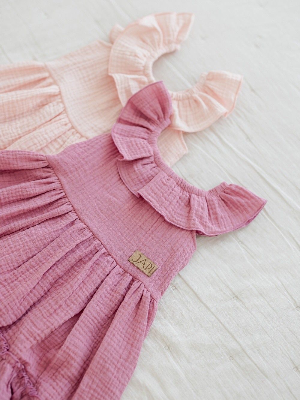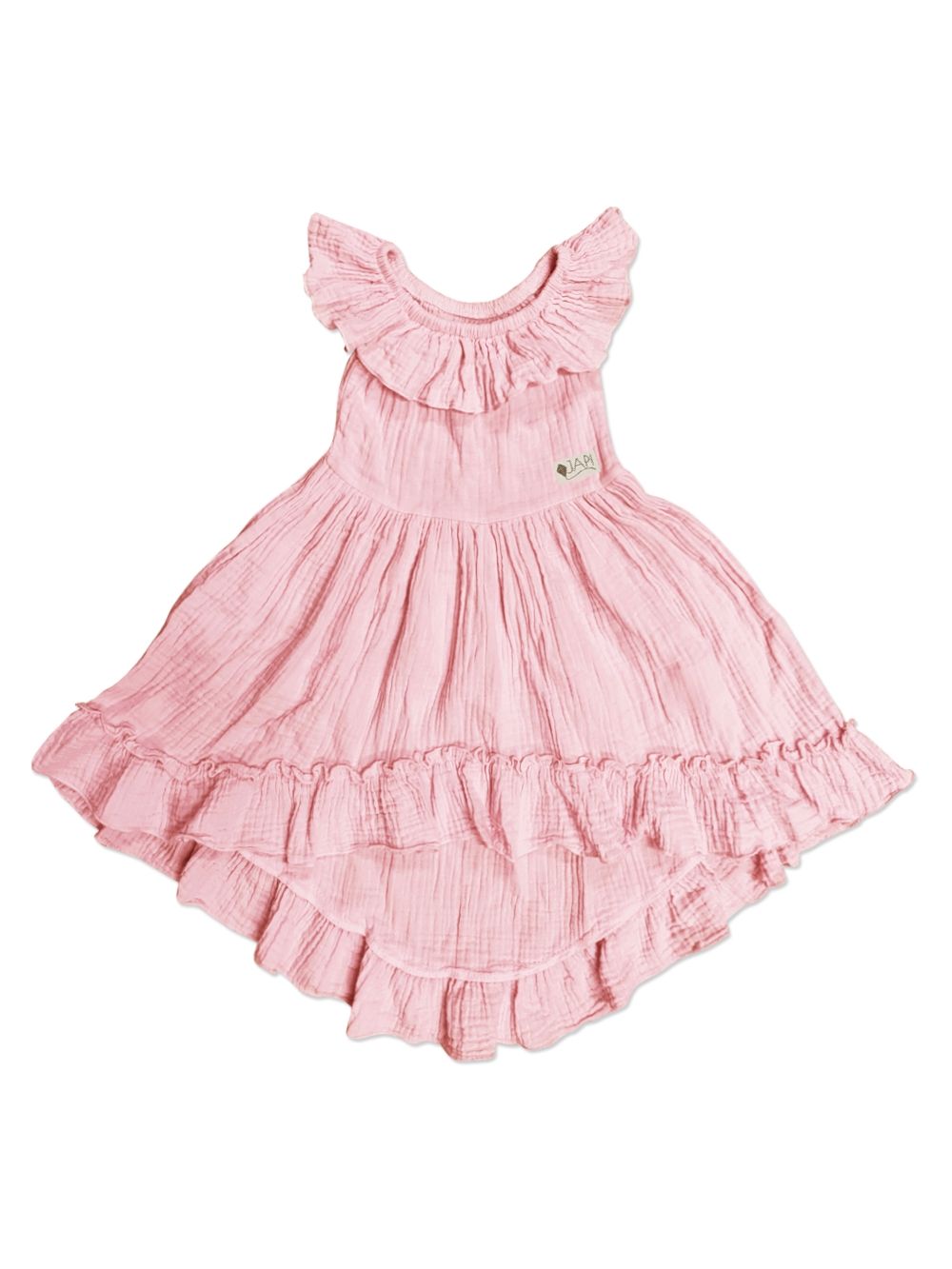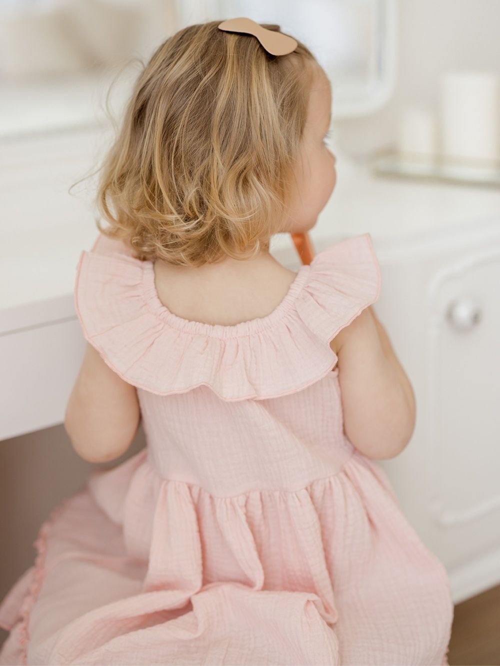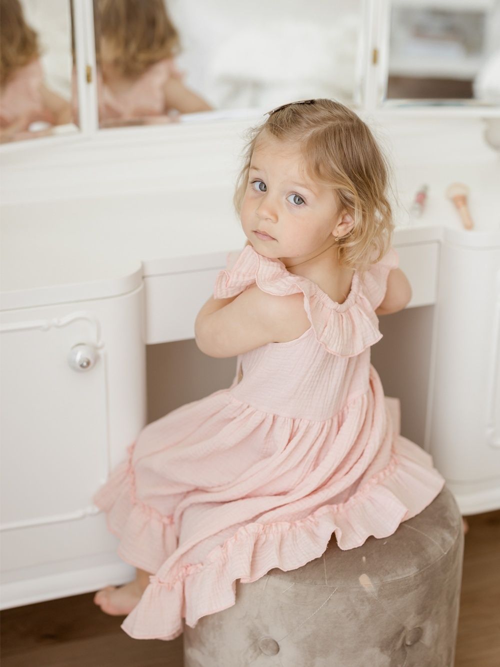 Lagani muslin je pogodan za ljeto a djevojčicama će na povjetarcu lijepo lepršati. Na izbor imate dvije krasne boje. Dostupna u veličinama od 92 do 140. Ova haljina je pogodna za bilo kakvu ljetnu proslavu ali i svadbu ili neku drugu obiteljsku proslavu. Djevojčice će jamačno u njima zajsati i na godišnjem odmoru, gdje će ih moći potpuno koristiti.