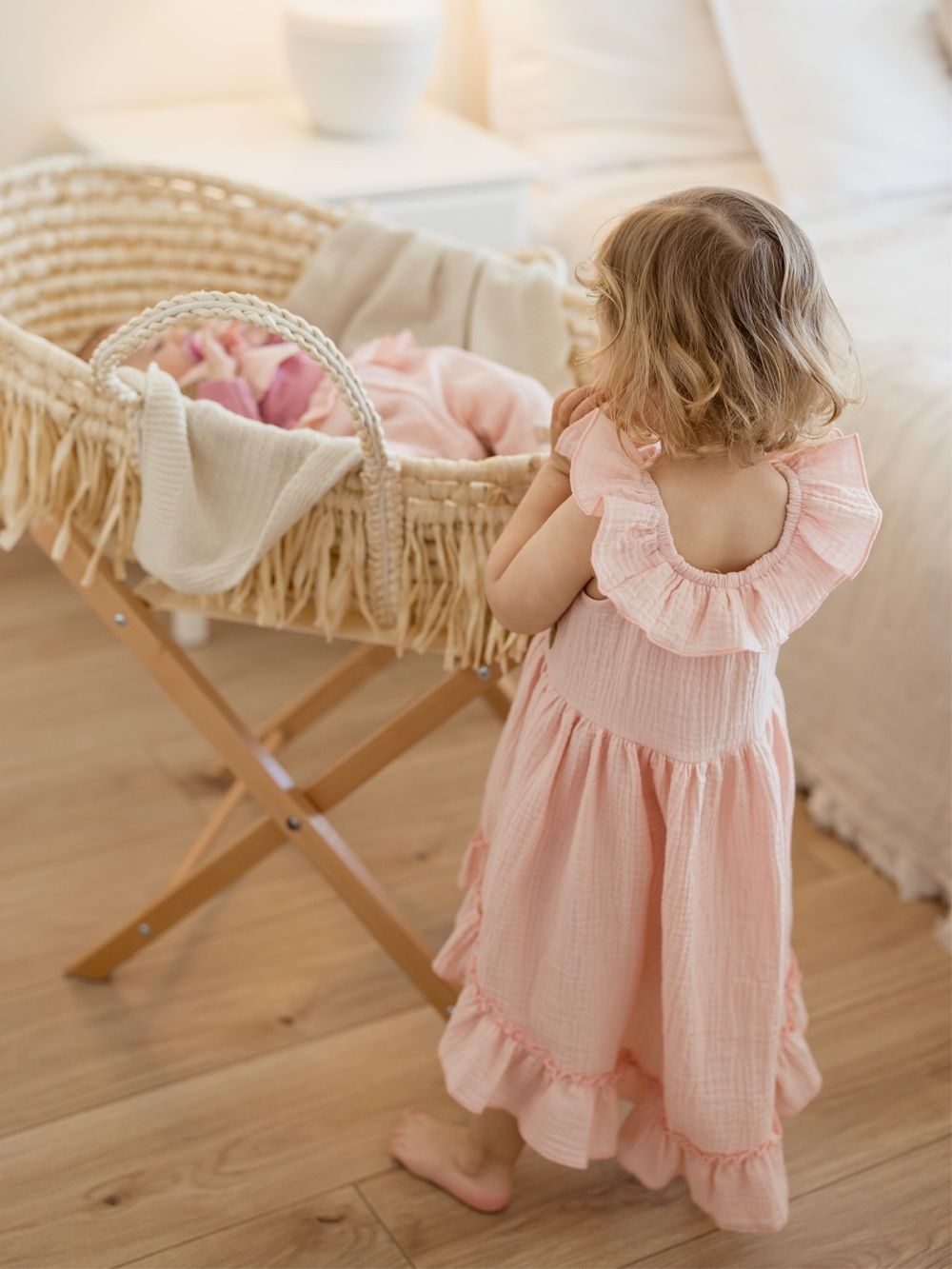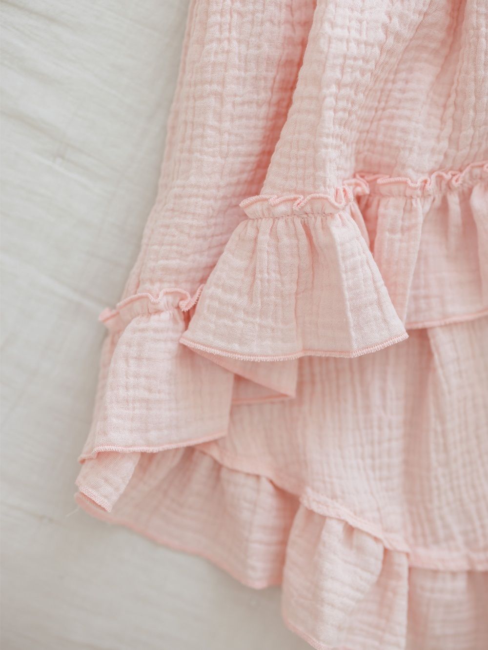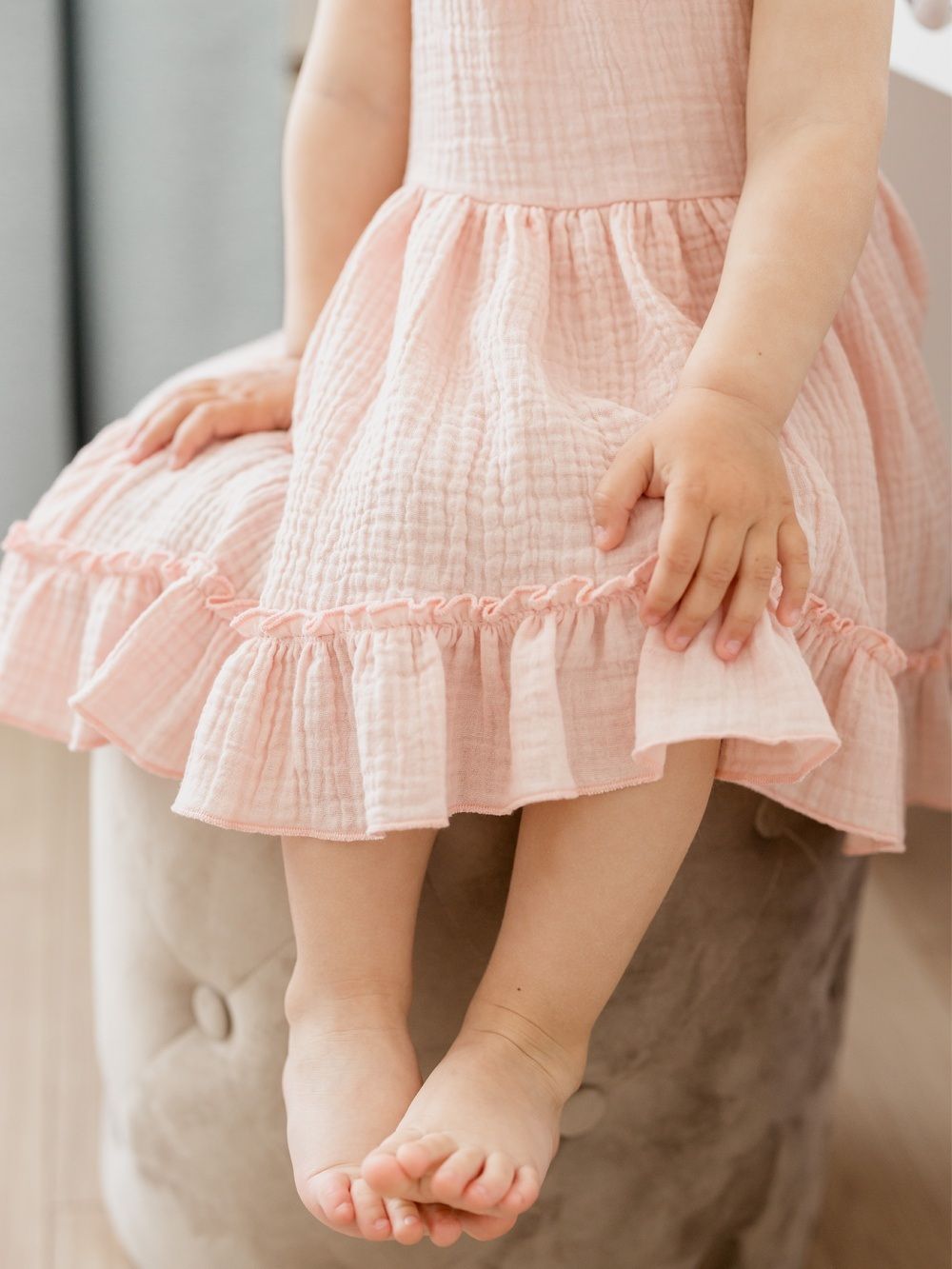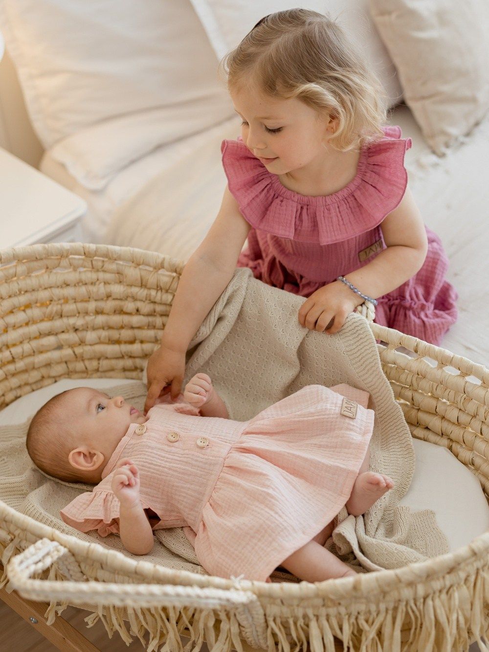 Lagani muslin je pogodan za ljeto a djevojčicama će na povjetarcu lijepo lepršati. Na izbor imate dvije krasne boje. Dostupna u veličinama od 92 do 140. Ova haljina je pogodna za bilo kakvu ljetnu proslavu ali i svadbu ili neku drugu obiteljsku proslavu. Djevojčice će jamačno u njima zajsati i na godišnjem odmoru, gdje će ih moći potpuno koristiti.