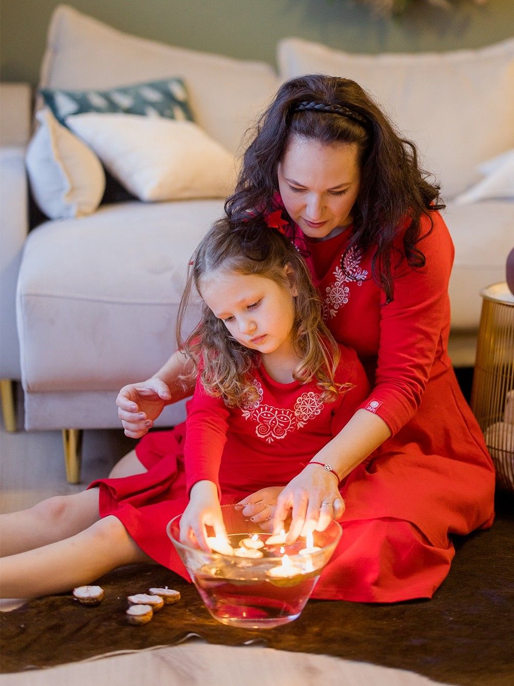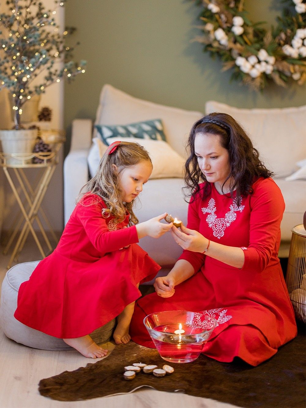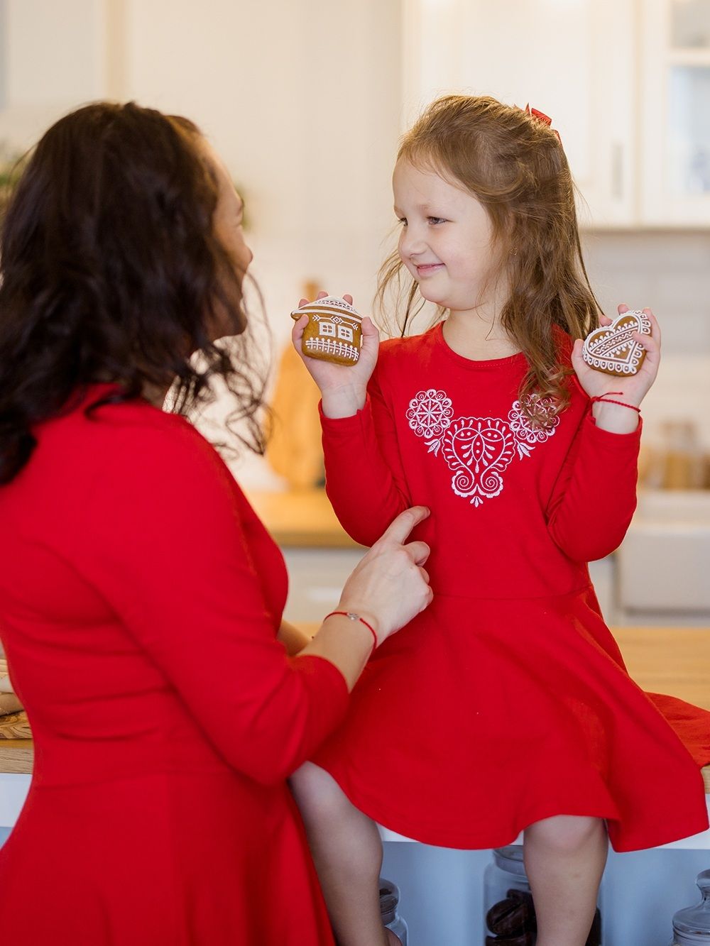 Prekrasno za božićno fotografiranje i svečenu večeru. S kćeri se mogu uskladiti čak i majke za koje smo pripremili ženske haljine s vezom.