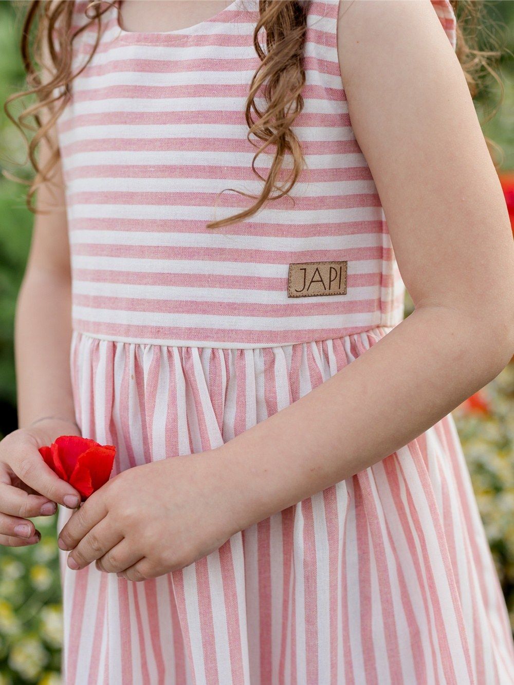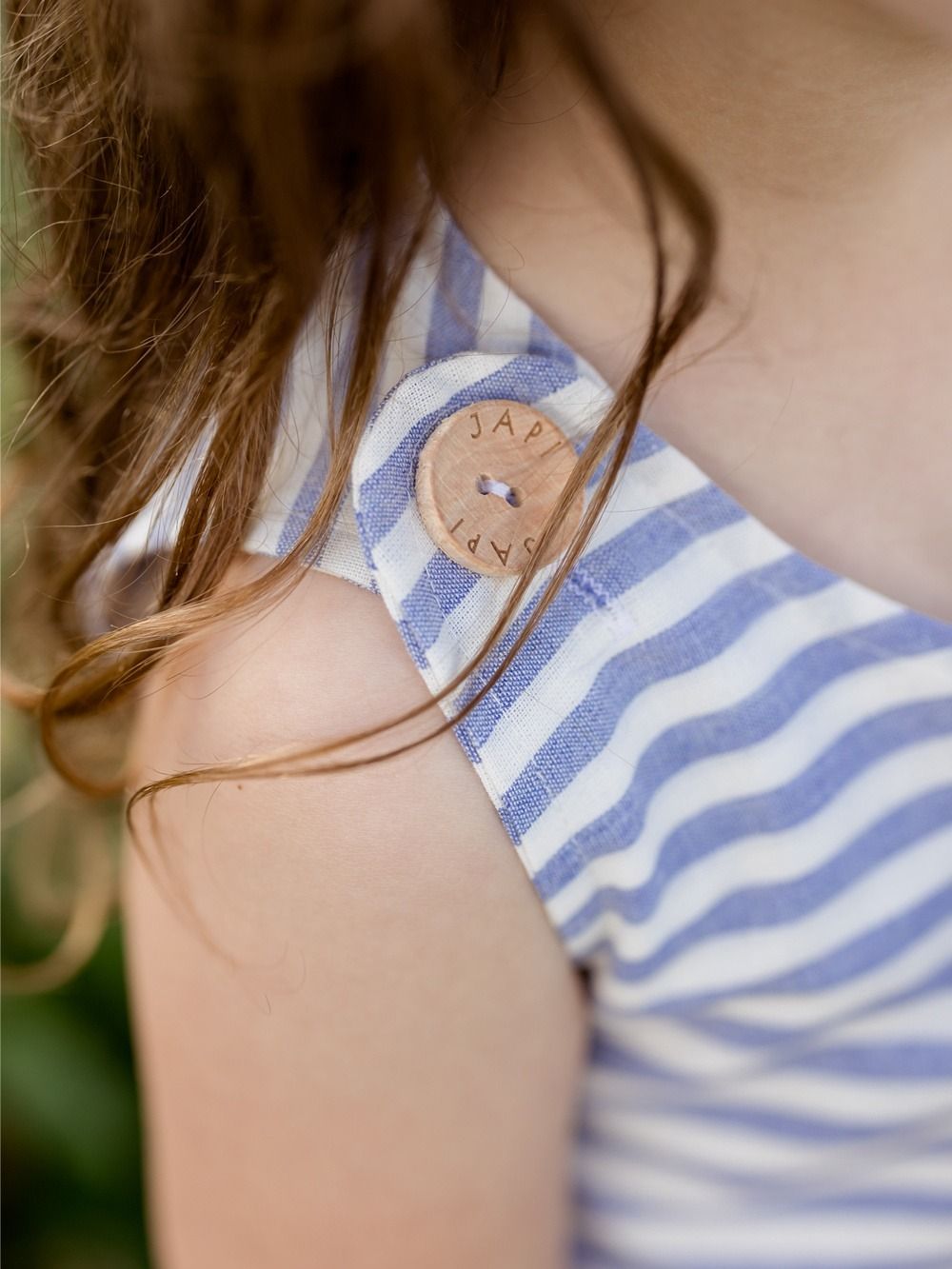 Plave i crvene pruge na bijeloj pozadini savršene su za ljeto. Lagani pamučni materijal osigurat će udobnost u toplim ljetnim danima. Prozračan je i ugodan za dječju kožu.
