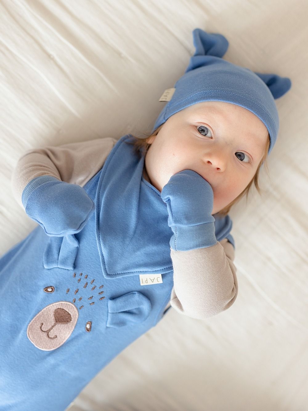 Ova kapa nadopunjuje cijelu našu kolekciju, pa zahvaljujući njoj svoju bebu možete uskladiti od glave do pete. Vrlo je udobnog elastičnog kroja te se lijepo prilagođava bebinoj glavici. Slatke uši učinit će vaše potomke ljupkim medvjedom.