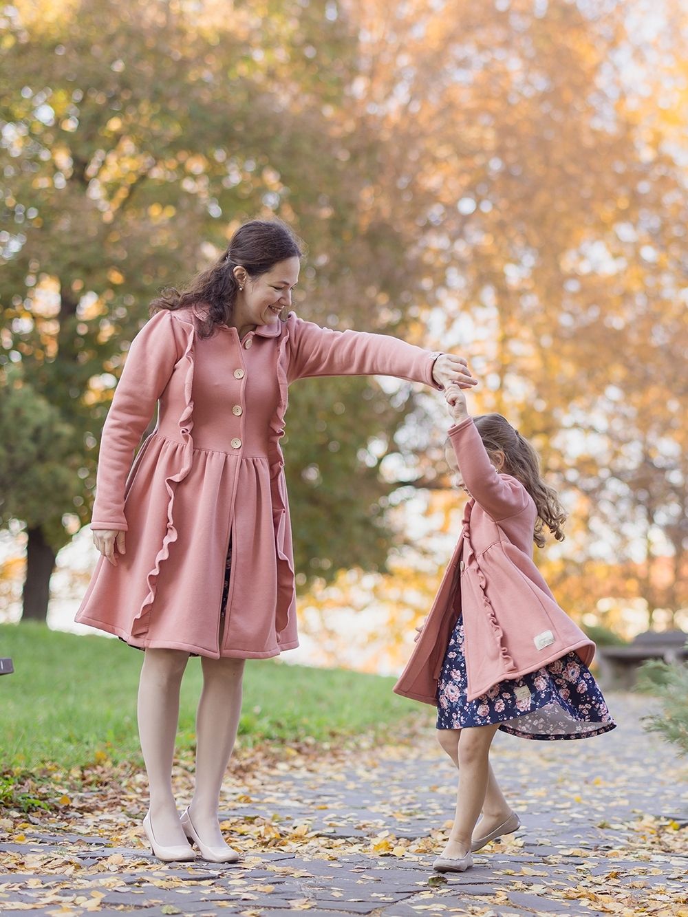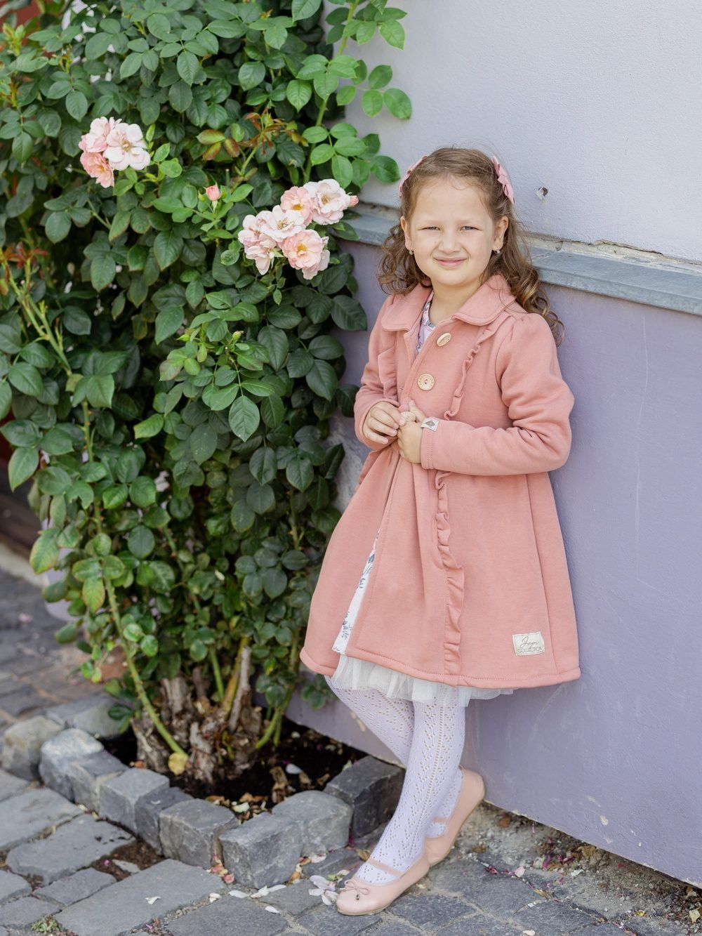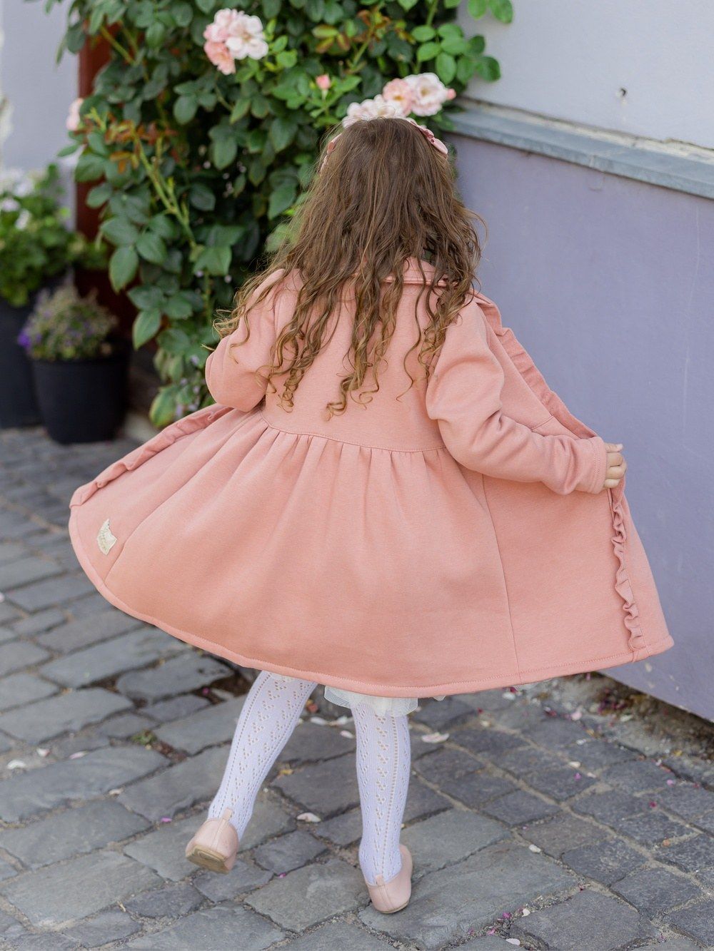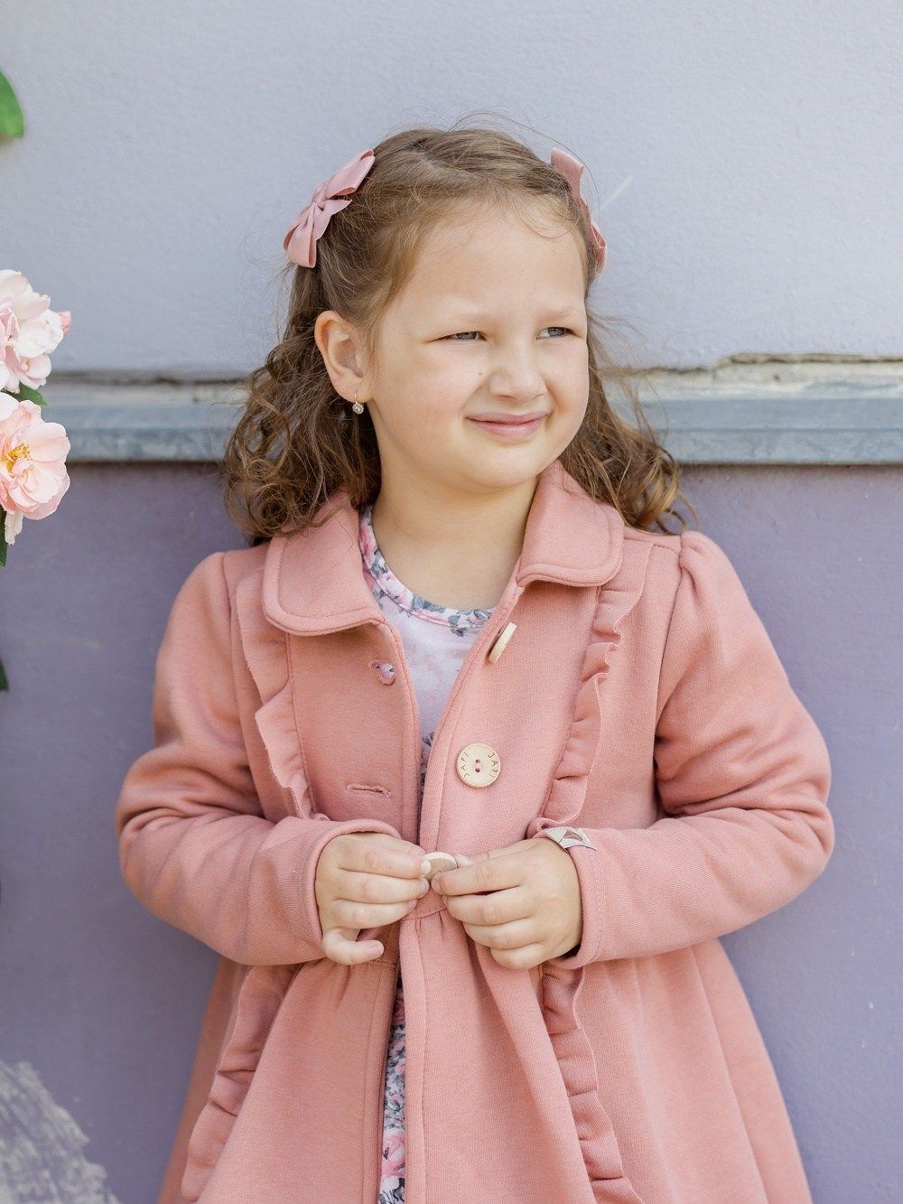 Djevojački kaput u jednoj boji Kaput za djevojke u dvije boje. Lijepa ružičasta ili tamnoplava. Koristit ćete ga u proljeće i jesen. Kaput je lijepog modernog kroja upotpunjenog volanima s prednje strane. Izrezan u struku i proširen prema dolje. Veliki drveni gumbi. Možete se uskladiti sa svojom kćeri, u ponudi nudimo i ženski kaput.