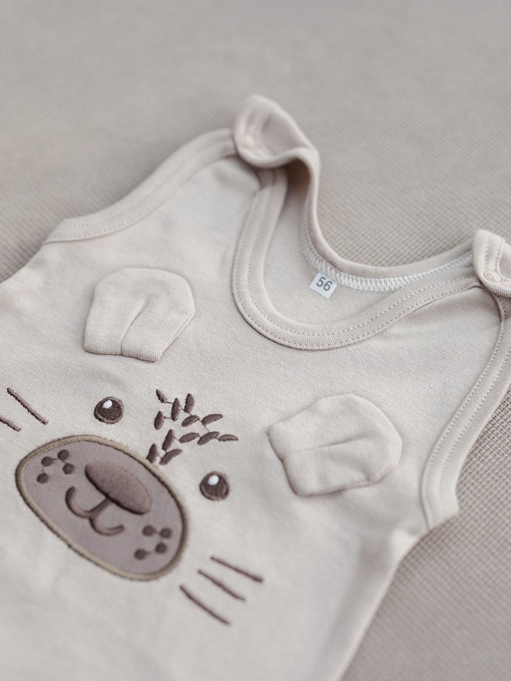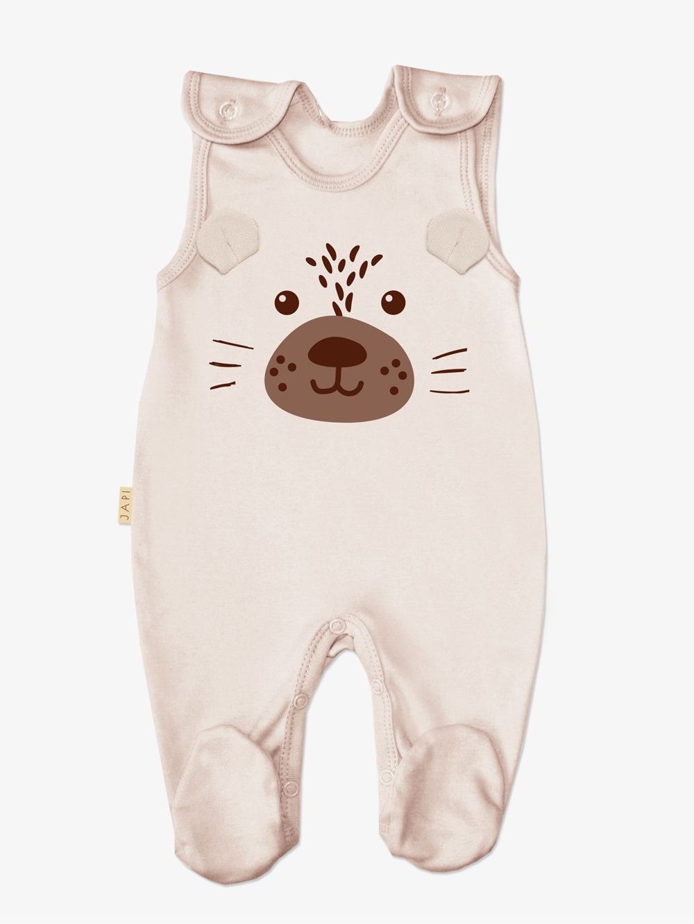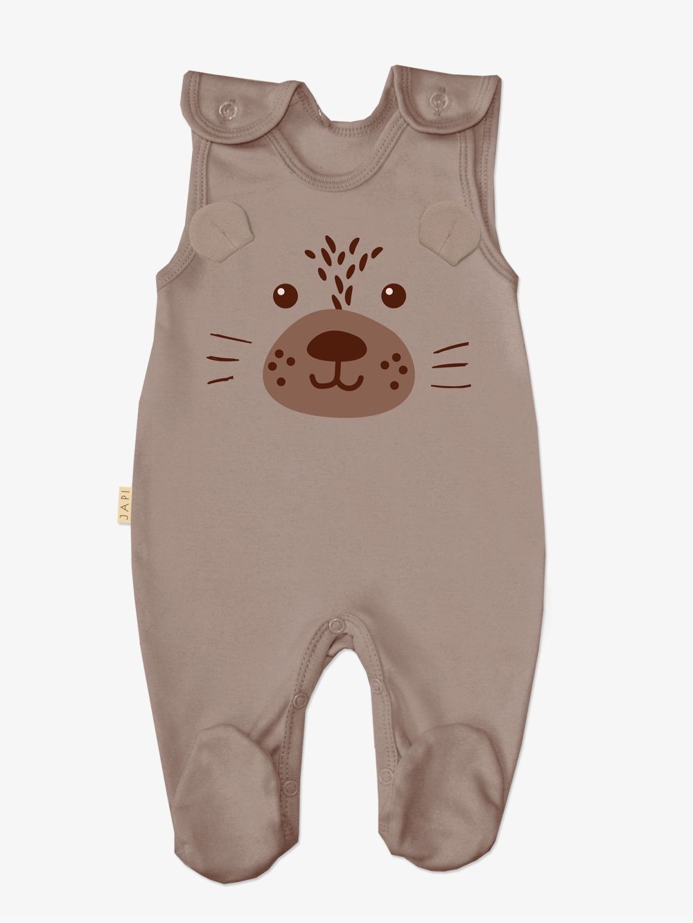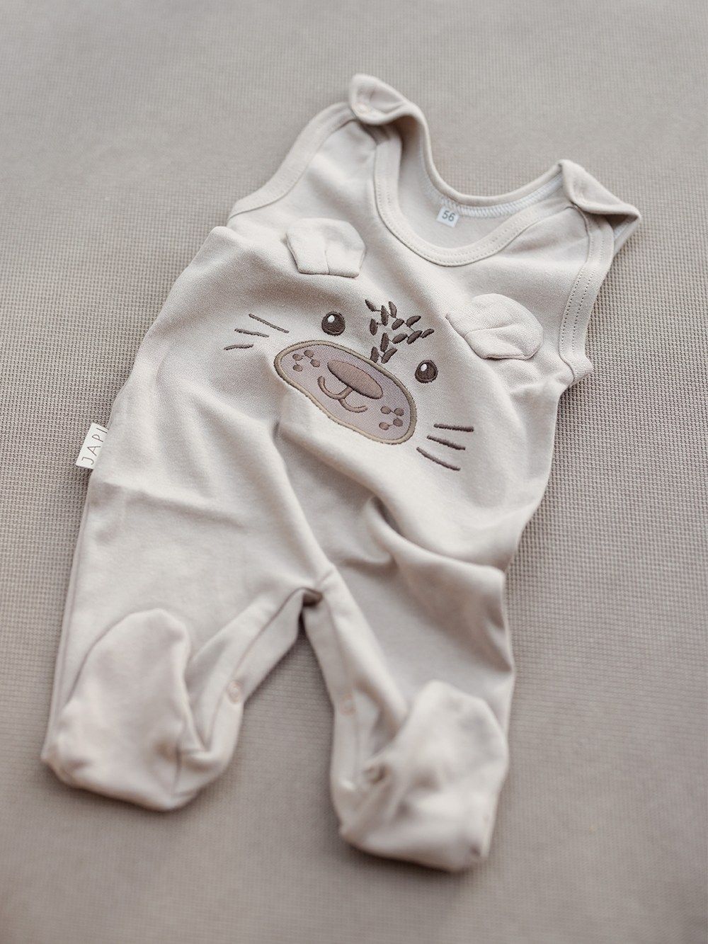 Kombinezoni za novorođenčad i dojenčad Praktičan komad za male bebe. Kombinezoni za dječake i djevojke, zajedno s licem risa ostrovida. Kvalitetna vez izgleda jako preslatko. Kombinezoni se zakopčavaju patentnim zatvaračima na ramenima i između nogu. U dvije zemljane boje. Certificiran kvalitetan materijal od 100% pamuka.