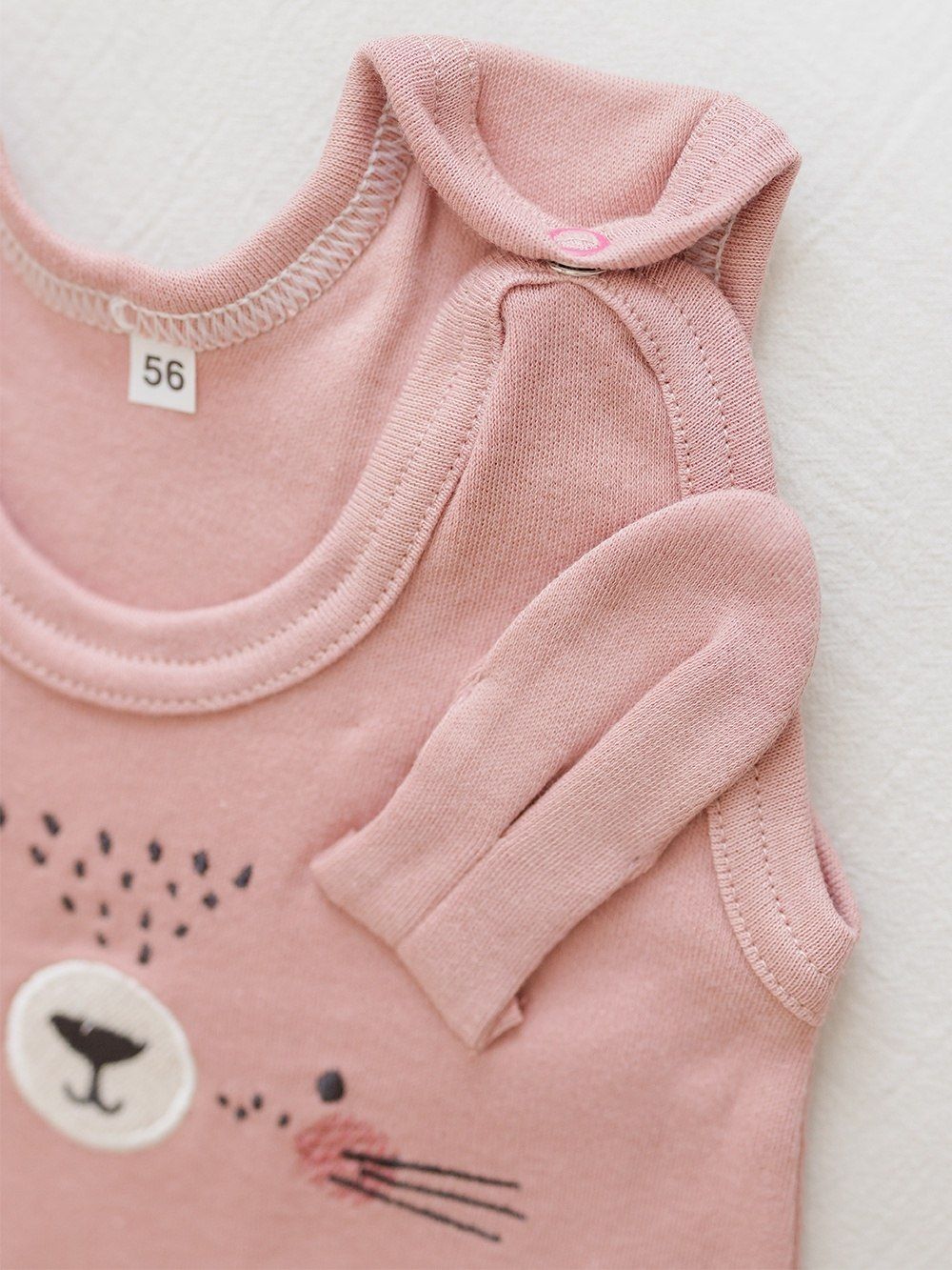 Roze i krem kombinezoni od 100% pamuka s certifikatom primjerene su za najmlađe. Kombinezoni su popularan komad odjeće za djecu. Naše kombinezoni dokazano udobno pristaju. Otvaraju se na ramenima i između nogu za ugodnije oblačenje i presvlačenje.