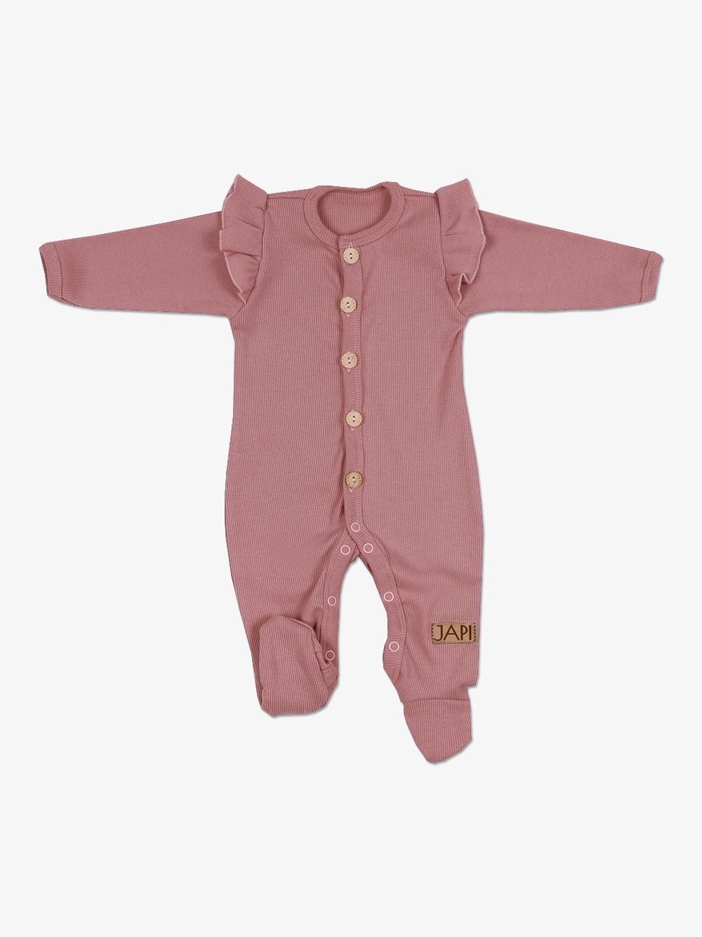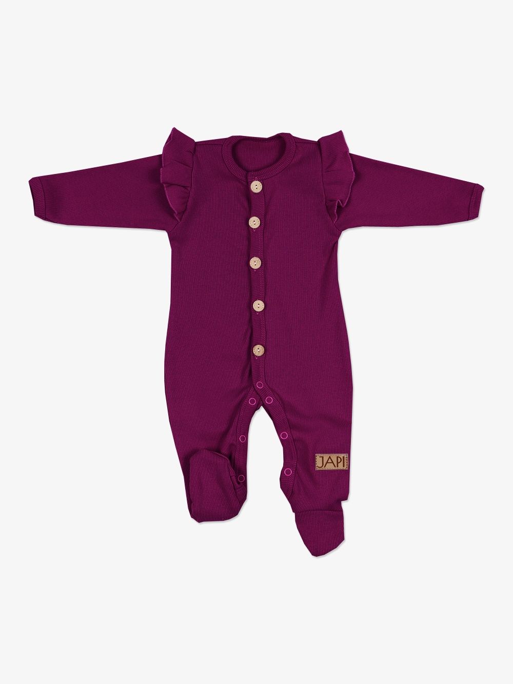 Dječji pamučni kombinezon u dvije boje - ružičastoj i ljubičastoj. Kombinezon ima udoban kroj a koristiti ćete ga kod bebe i za spavanje. Jednako je udoban kao dnevna odjeća a s ovim materijalom će Vam se posebno svidjeti. Rebrasti pamučni materijal je vrlo udoban i ugodan za dječju kožu. Proizveden je od 100% pamuka s certifikatom te je stoga pogodan i za novorođenčad.