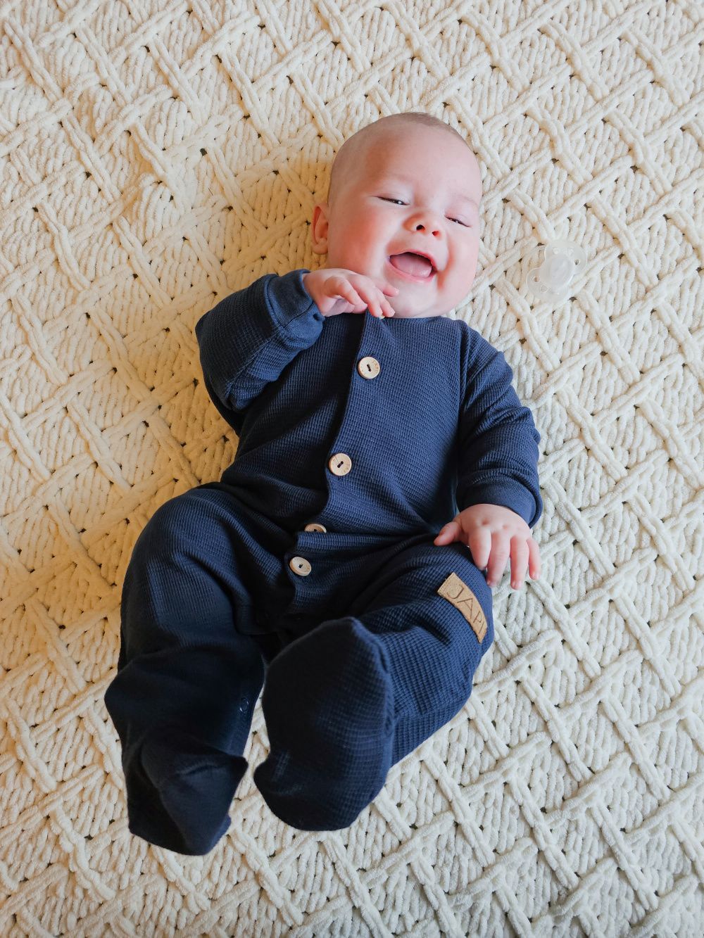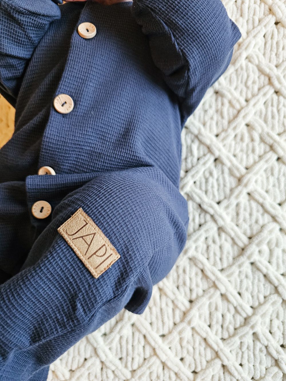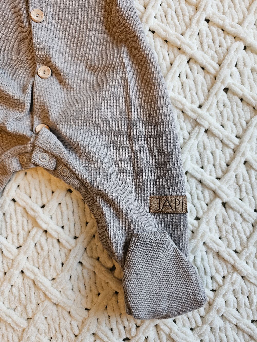 Ugodan kombinezon dugih rukava od mekane waffle tkanine, pogodan i za najmanju djecu i novorođenčad. Kombinezon dugih rukava je pogodan i za spavanje. Udoban kroj čini ga omiljenim komadom. Otvara se po cijeloj dužini drvenim gumbima, a između nogu također kopčama. Olakšava odijevanje i presvlačenje beba. Kombinezon dugih rukava će grijati bebu, to je odjeća za cijelo tijelo koju se beba neće skidati. Naravno, šivamo visokokvalitetne rubove po obodu.
