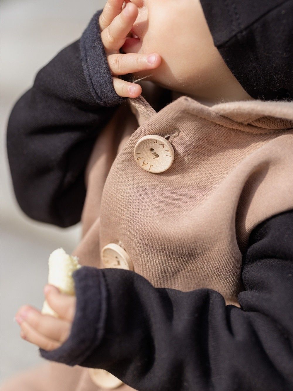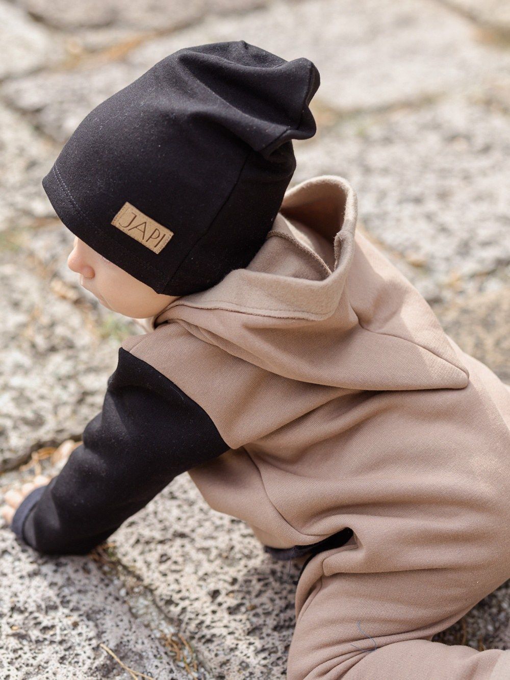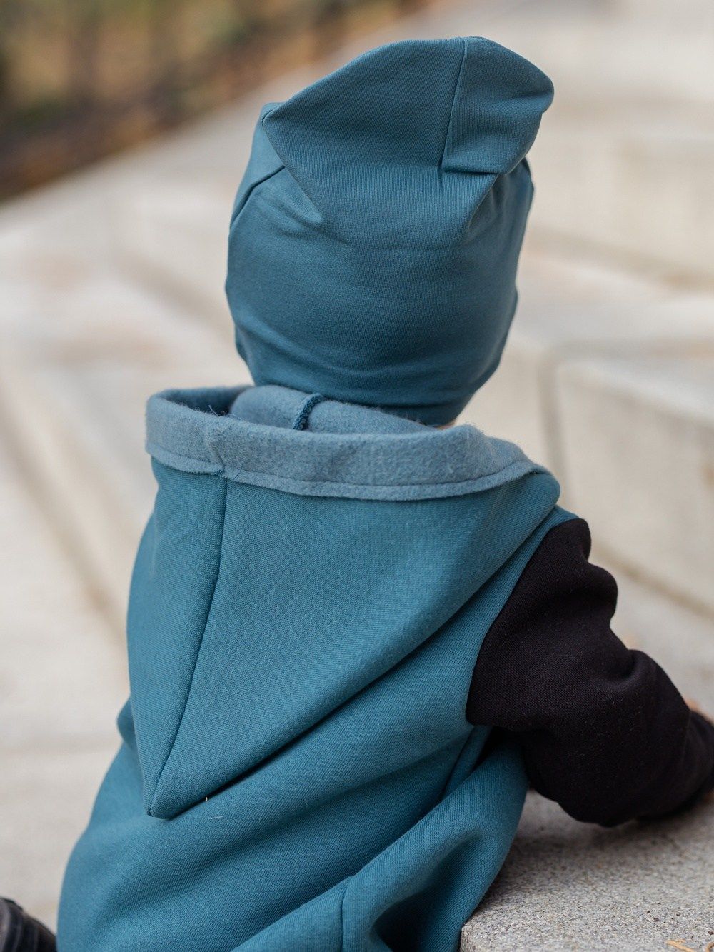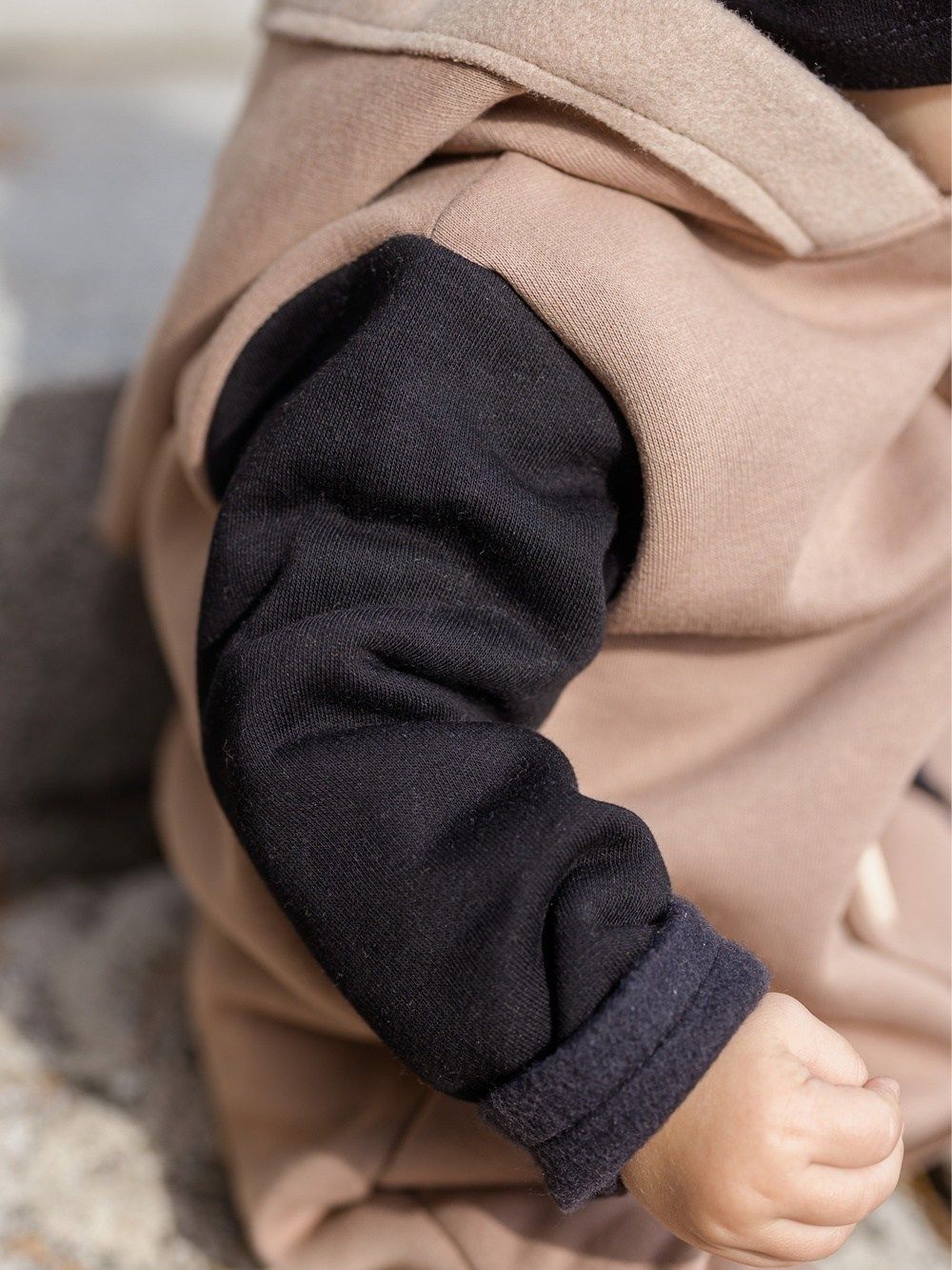 Kontrastni dodaci kao što je džep ili rukavi, ovaj kombinezon čine jedinstvenim. Kapuljača u stilu patuljka djeluje vrlo slatko. Drveni gumbovi te skladna prišivka s logom dopunjuju ukupan ugodan dojam. Ovaj kombinezon će Vam se svidjeti a koristiti ćete ga uglavom u jesen i proljeće.