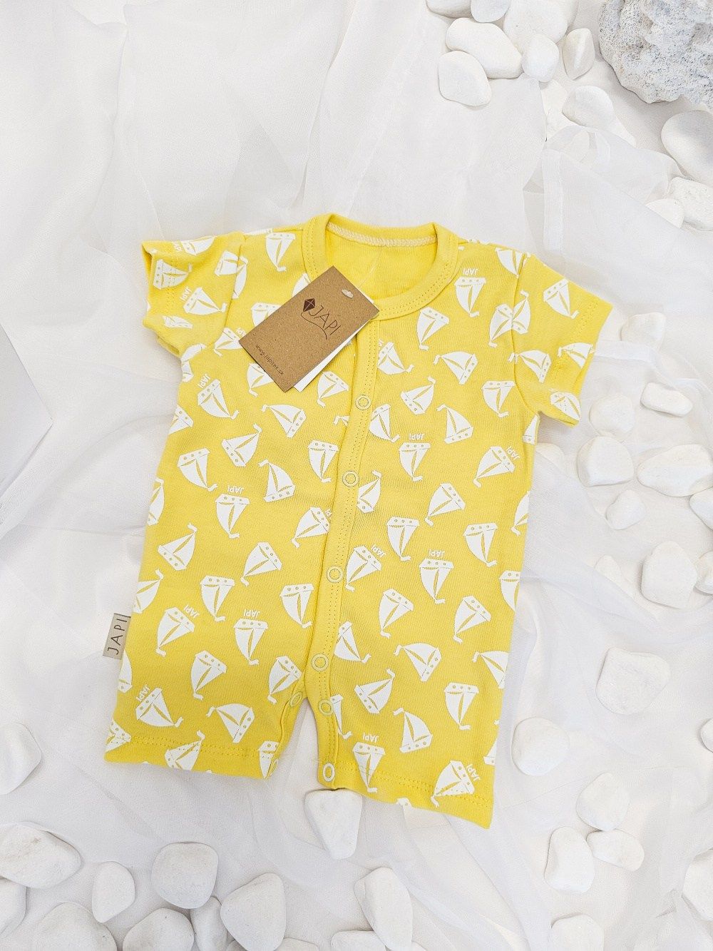 Dječji kombinezon za sunčanje s brodovima SAILBOAT je savršen za tople ljetne dane. Izrađen od mekane pamuka, pruža maksimalnu udobnost. Udoban kroj i praktično kopčanje na drukere olakšavaju presvlačenje. Dostupan u plavoj, ružičastoj i žutoj boji. Sjajan za aktivnu djecu koja vole kretanje. Kombinacija stila i udobnosti za svakodnevno nošenje i posebne prilike.