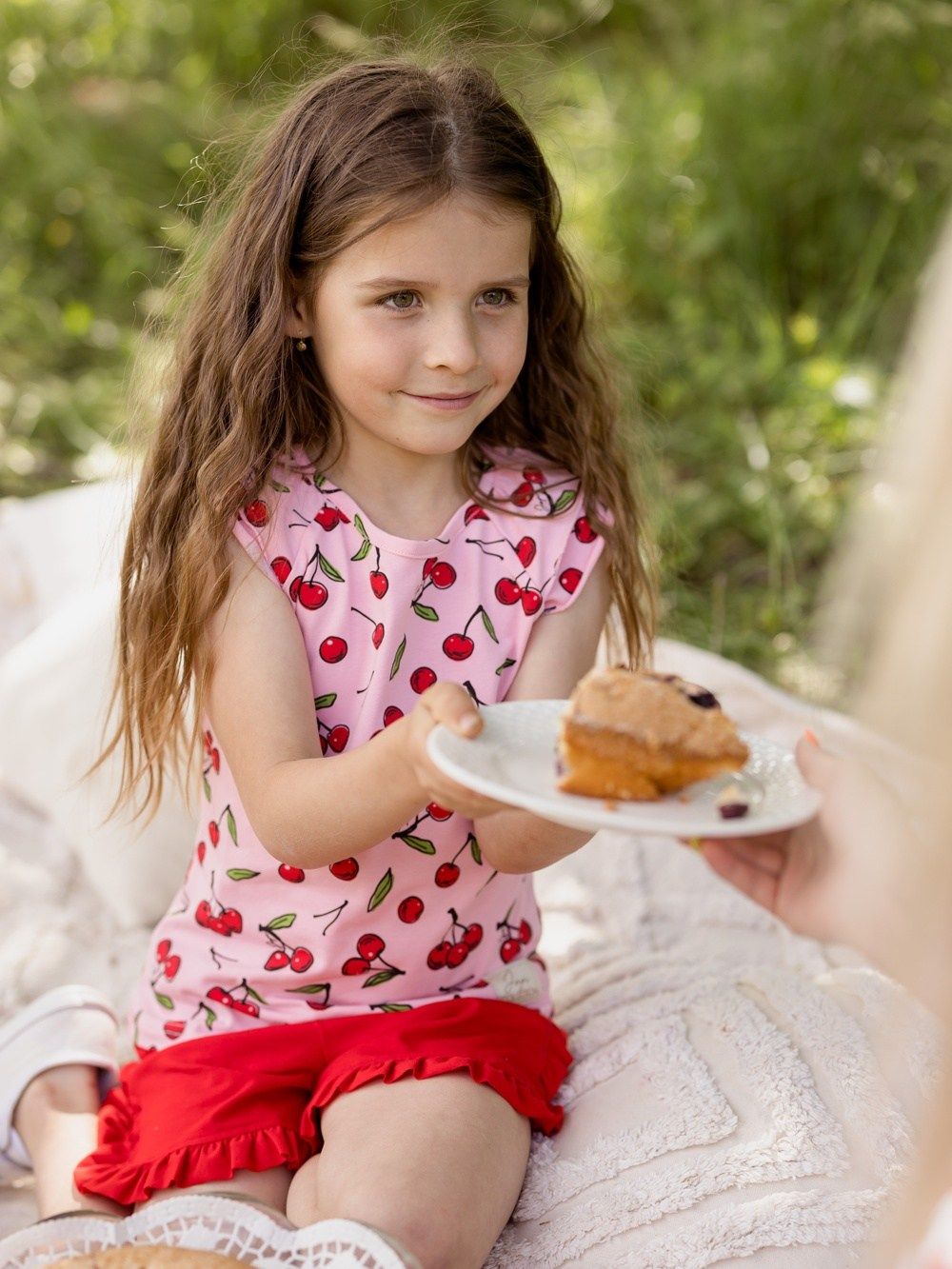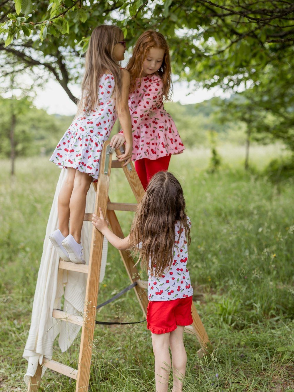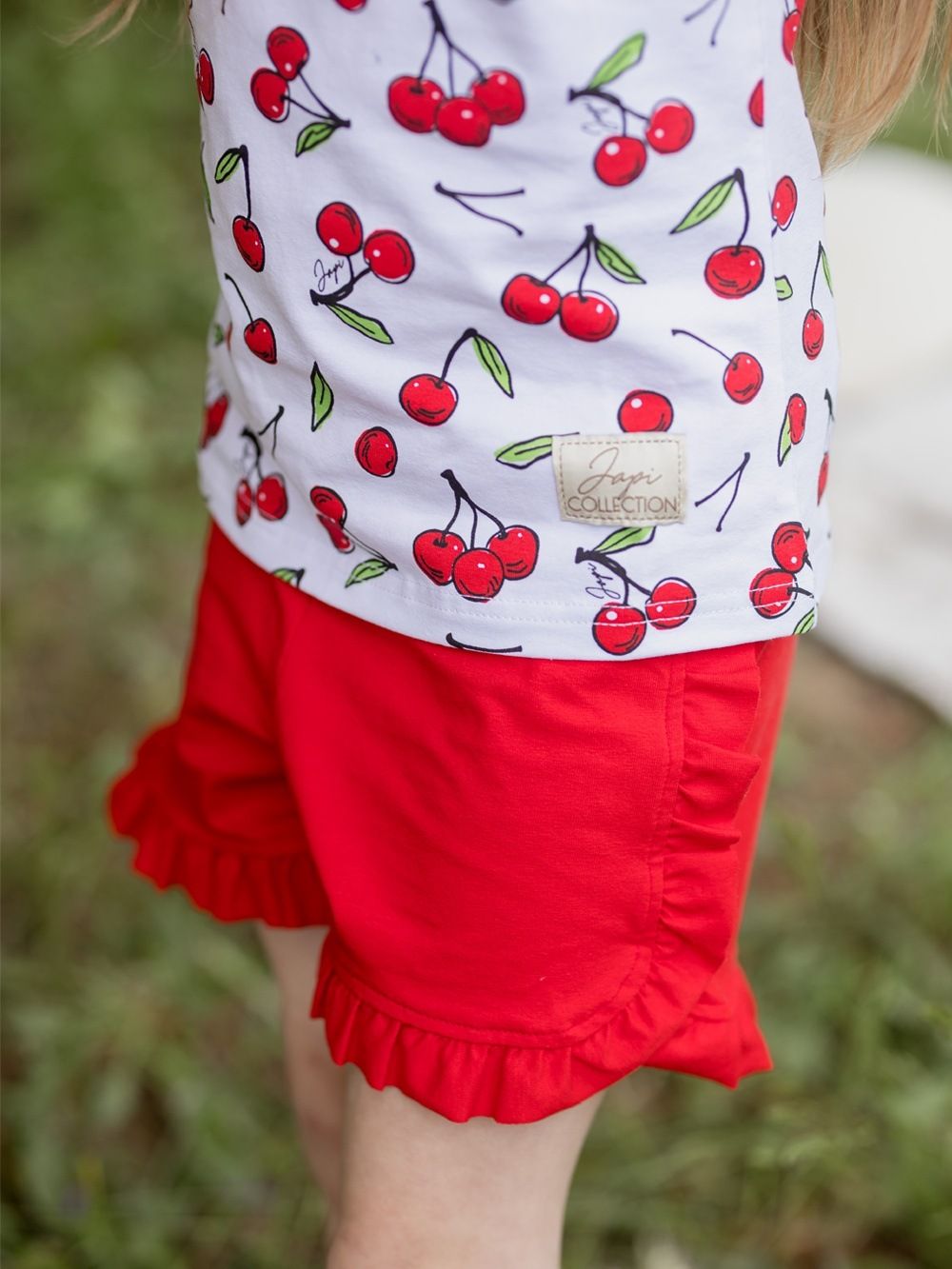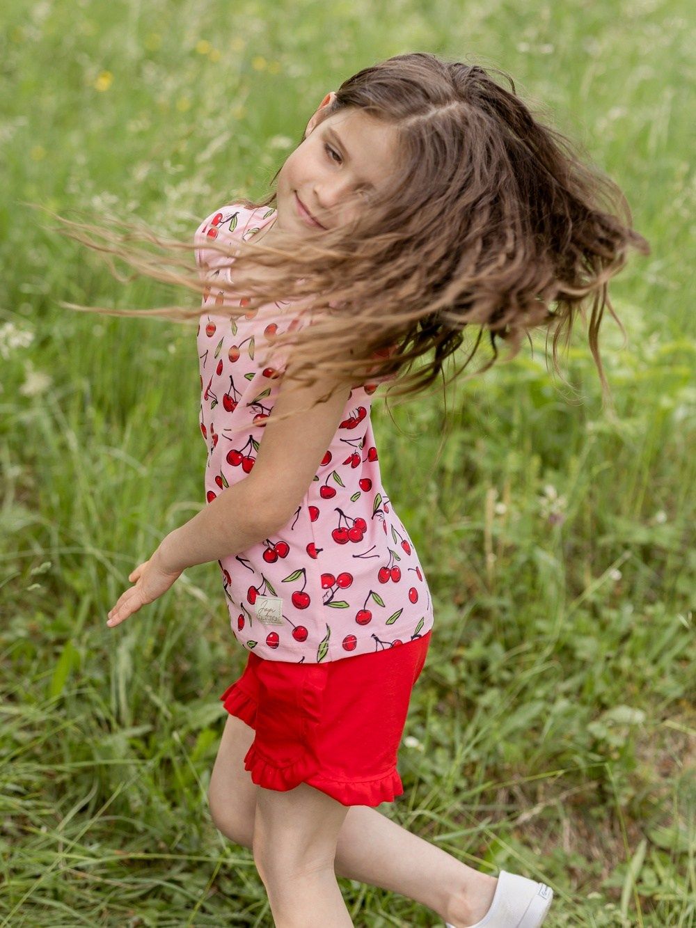 Lijepo će biti usklađene s majicom i tiskom višnji. Idealne za ljetne dane, za u školu, vrtić, ili godišnji odmor.