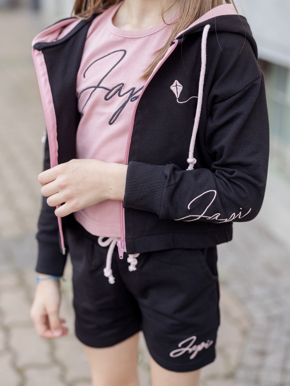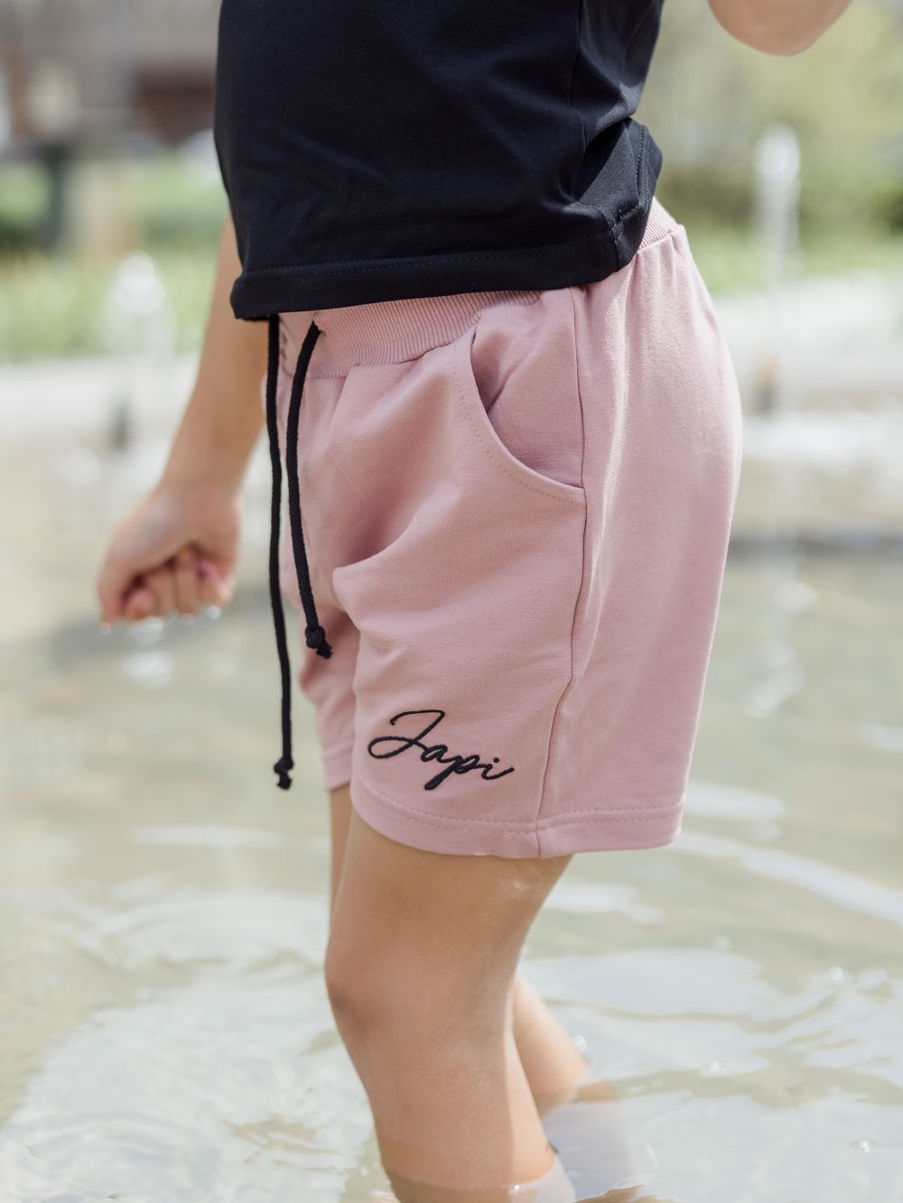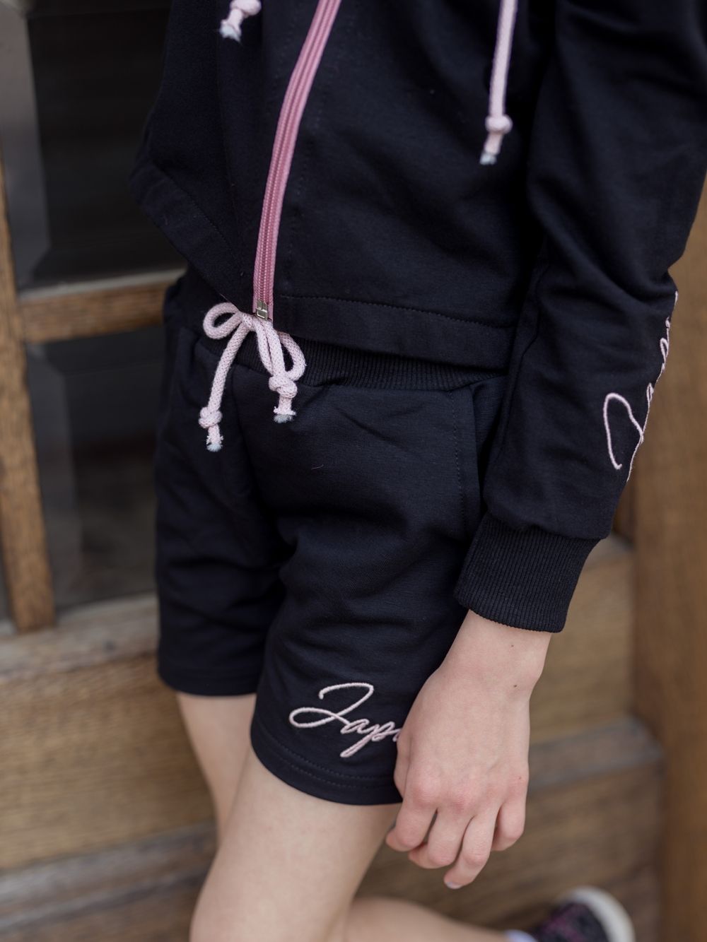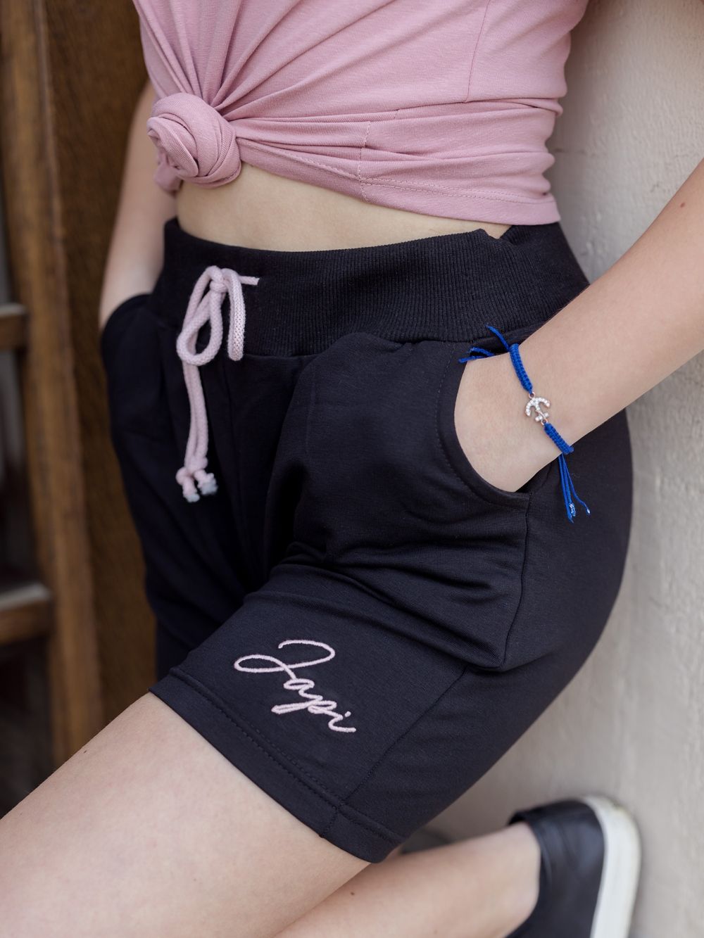 Ženske kratke hlače udobnog kroja. Kontrastna izvedba u crno-ružičastoj ili ružičasto-crnoj kombinaciji boja.
