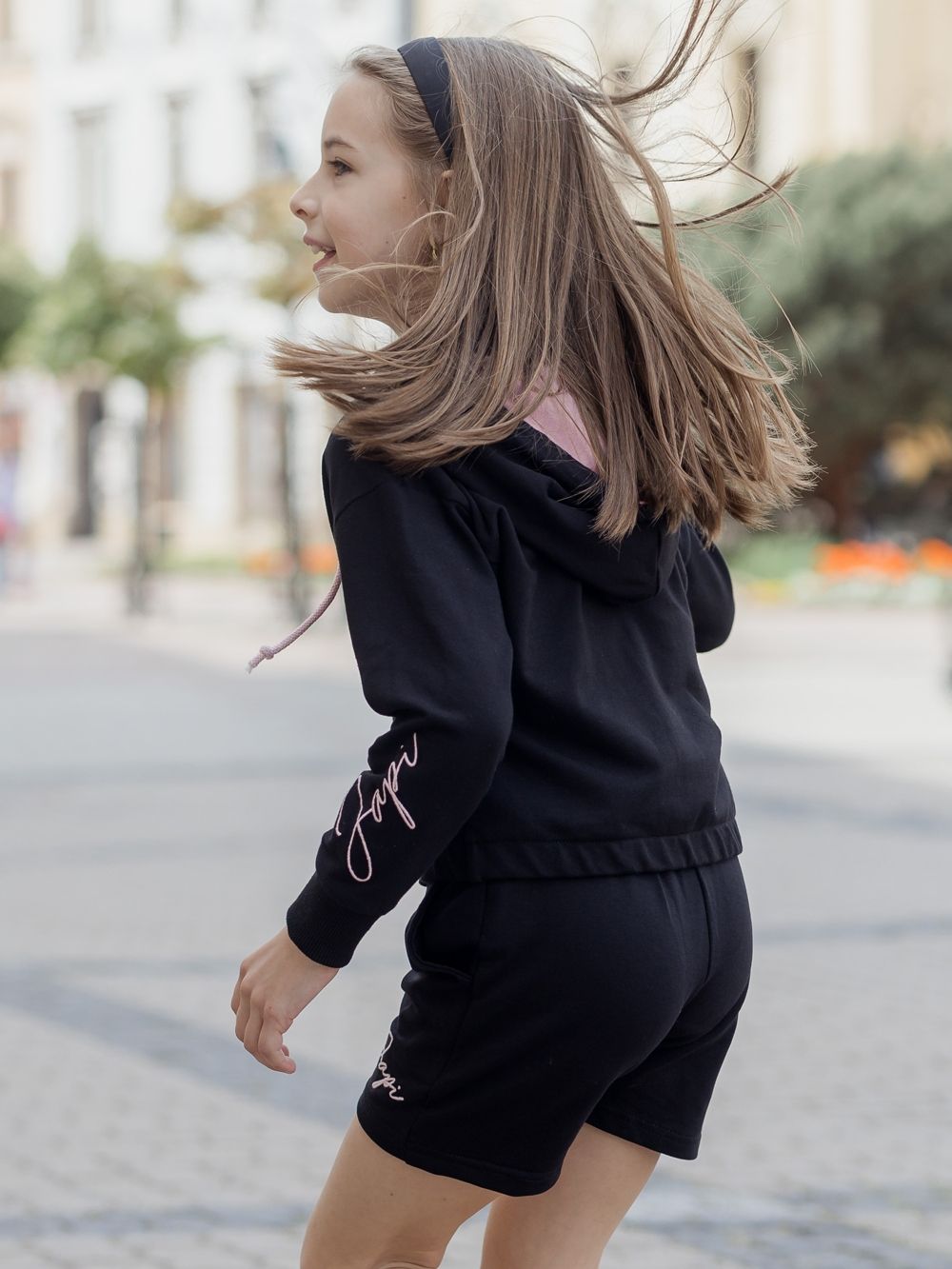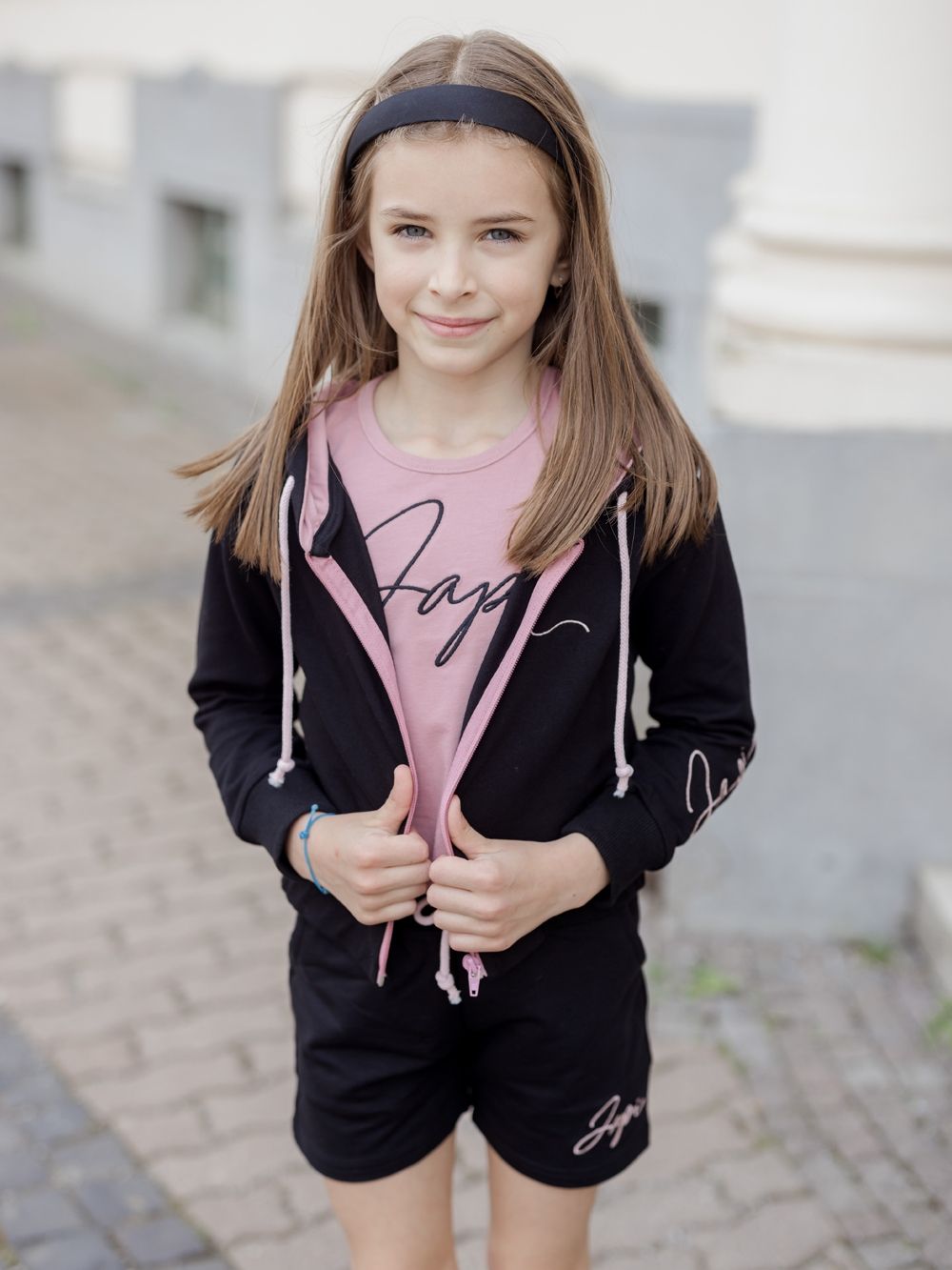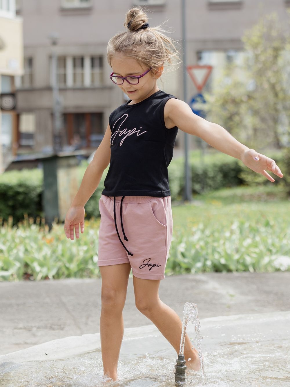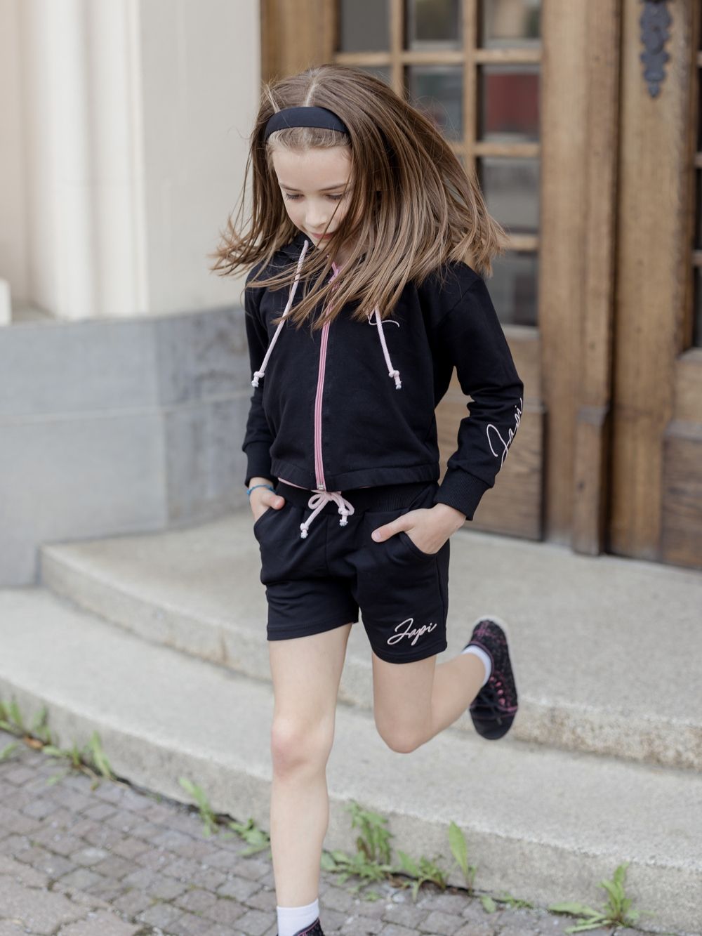 Ženske kratke hlače udobnog kroja. Kontrastna izvedba u crno-ružičastoj ili ružičasto-crnoj kombinaciji boja.