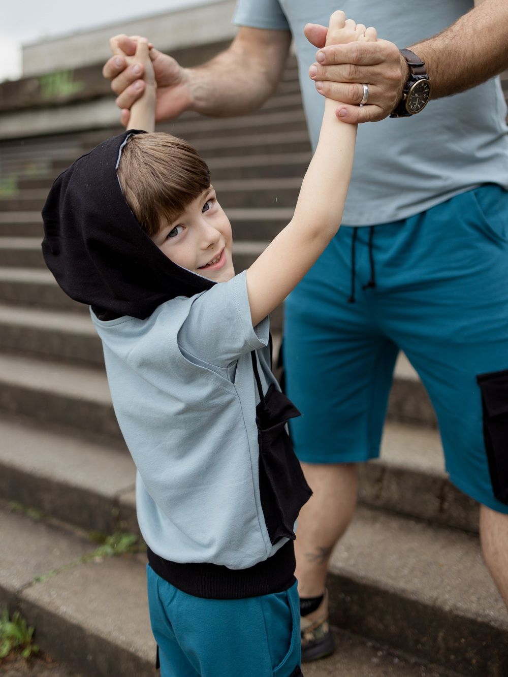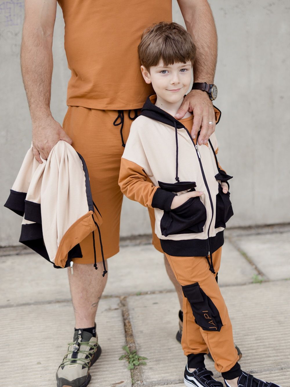 Stilske muške kratke hlače za ljeto. Pamučne kratke hlače s udobnim pasom, zatezanje na vezice. Osim klasičnim džepova imaju i bočne s preklopima za mobitel, novčanik , ili neka druge korisne predmete. Dostupne su u dvije kombinacije boja - modro-crnoj i smeđo-crnoj. Dopuniti ih možete muškom majicom i tako dobijete ljetni outfit za godišnji odmor ili šetnju. Gospoda se možu uskladiti sa svojim sinovima, kratke hlače imamo i u dječjim veličinama.