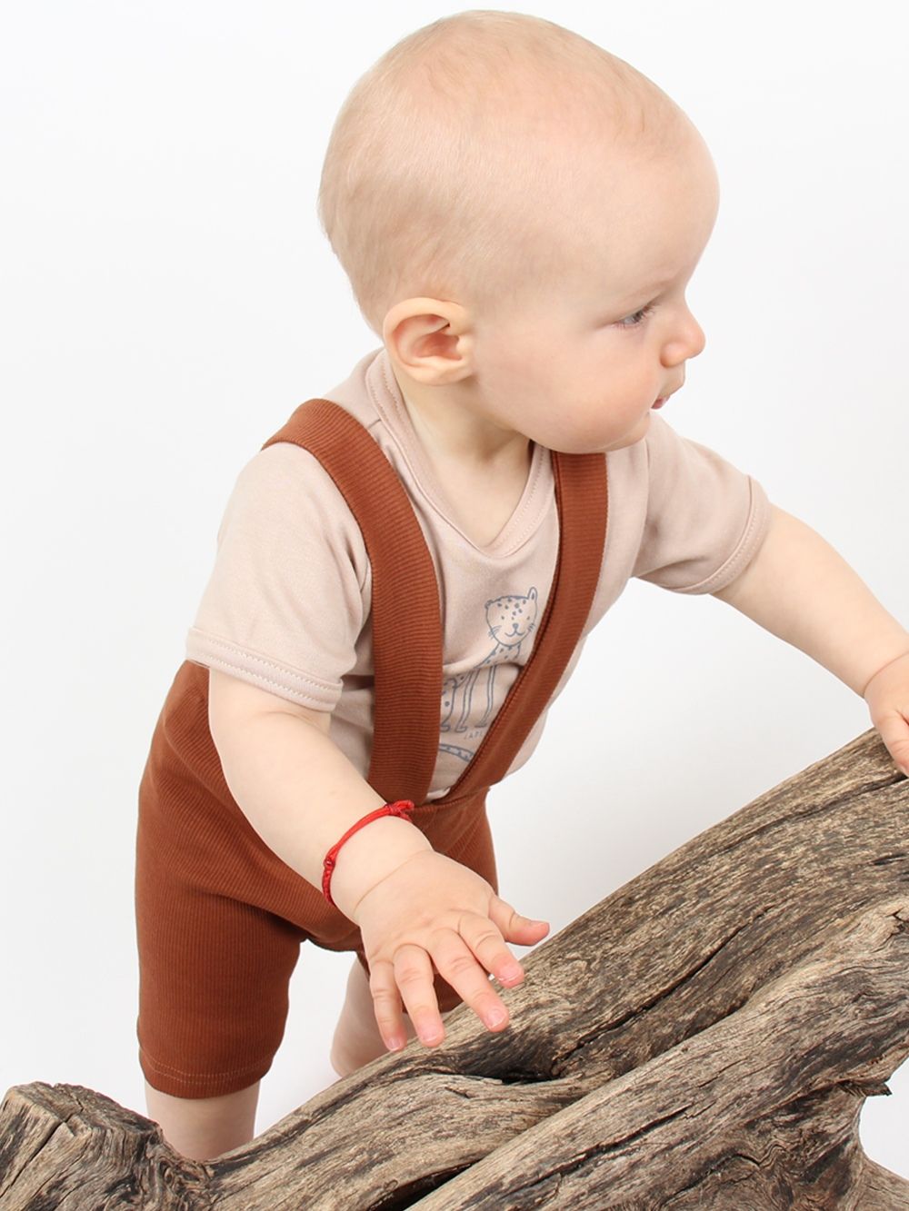 Ove kratke rebraste hlačice s tregerima savršen su izbor za udobnu i stilsku dječju odjeću. Izrađene od mekanog i rastezljivog pamuka, pružaju maksimalnu udobnost tijekom cijelog dana. Elastični pojas osigurava savršeno pristajanje, dok praktični tregeri sprječavaju klizanje hlačica. Rebrasti dizajn daje moderan izgled, prikladan za svakodnevno nošenje, ali i posebne prilike. Dostupne su u nekoliko prirodnih nijansi, koje se lako kombiniraju s drugim komadima odjeće. Odličan su izbor za aktivnu djecu koja vole slobodu i udobnost.