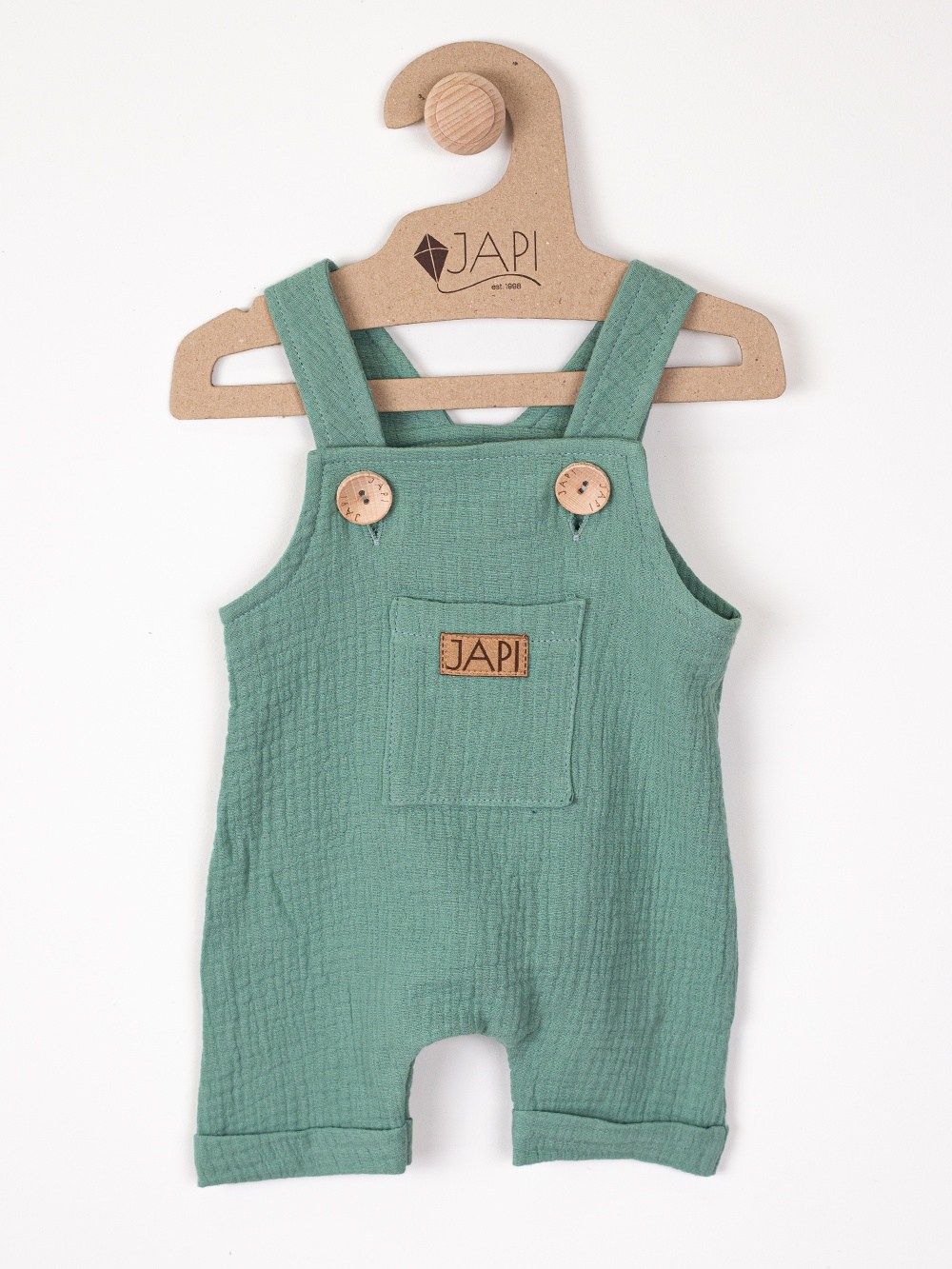 Dječje kratke hlače na tregere mušelinske MINERAL. Ove dječje kratke hlače na tregere iz mušelina iz kolekcije MINERAL idealan su izbor za ljeto. Izrađene od mekog i prozračnog mušelina, vrlo su udobne. Kratke hlače imaju podesive tregere i praktične džepove. Dostupne u tamnoplavoj i svijetlozelenoj boji, savršeno se slažu s bilo kojom majicom ili košuljom.